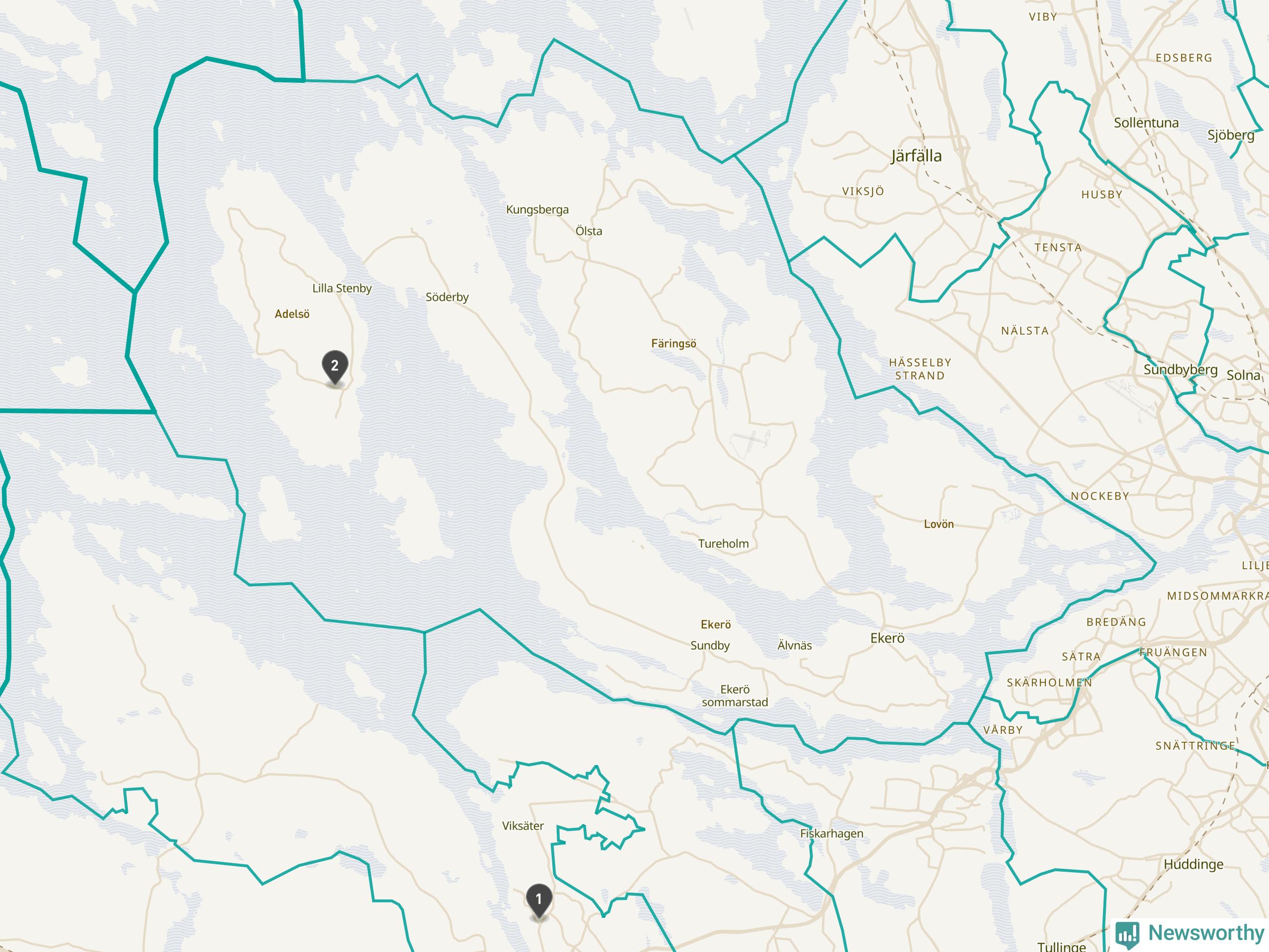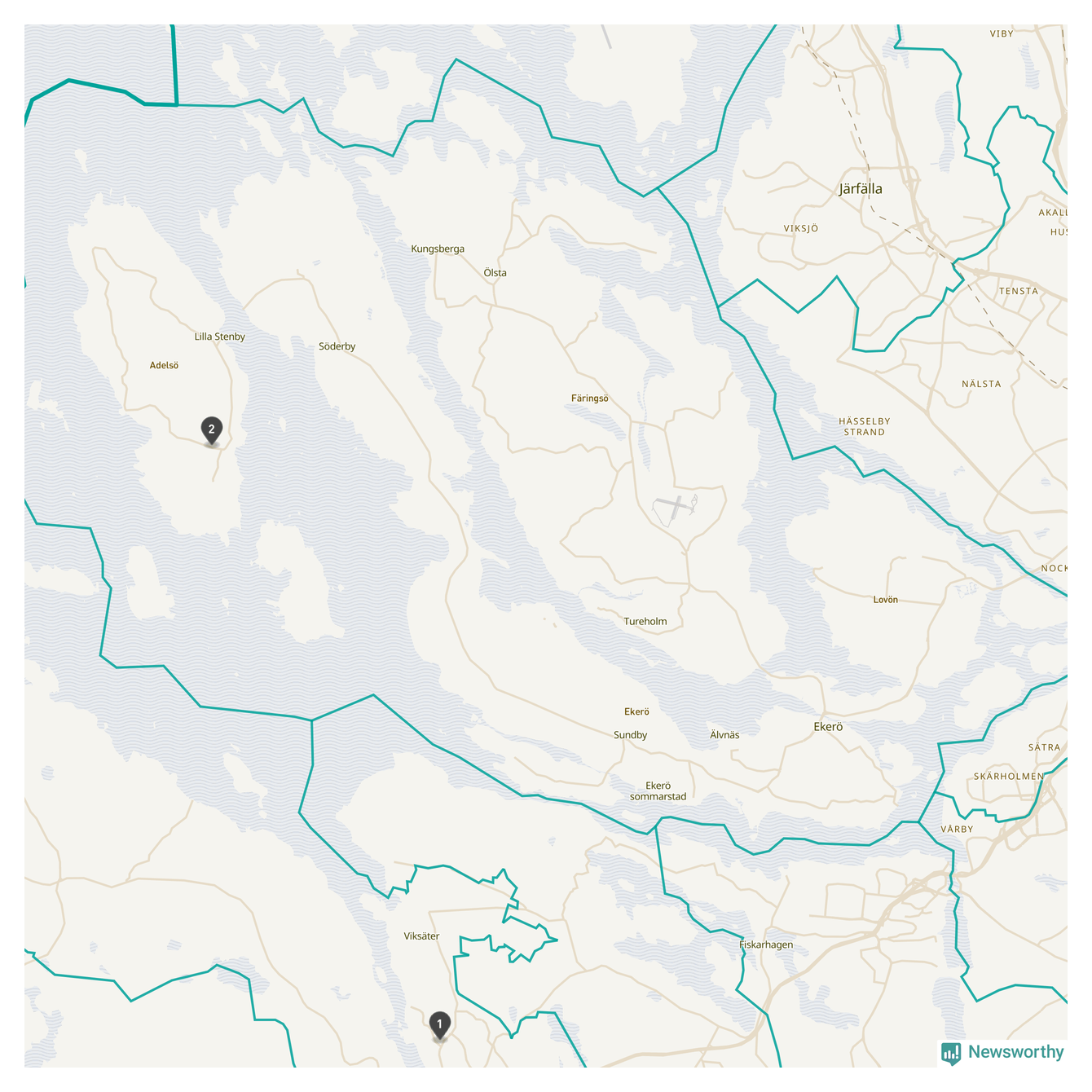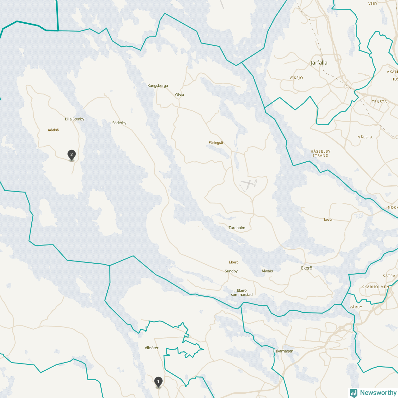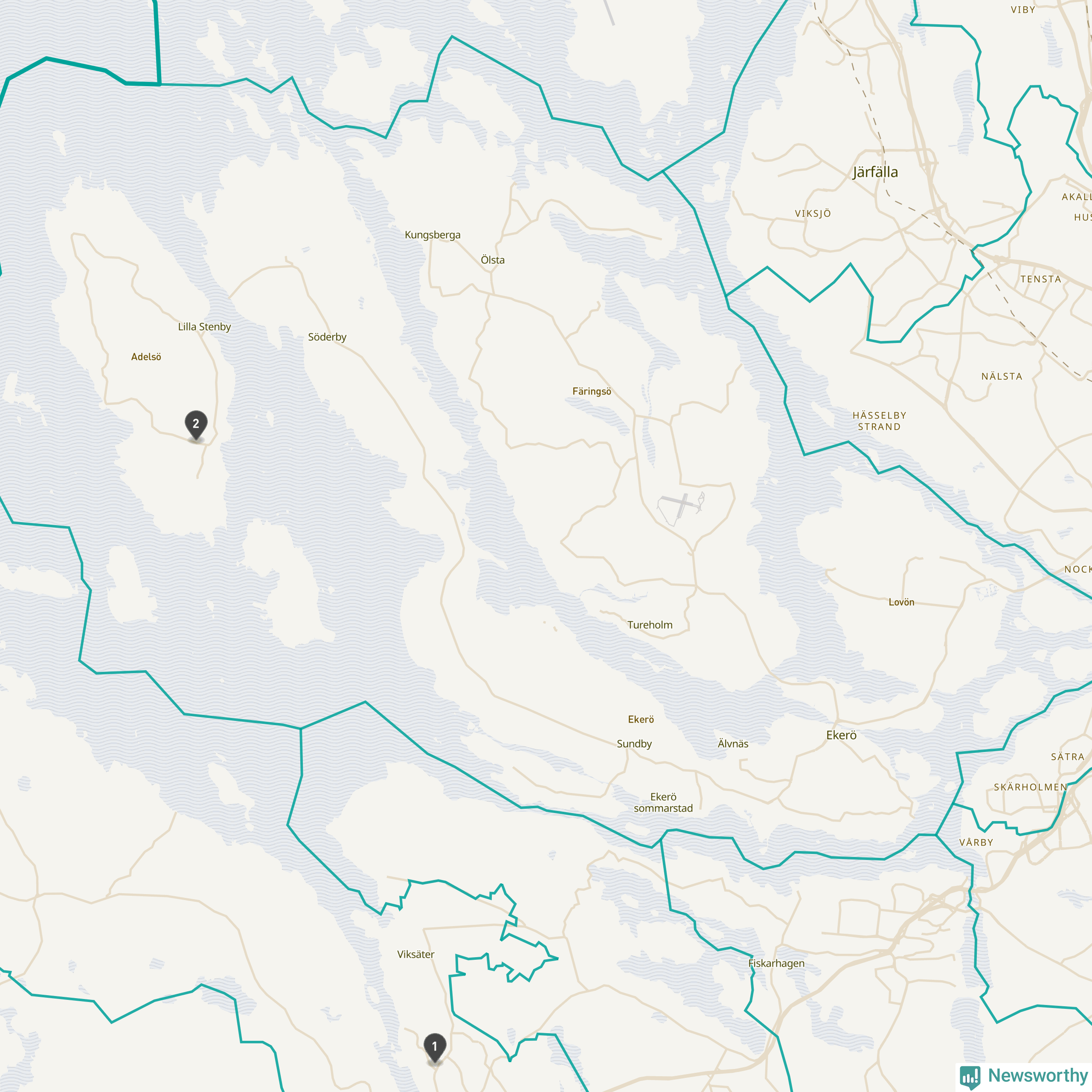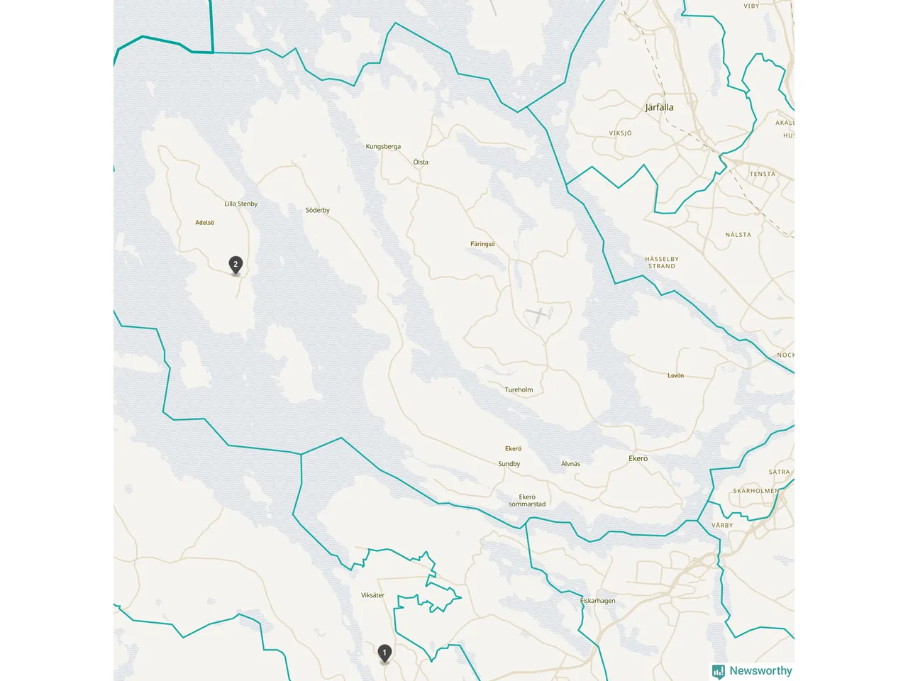 Mätstationen Södertälje ligger i Södertälje kommun. I Ekerö kommun, men längre från de största tätorterna, finns ytterligare en station som rapporterar medeltemperatur (och där det redan finns preliminär data för hela 2025): Adelsö A. Där var årsmedeltemperaturen 8,6 grader, 1,3 grader mer än normalt.