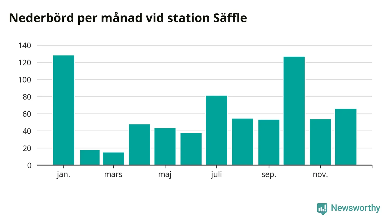 Årsmedeltemperaturen vid Säffle i centrala Säffle1 – den enda aktiva, SMHI-anslutna stationen som mäter medeltemperaturer i Säffle kommun – var under 2025 8,3 grader, 1,4 grader högre än genomsnittet de senaste decennierna. Det visar Newsworthys beräkningar, som bygger på delvis preliminär observationsdata från SMHI.