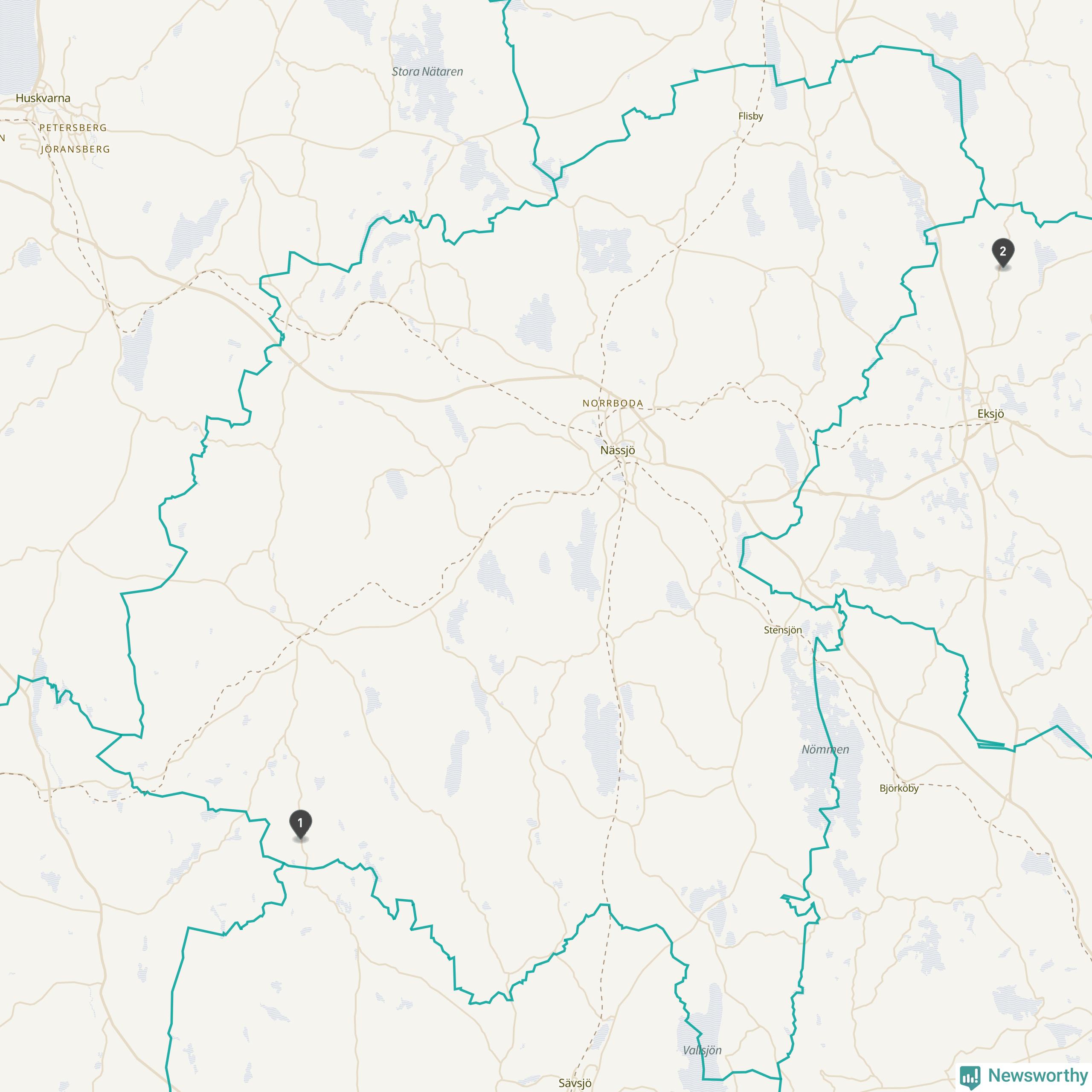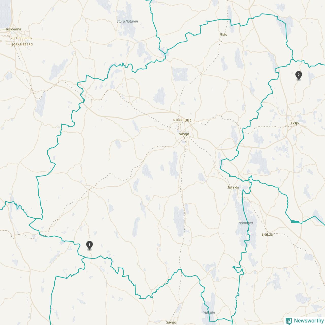 Mätstationen Prästkulla ligger i Eksjö kommun. I Nässjö kommun, men längre från de största tätorterna, finns ytterligare en station som rapporterar medeltemperatur (och där det redan finns preliminär data för hela 2025): Tomtabacken A. Där var årsmedeltemperaturen 7,3 grader, 1,3 grader mer än normalt.