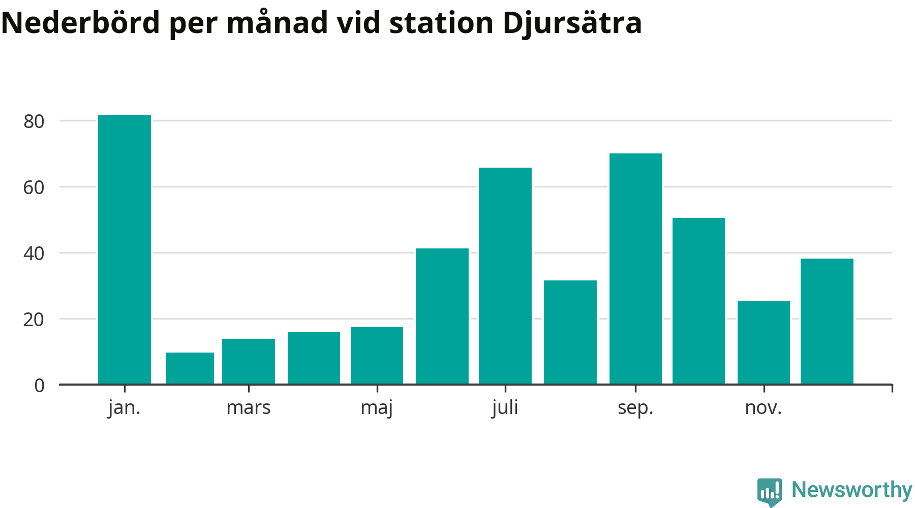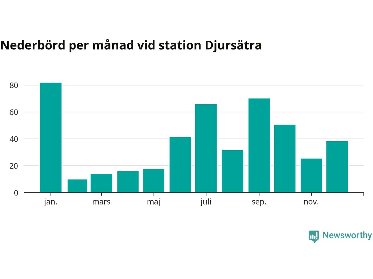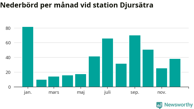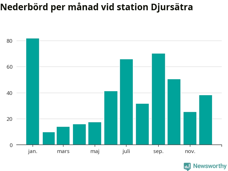 Nederbördsmässigt var 2025 ett torrare år än vanligt , åtminstone vid Djursätra, 18 kilometer norr om centrala Tidaholm. Totalt föll 461 millimeter nederbörd vid stationen, att jämföra med de senaste tre decenniernas genomsnitt på 622 millimeter. Månaden med mest nederbörd var januari, med 82 millimeter.