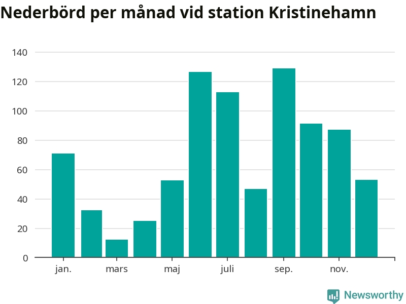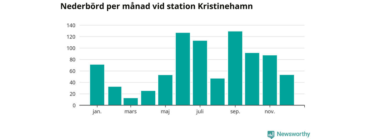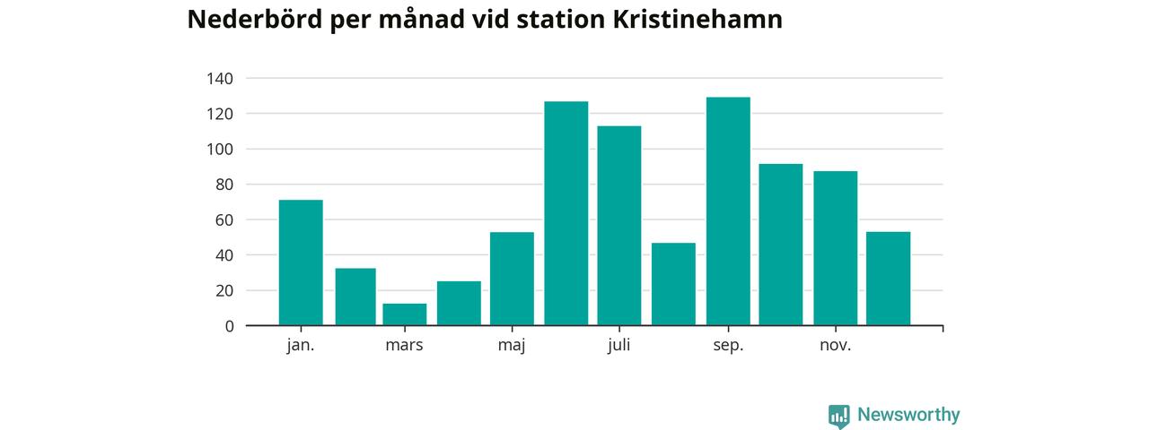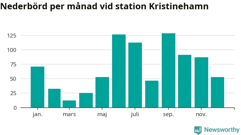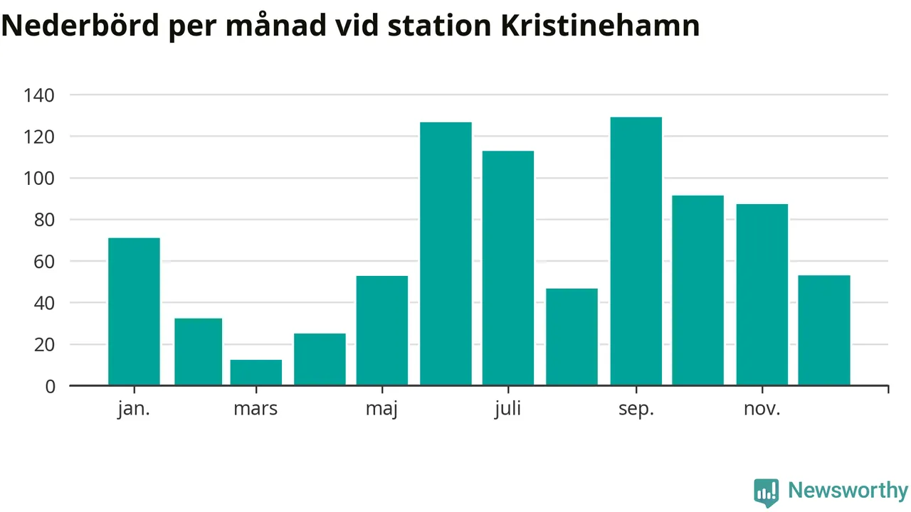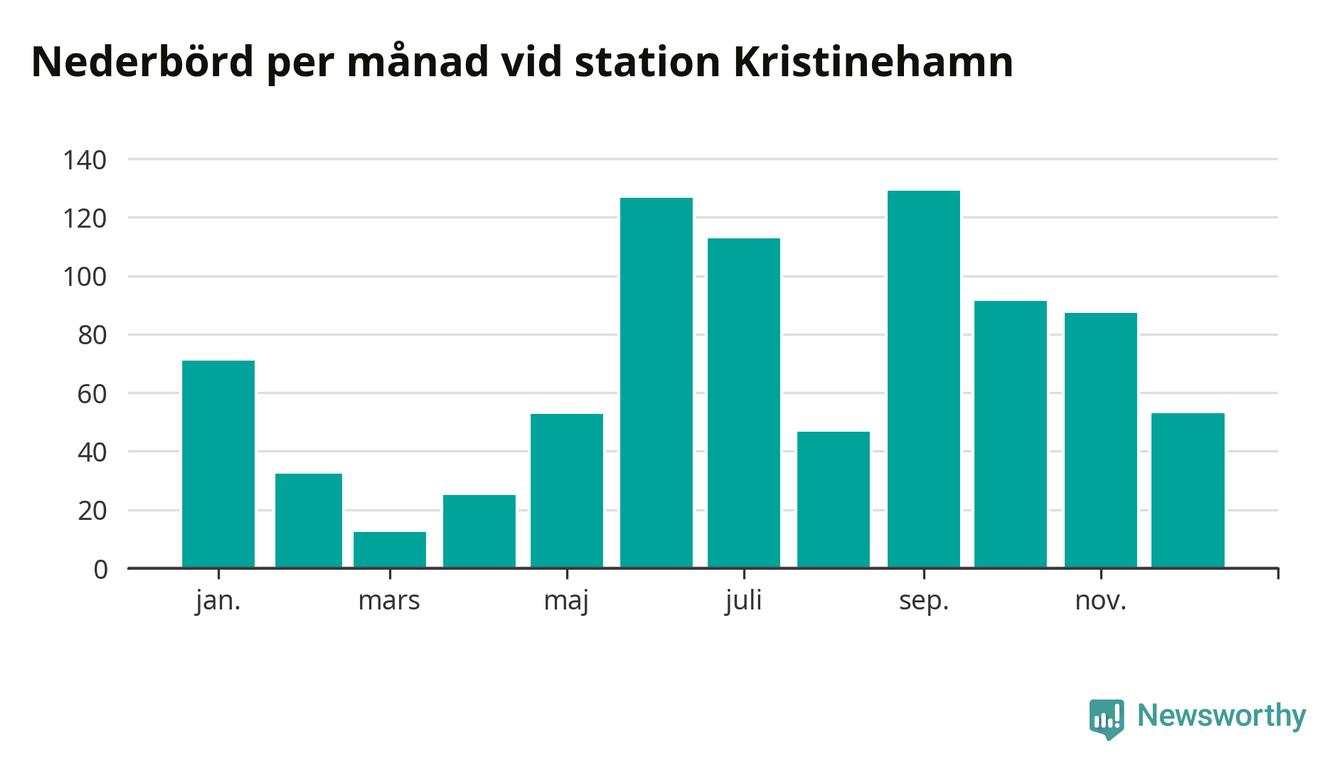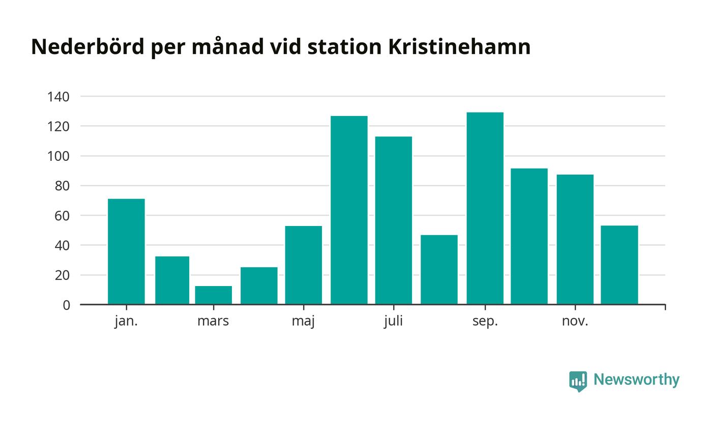 Nederbördsmässigt var 2025 ett blötare år än vanligt vid Kristinehamn. Totalt föll 840 millimeter nederbörd vid stationen, att jämföra med de senaste tre decenniernas genomsnitt på 699 millimeter. Månaden med mest nederbörd var september, med 129 millimeter.