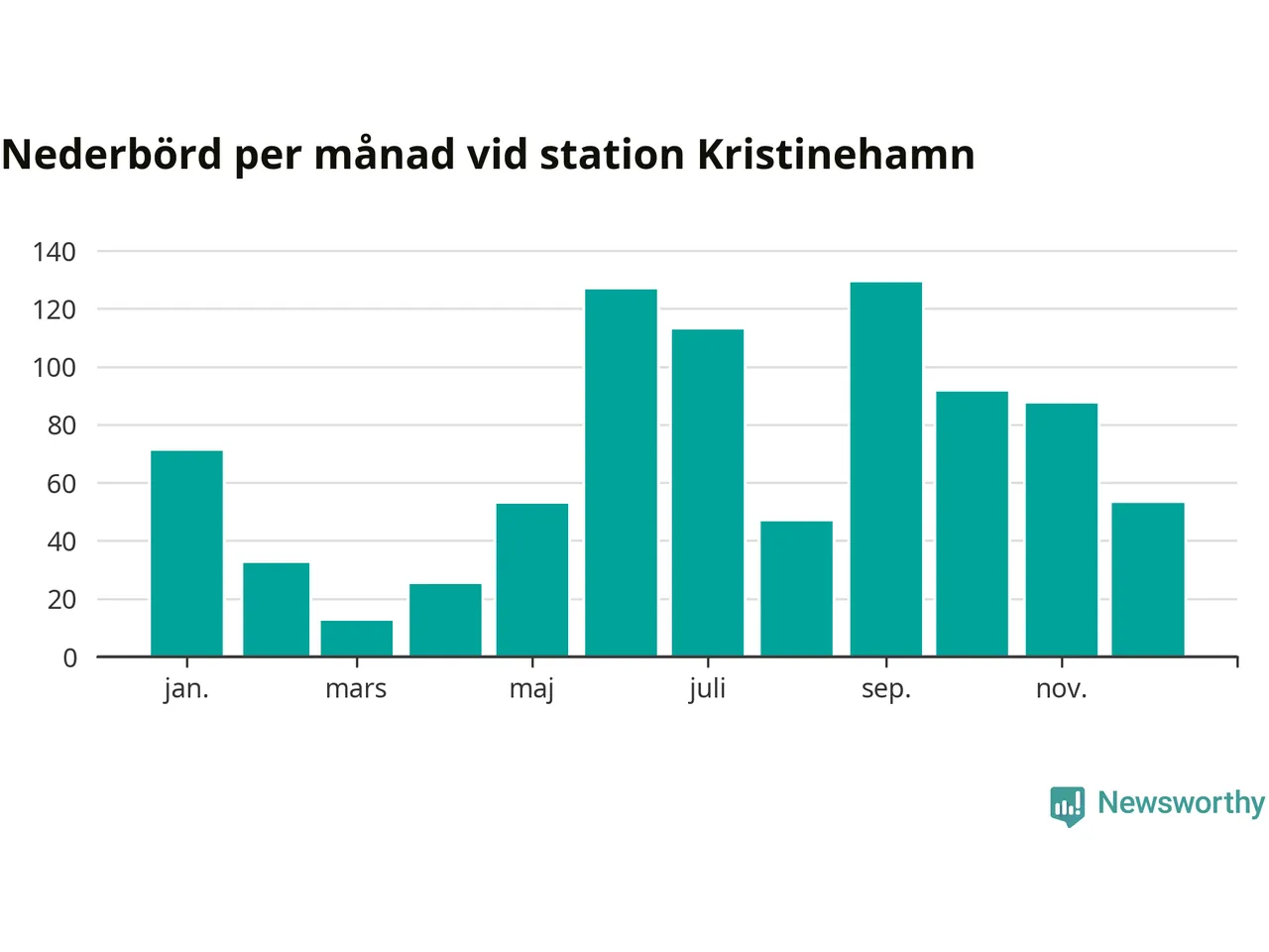Diagram som visar total nederbörd, månad för månad.