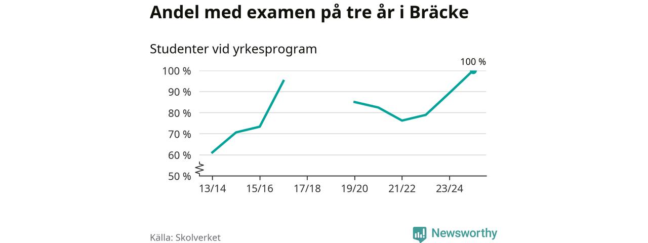 Jämtlands Gymn, Bräcke gick alla elever ut med examen efter tre år i våras, enligt Skolverkets statistik.