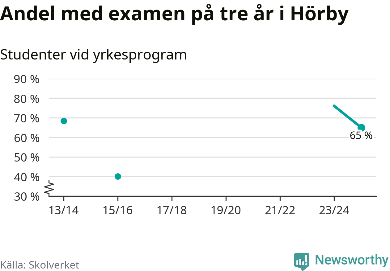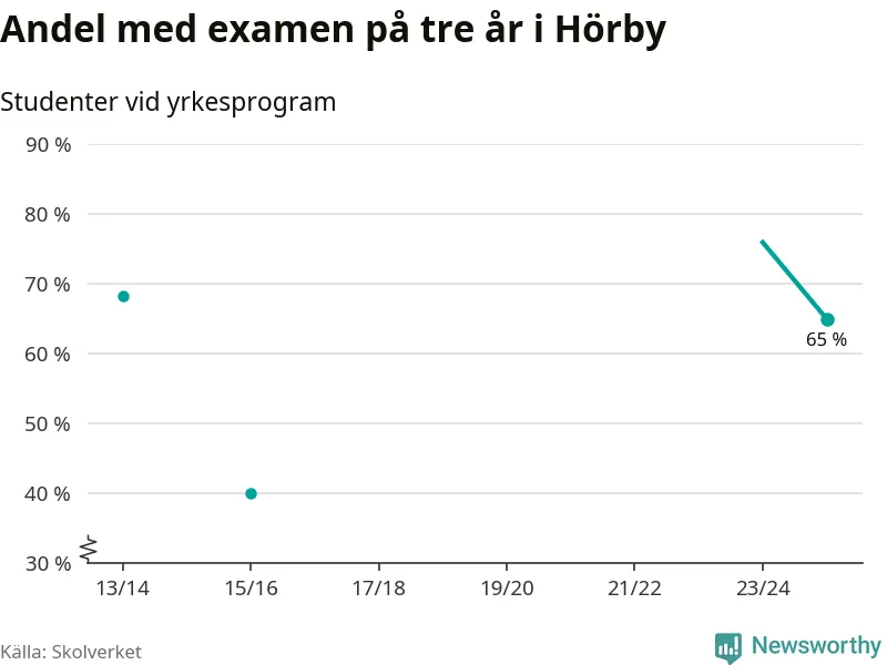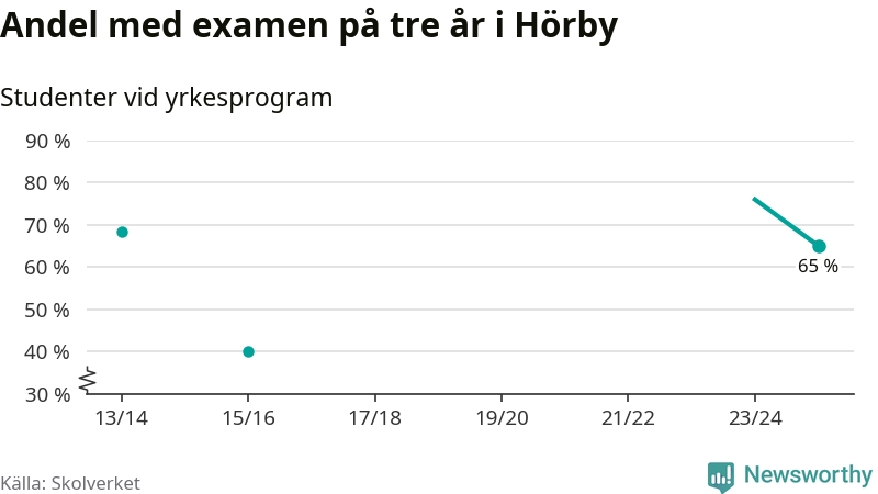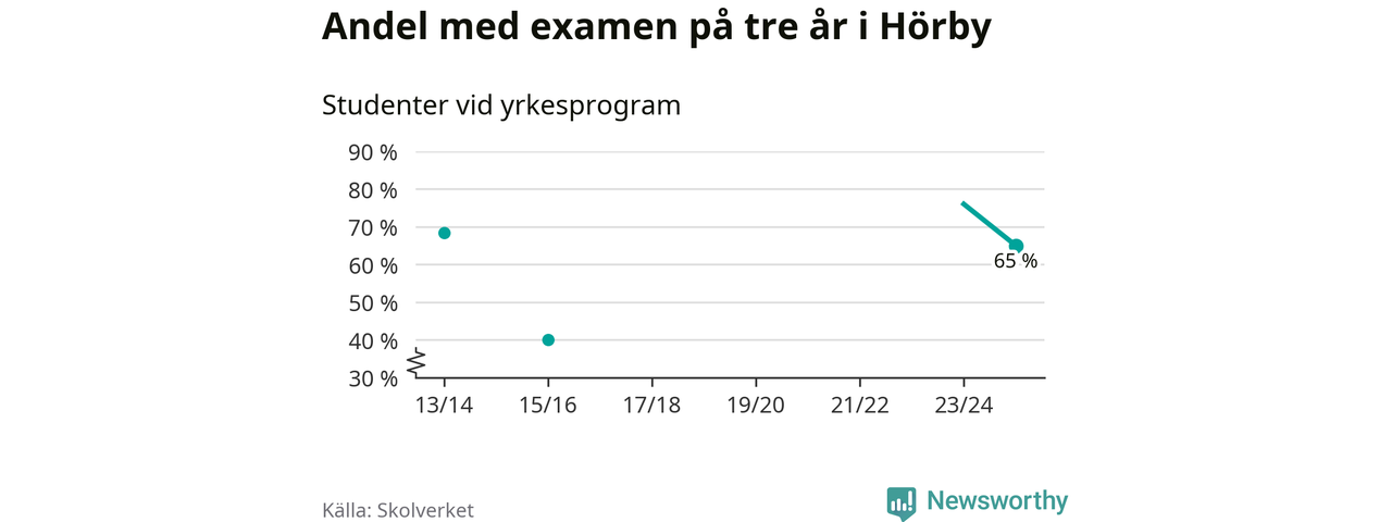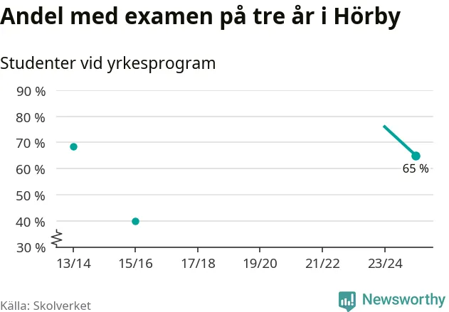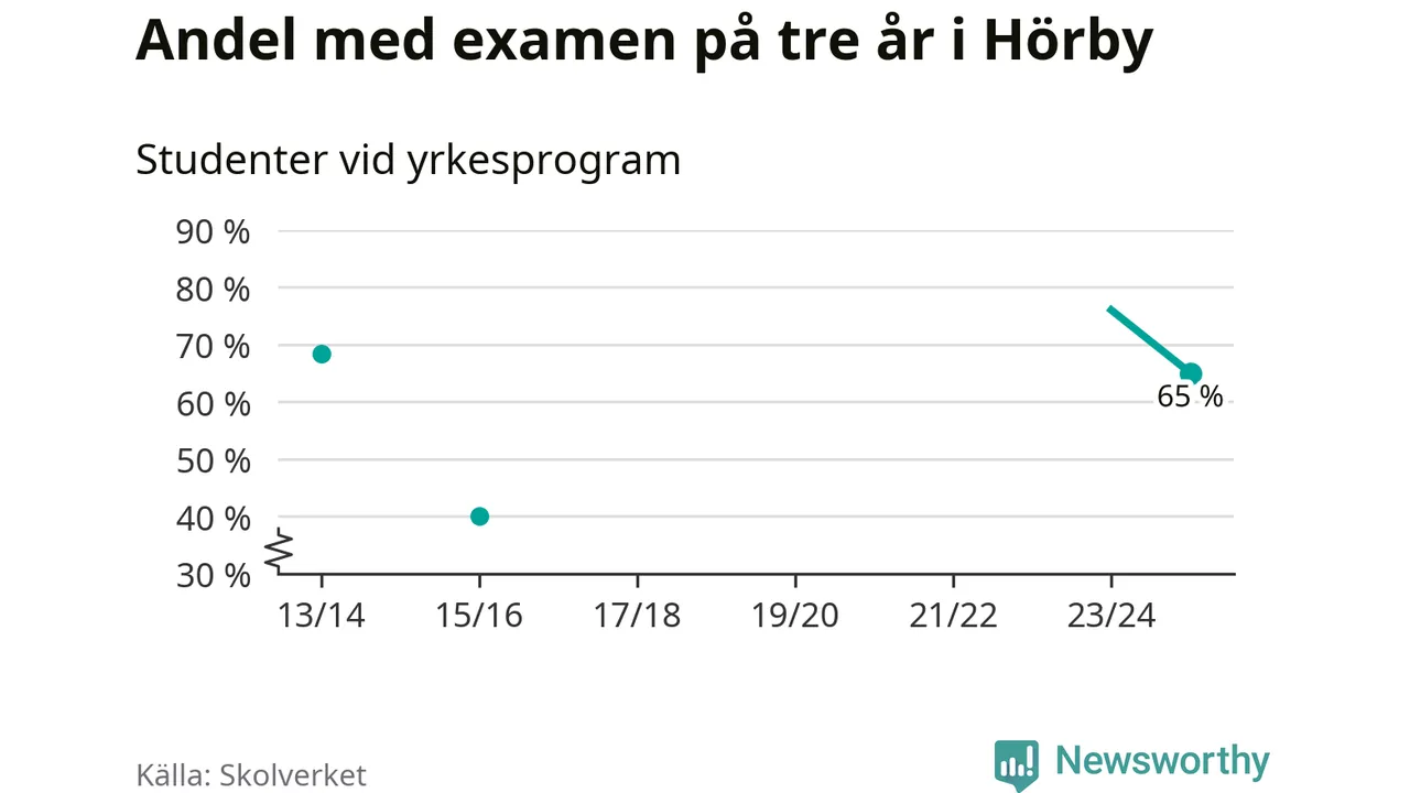 De 20 eleverna som började på Hörby Yrkesgymnasium 2022/23 klarade examen på tre år i lägre utsträckning än elever på yrkesprogram i riket som helhet.