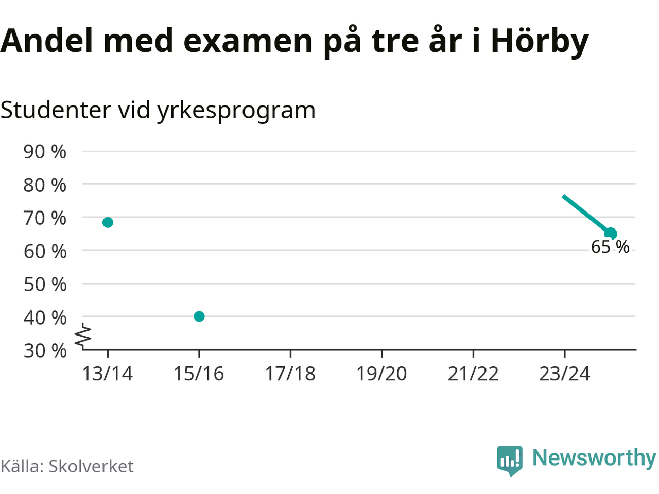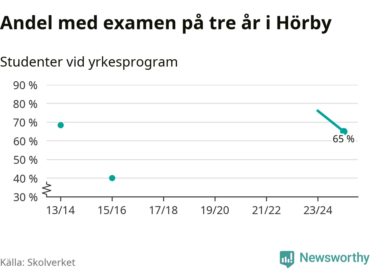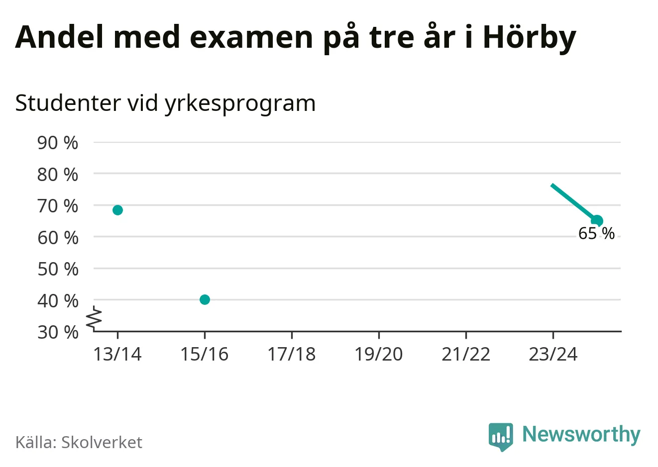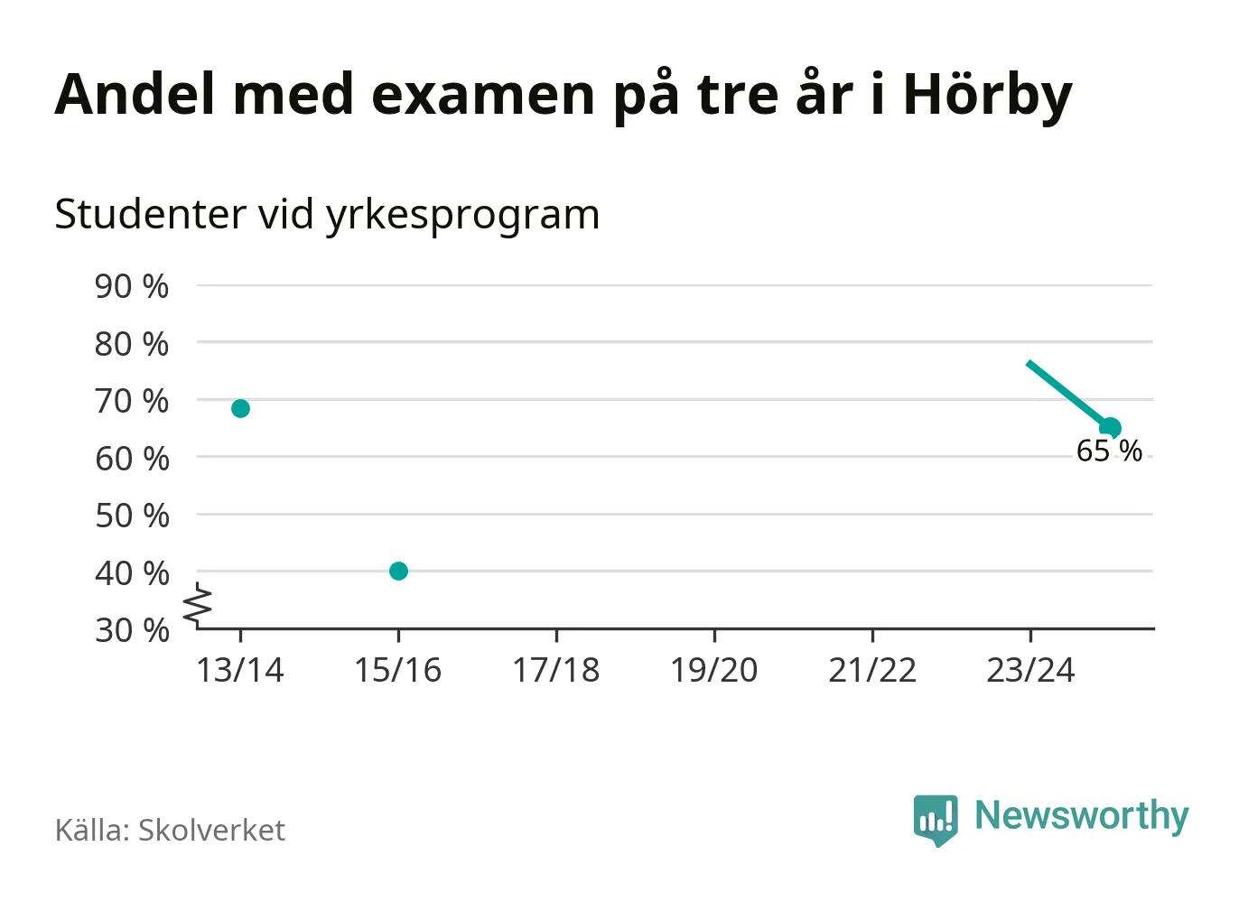 De 20 eleverna som började på Hörby Yrkesgymnasium 2022/23 klarade examen på tre år i lägre utsträckning än elever på yrkesprogram i riket som helhet.