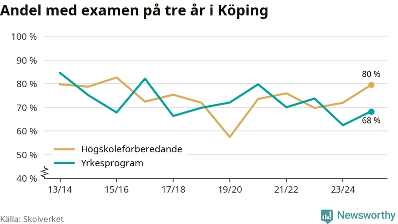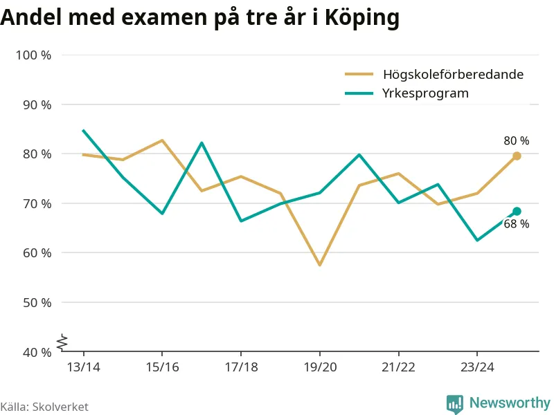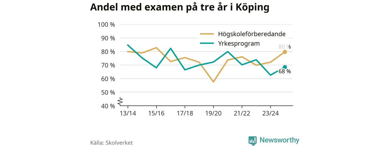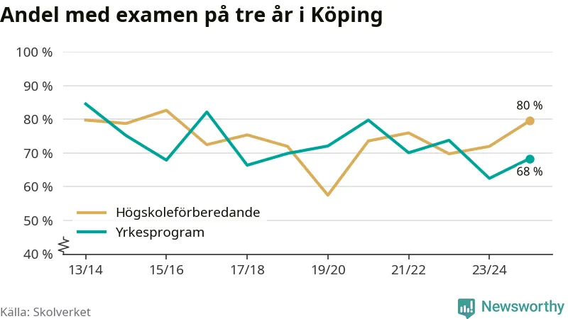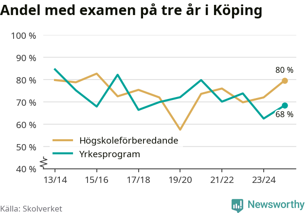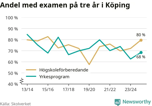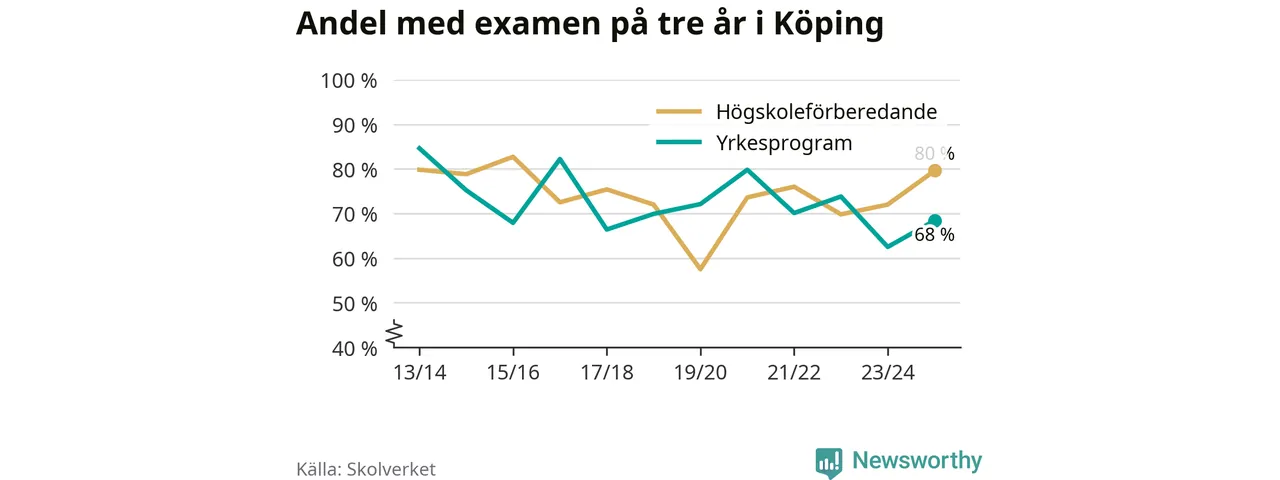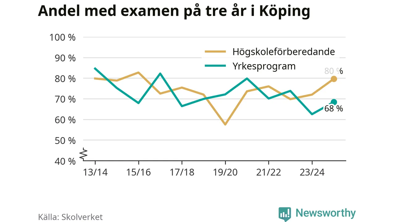 Andelen elever som klarade examen på tre år på gymnasieskolorna i Köping ökade i våras. Det visar Skolverkets statistik. Ökningen följer trenden i riket som helhet.