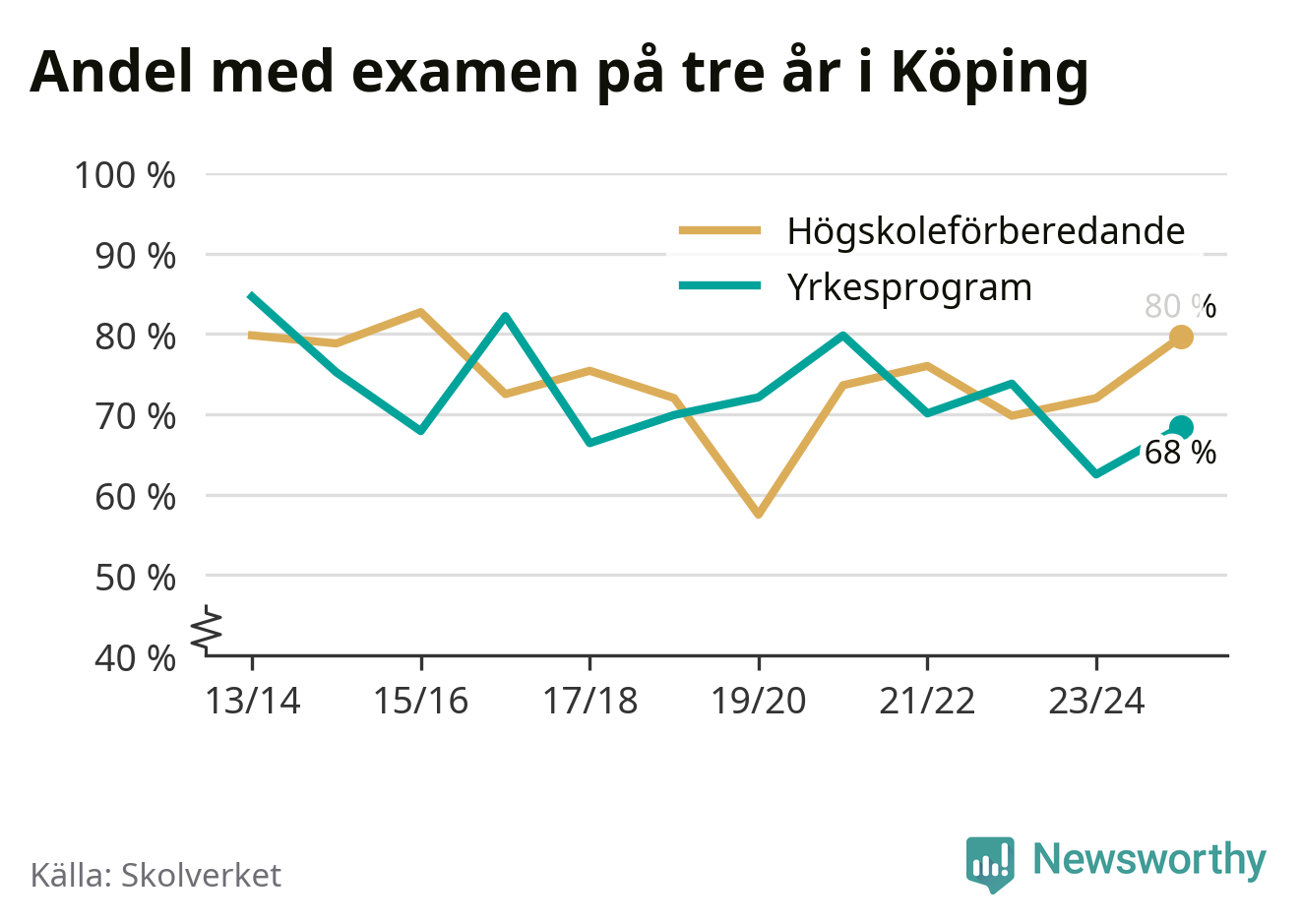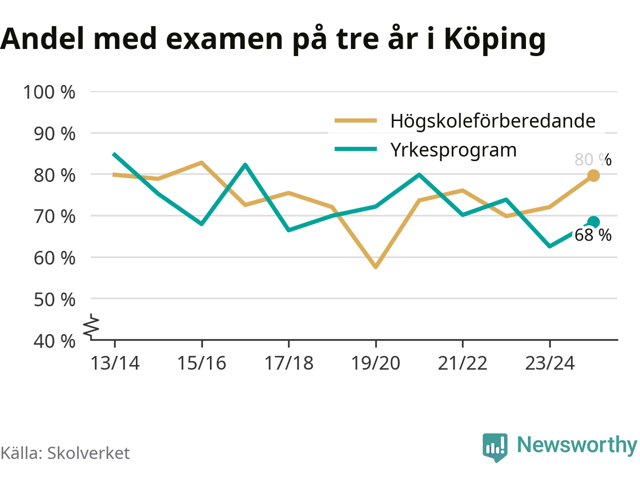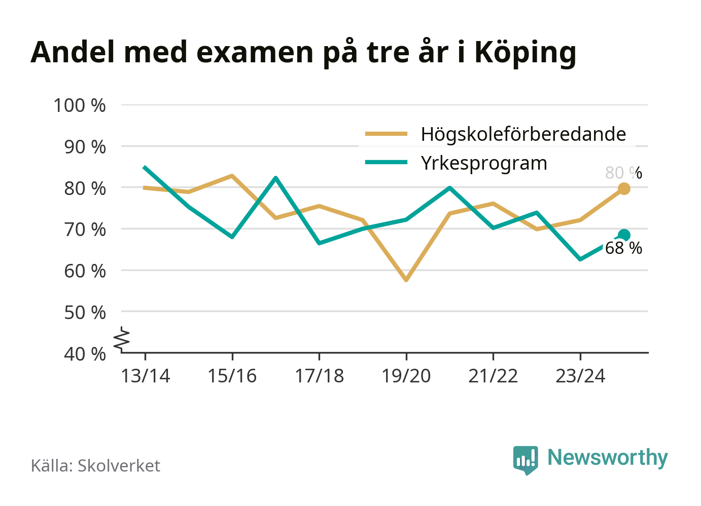 Enligt Skolverket är den främsta anledningen att andelen elever som har avbrutit eller förlängt sina gymnasiestudier minskat. Samtidigt har fler elever på högskoleförberedande program blivit godkända på gymnasiearbetet.