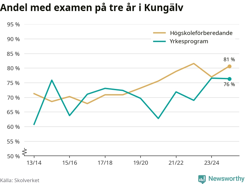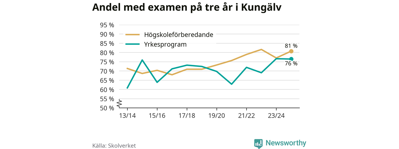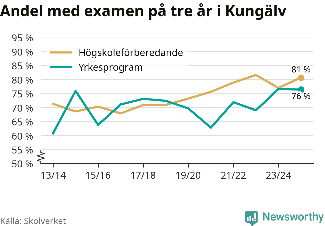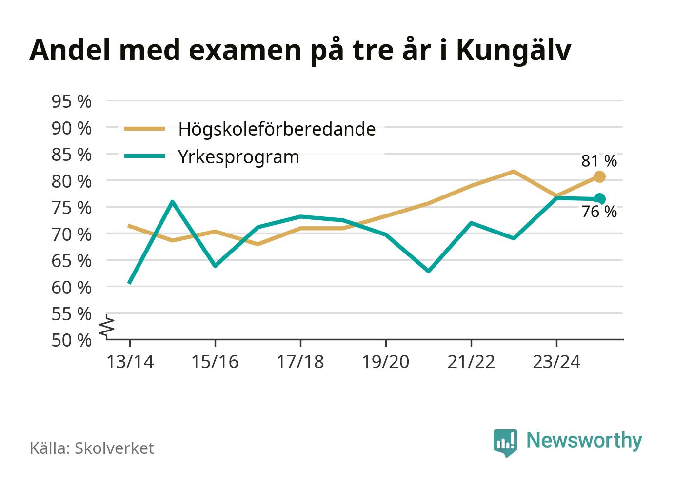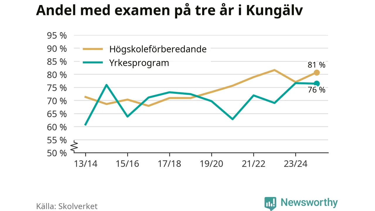 Precis som i riket som helhet ökade andelen i Kungälv som klarade gymnasieexamen på tre år. Här är resultaten – skola för skola.
