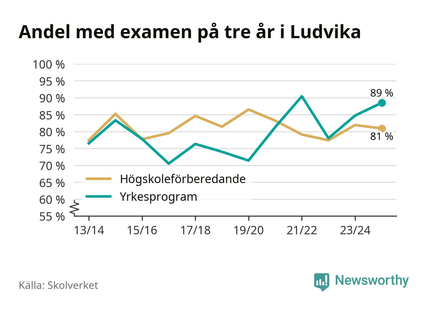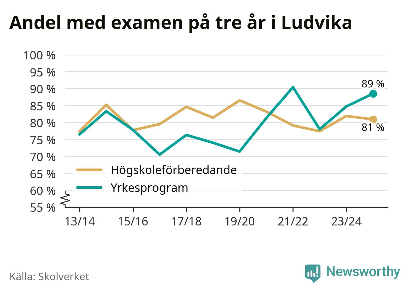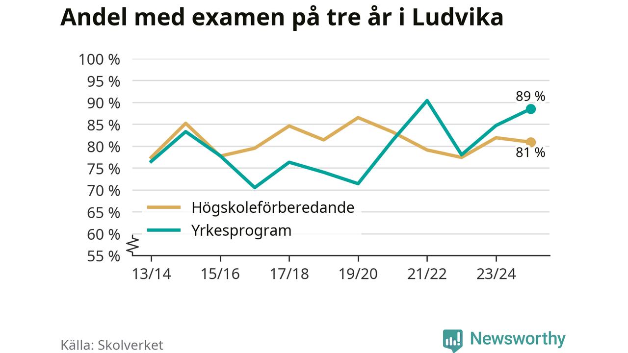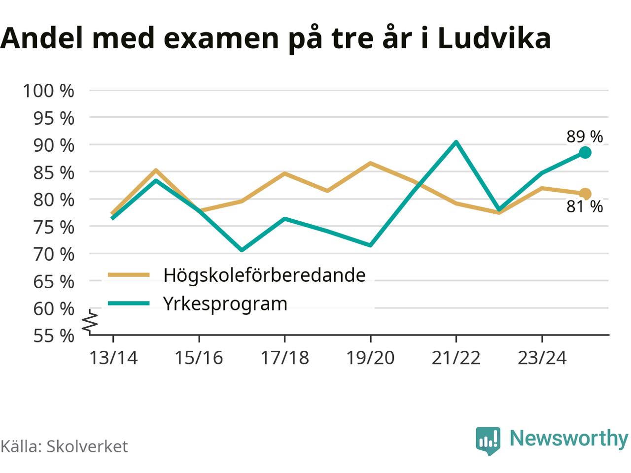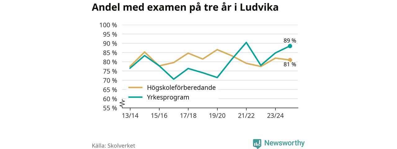 Precis som i riket som helhet ökade andelen som klarade gymnasieexamen från yrkesprogram på tre år i Ludvika. Här är resultaten – skola för skola.