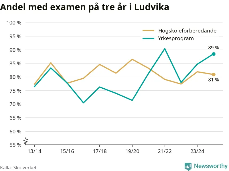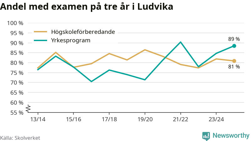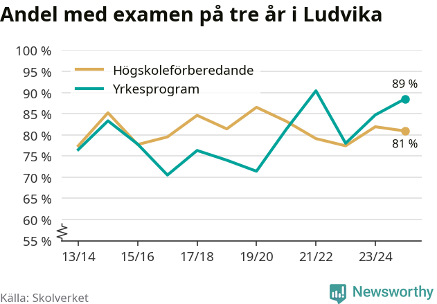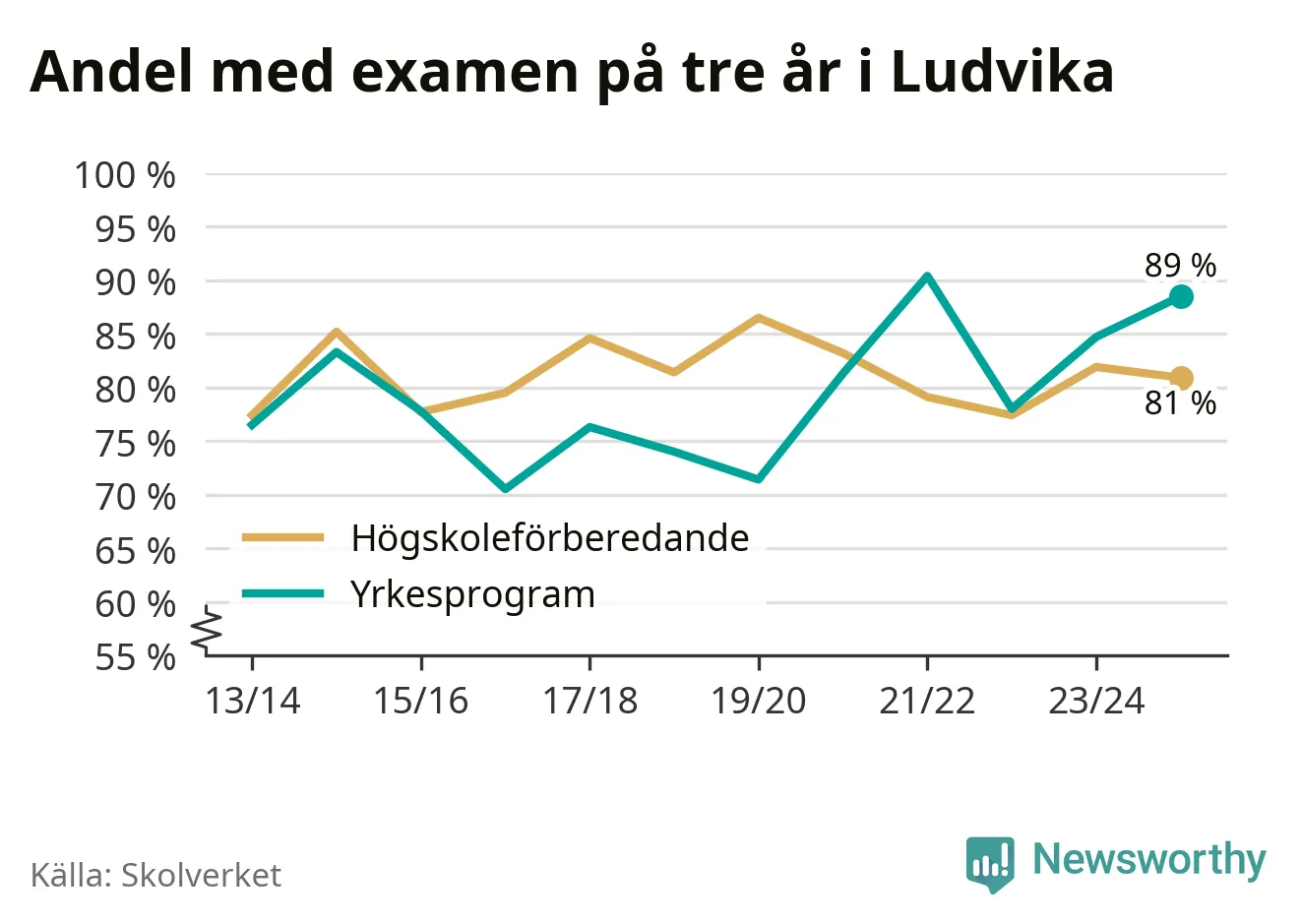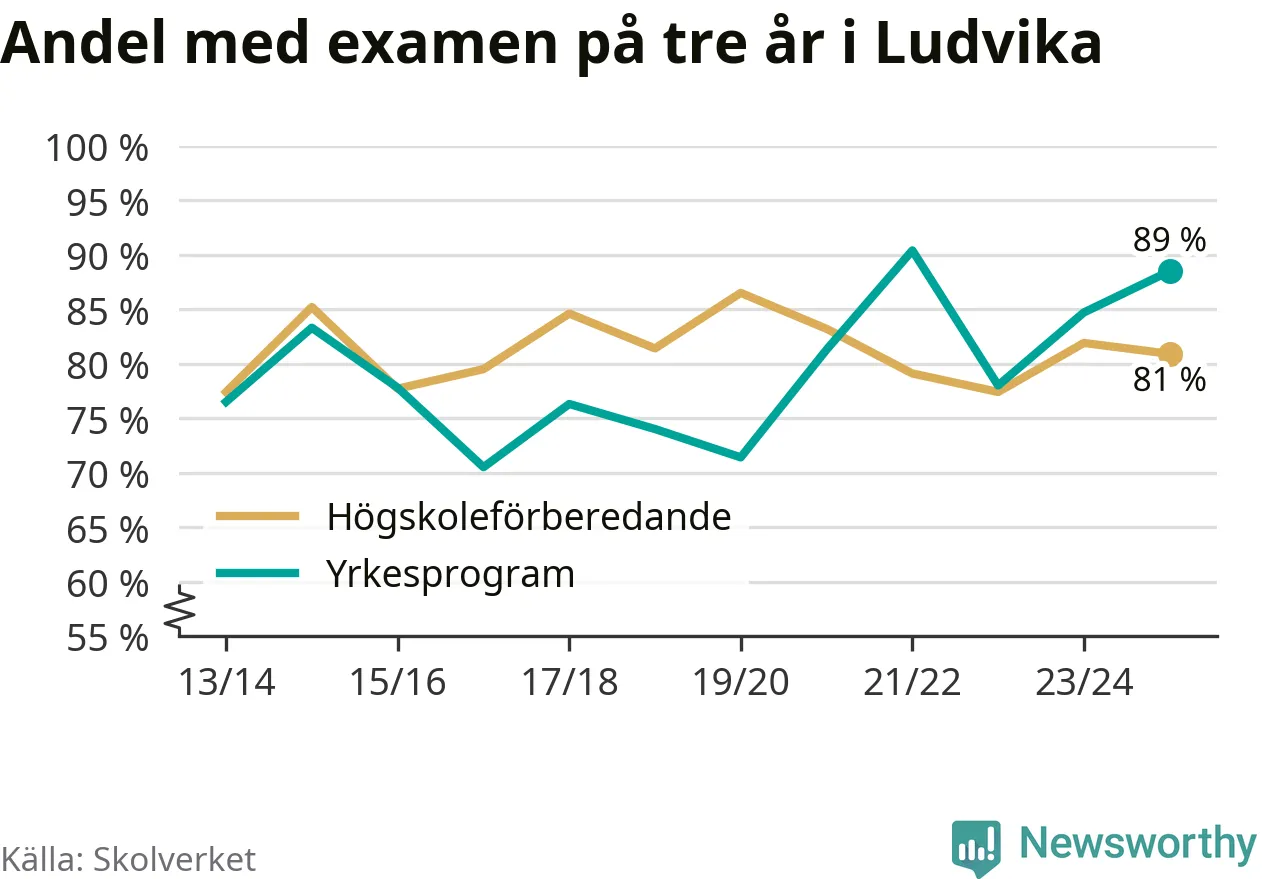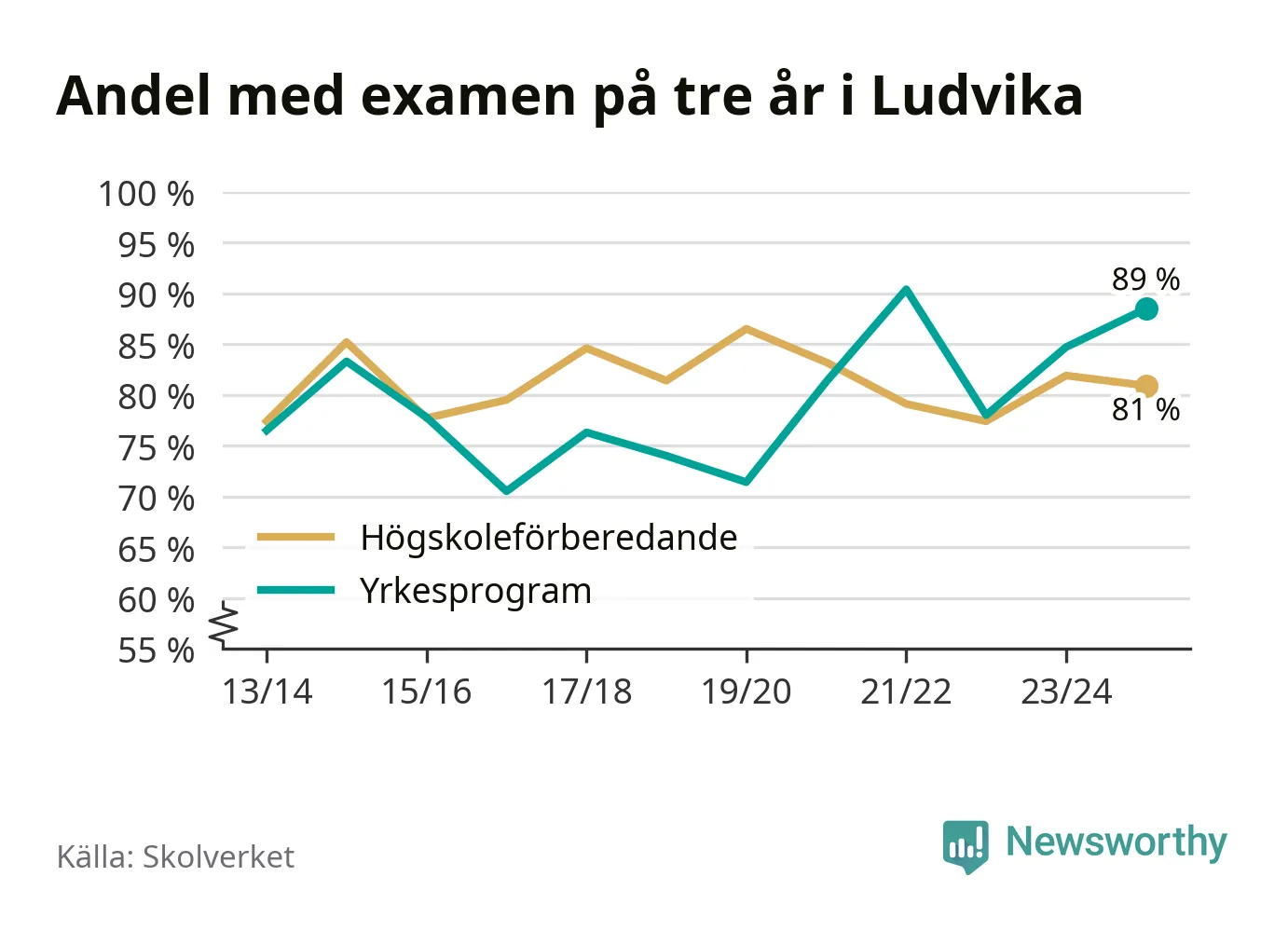 Precis som i riket som helhet ökade andelen som klarade gymnasieexamen från yrkesprogram på tre år i Ludvika. Här är resultaten – skola för skola.