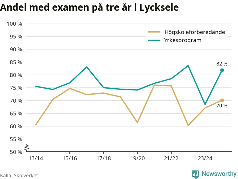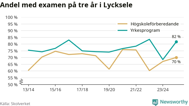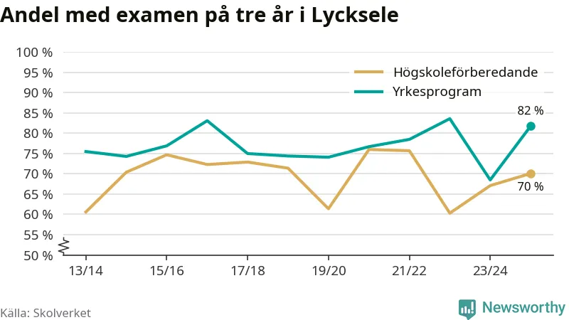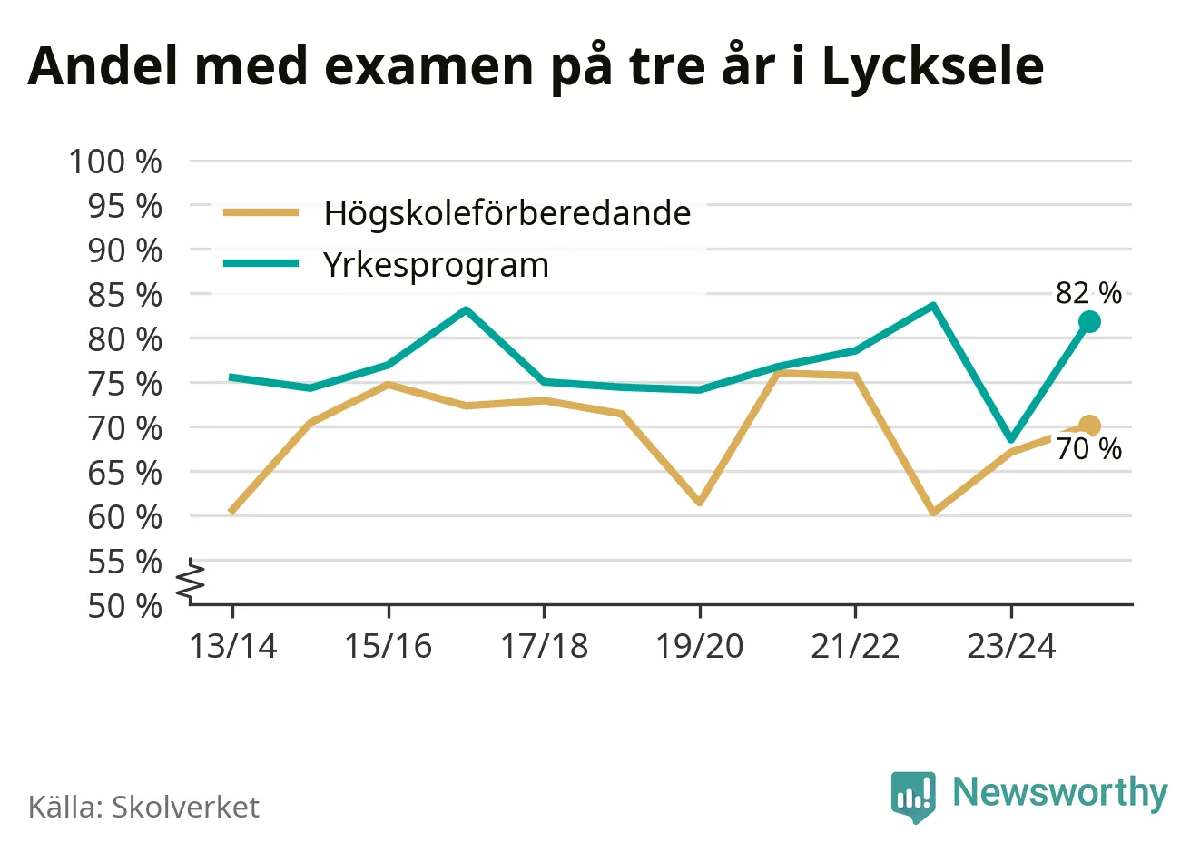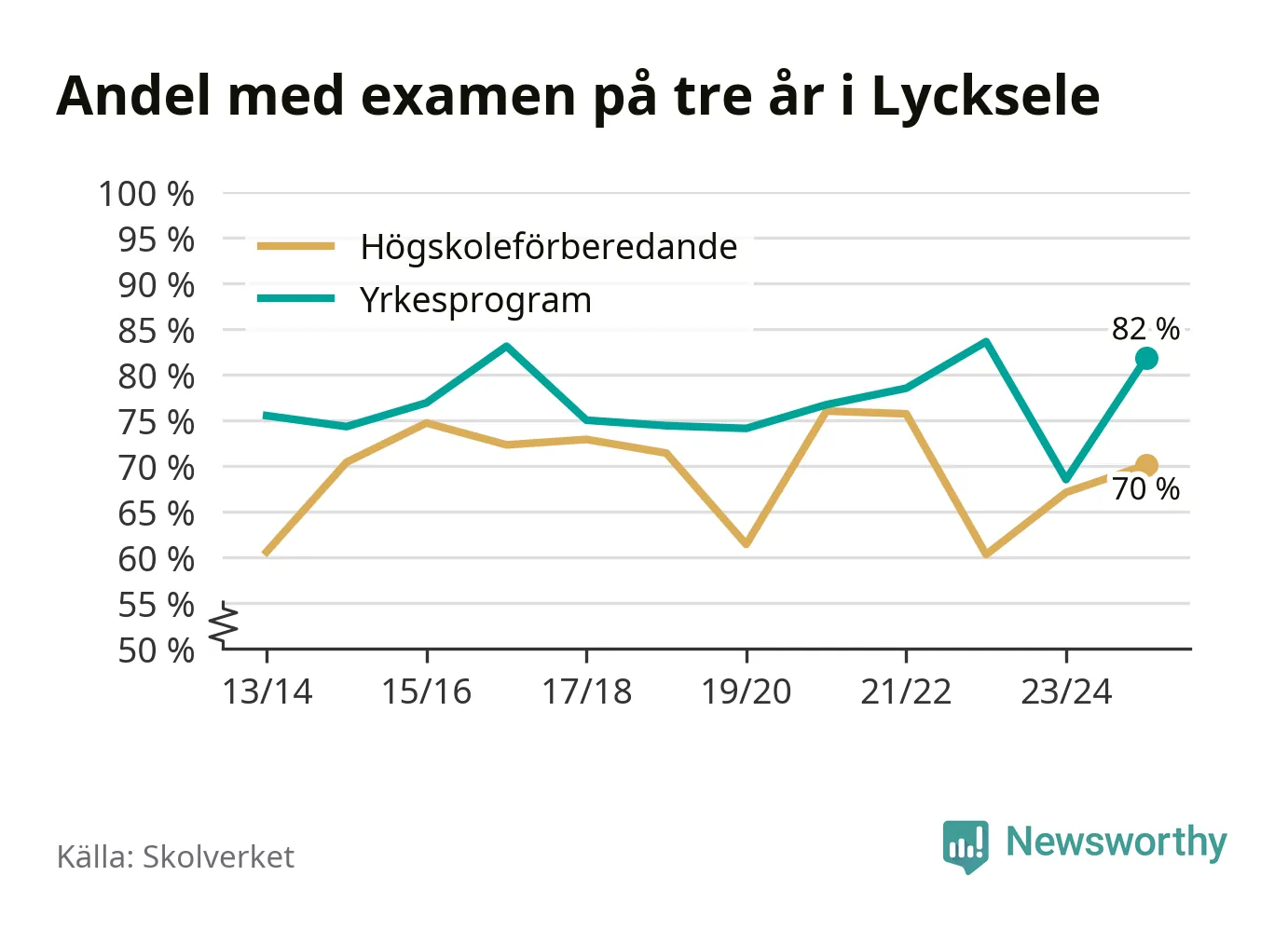 När eleverna på de yrkesförberedande programmen i Lycksele kommun sprang ut i våras hade 82 procent klarat gymnasieexamen på tre år. Det är 14 procentenheter fler än året innan.