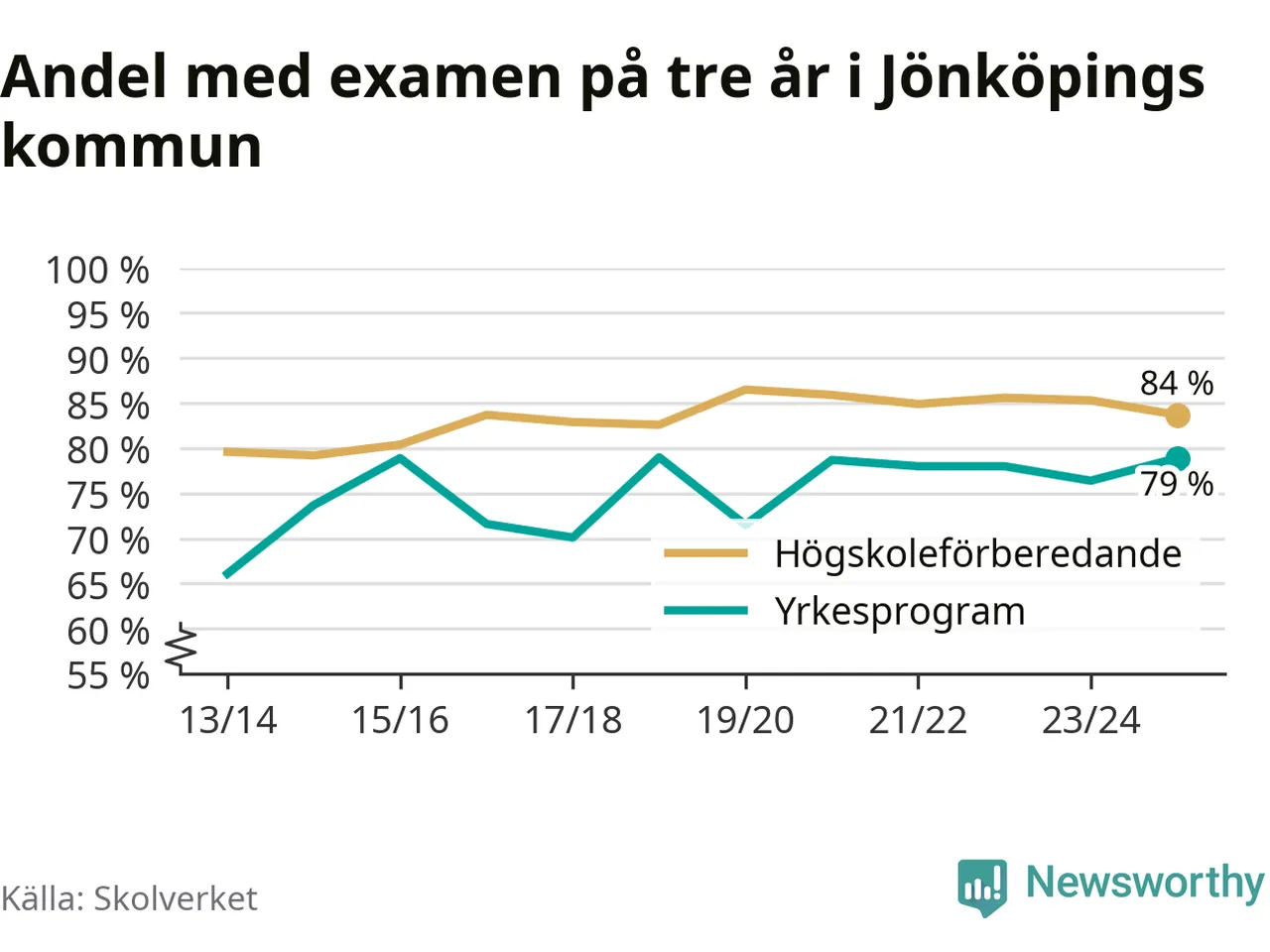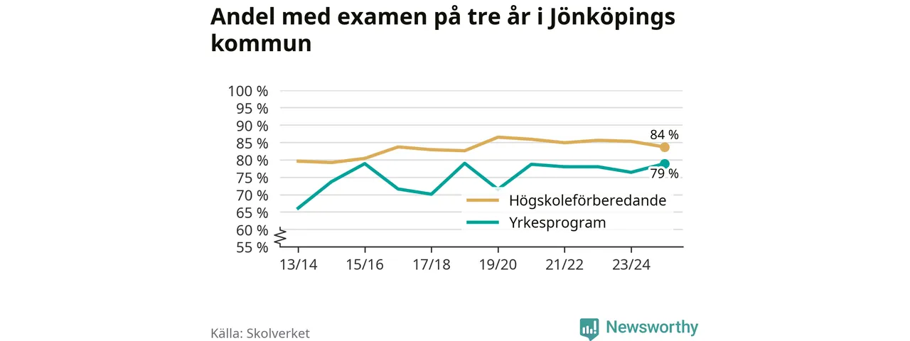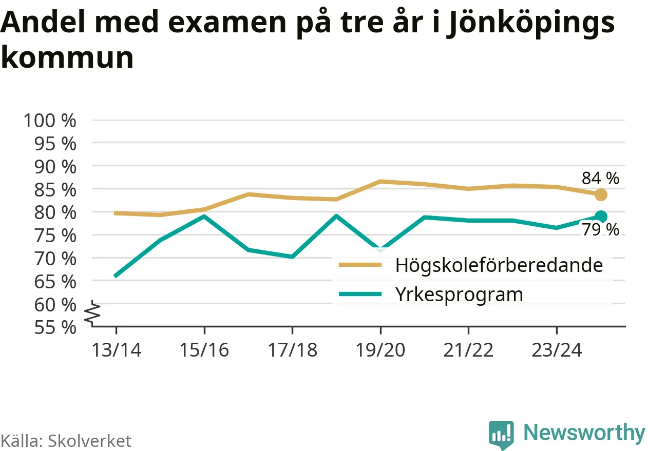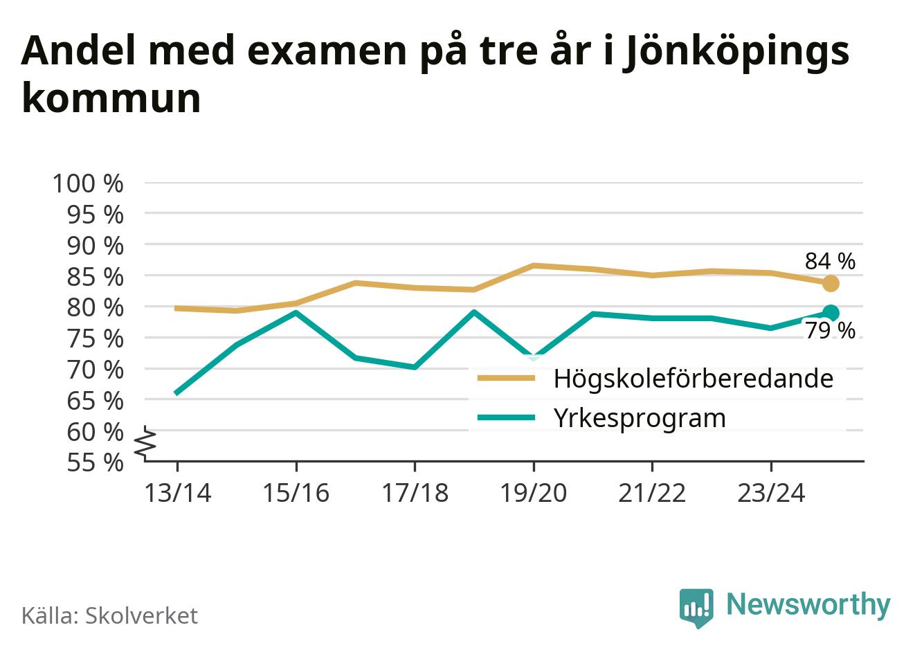 Andel elever med gymnasieexamen på högskoleförberedande program i Jönköpings län 2024/25