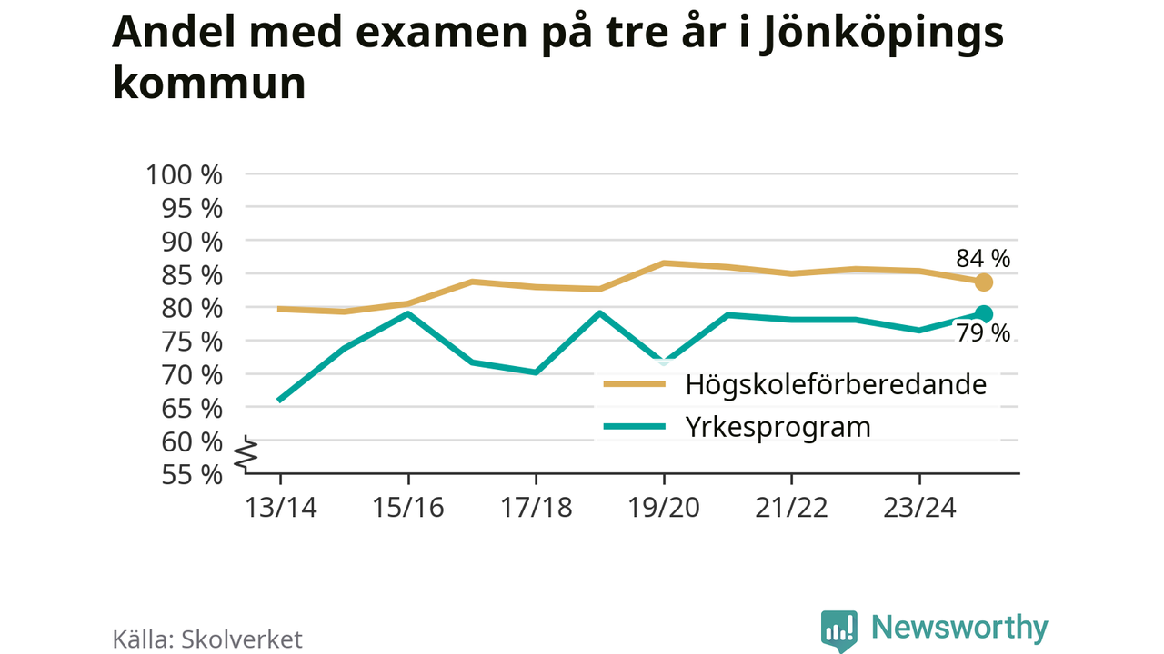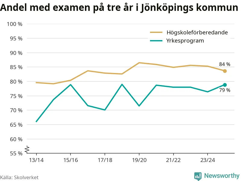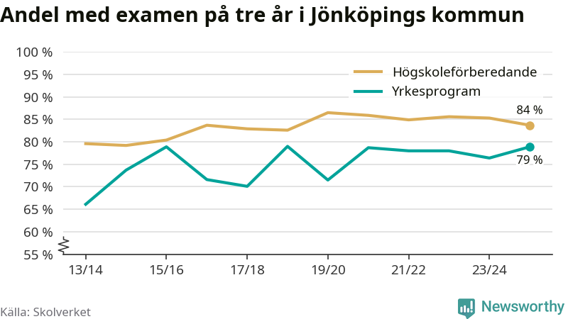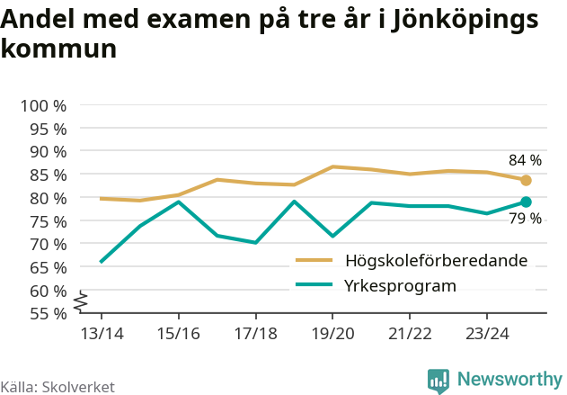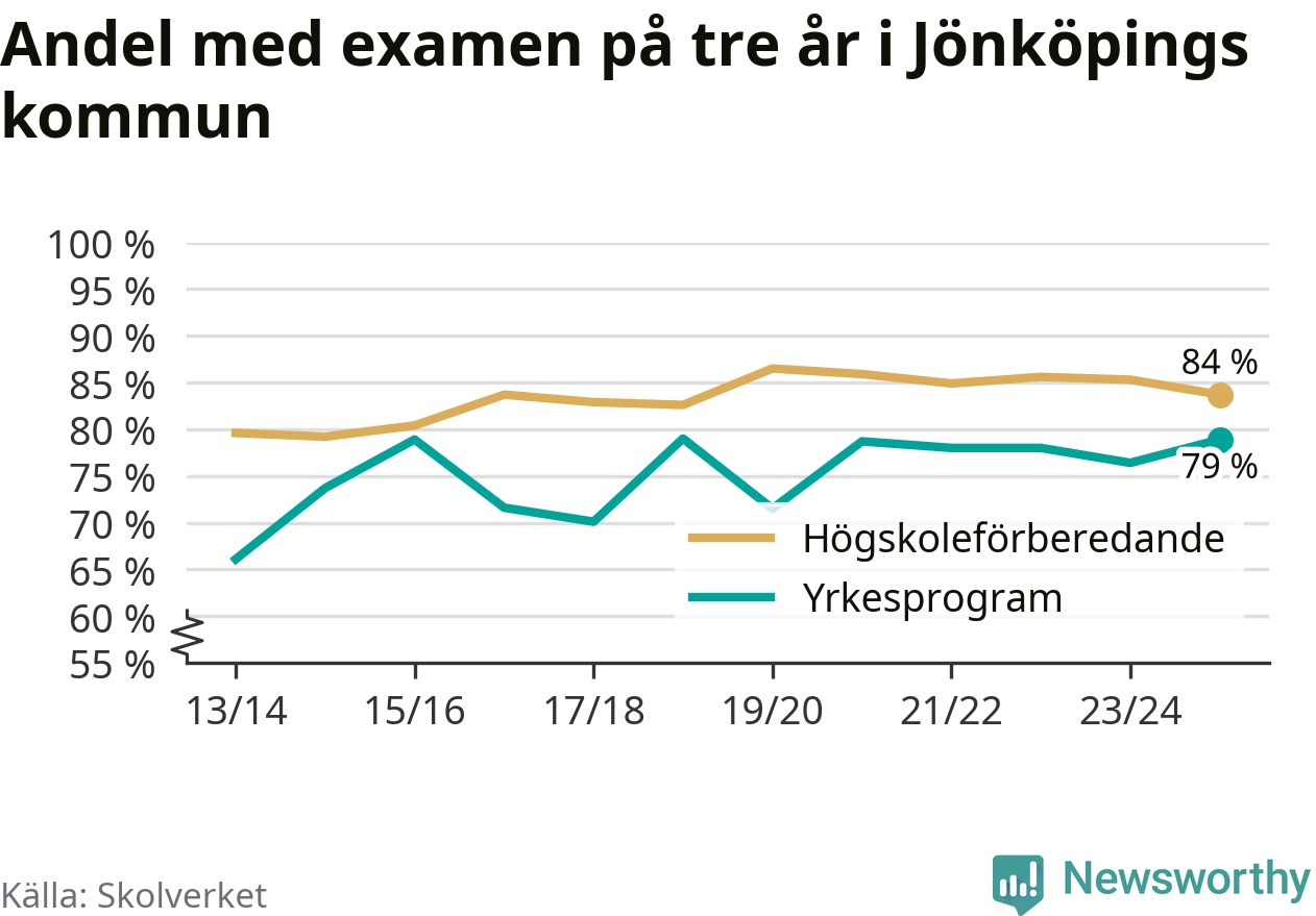 Andel elever med gymnasieexamen på högskoleförberedande program i Jönköpings län 2024/25