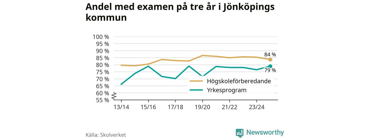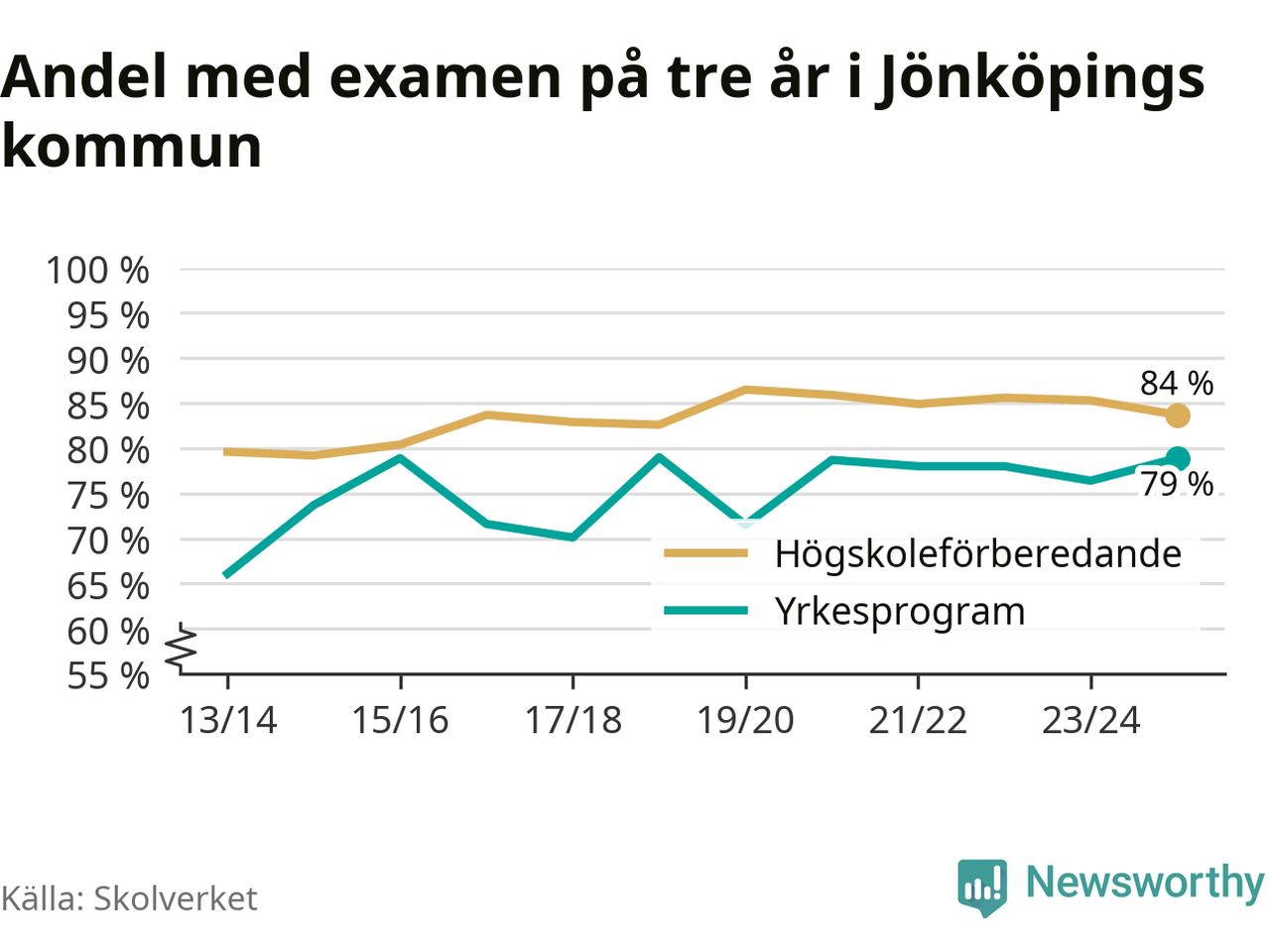 När eleverna på de yrkesförberedande programmen i Jönköpings kommun sprang ut i våras hade 79 procent klarat gymnasieexamen på tre år. Det är tre procentenheter fler än året innan och inte sedan kullen som tog studenten läsåret 2018/19 har andelen varit högre.