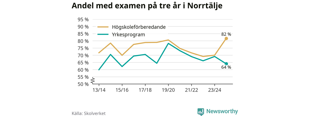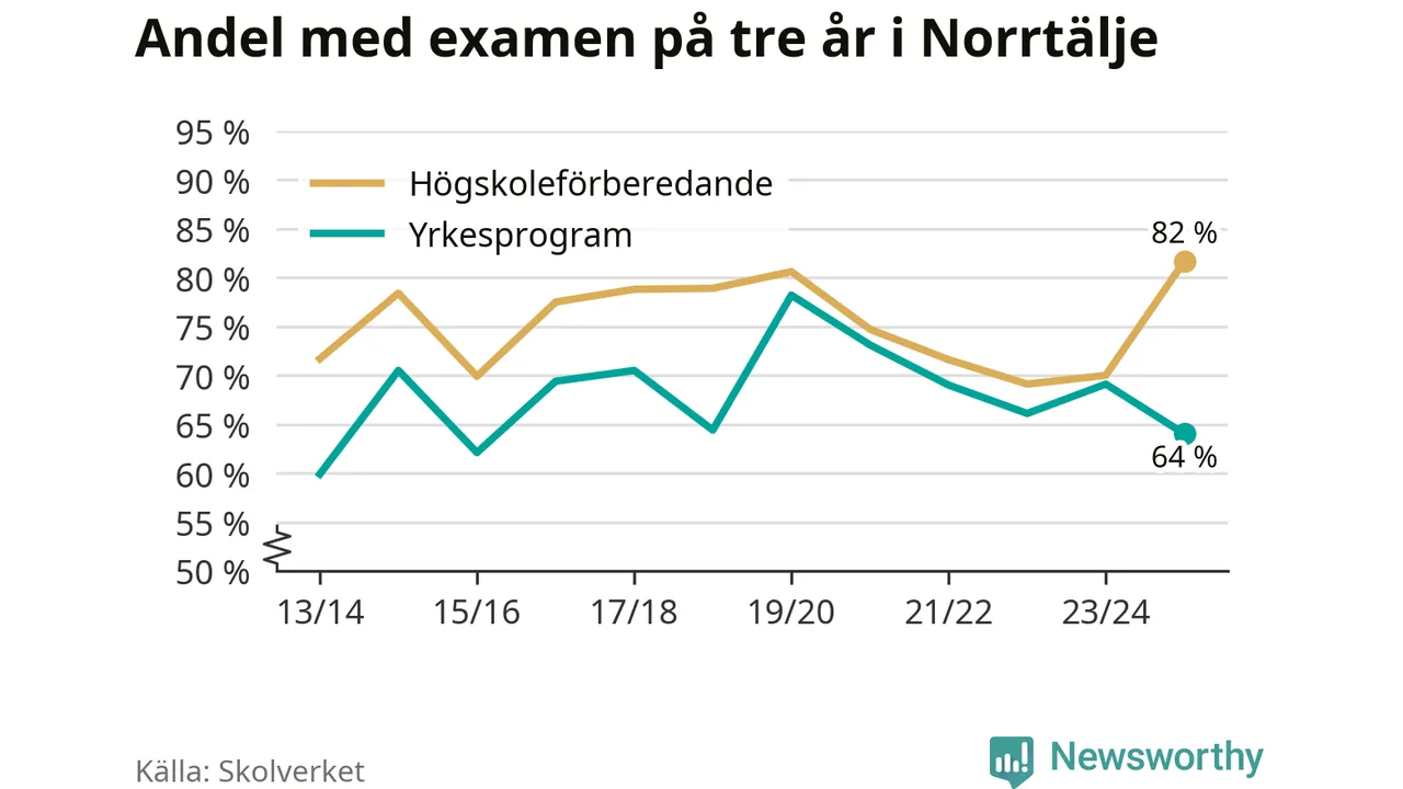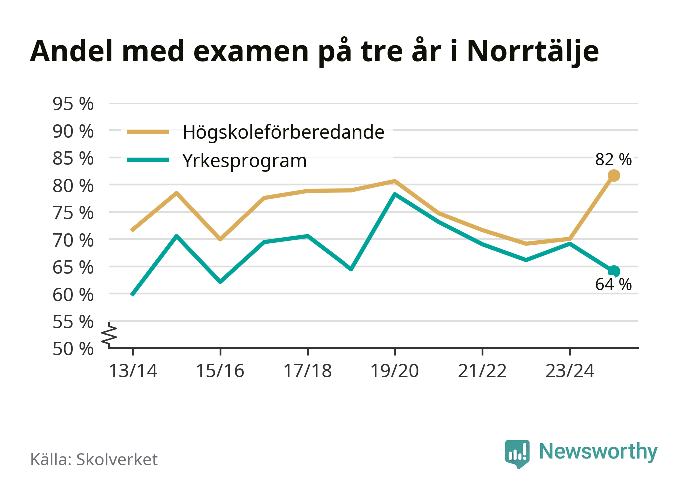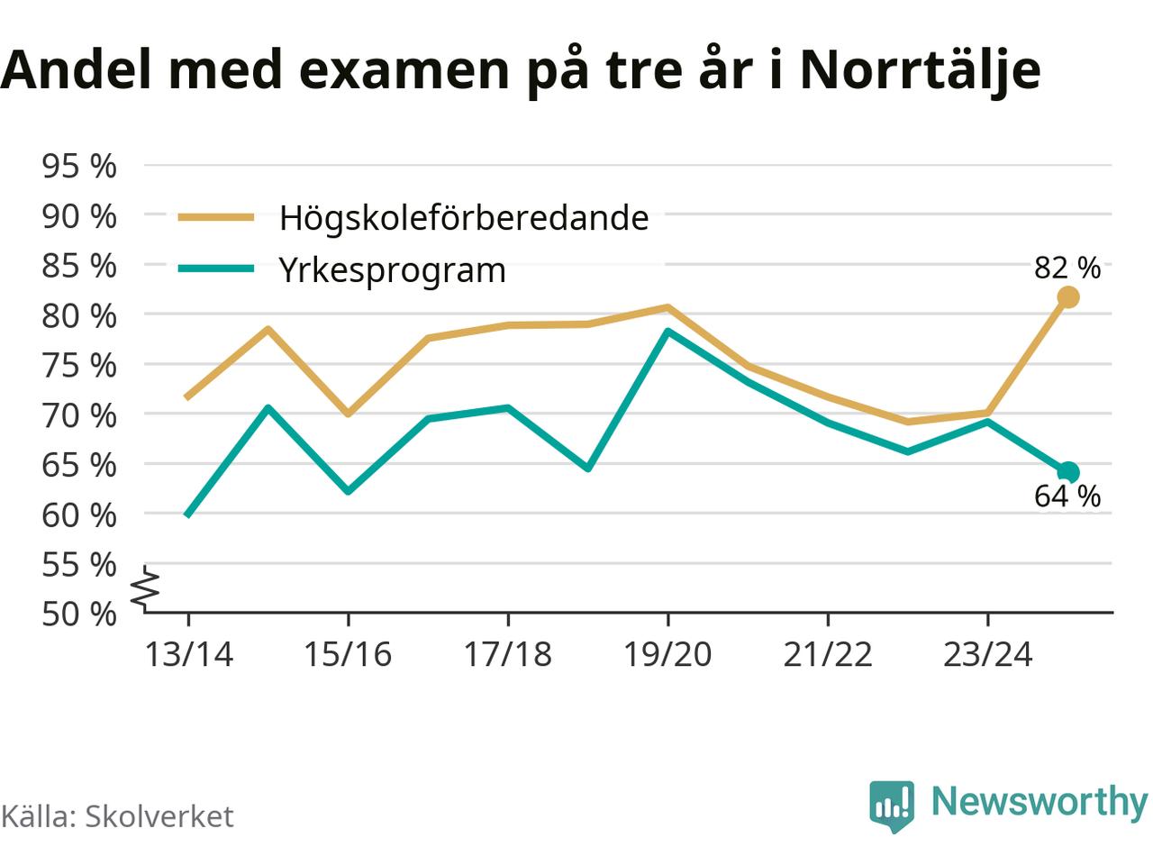 Inte sedan åtminstone läsåret 2013/14 har andelen elever som klarat gymnasieexamen på högskoleförberedande program varit högre i Norrtälje. Det visar Skolverkets senaste statistik.