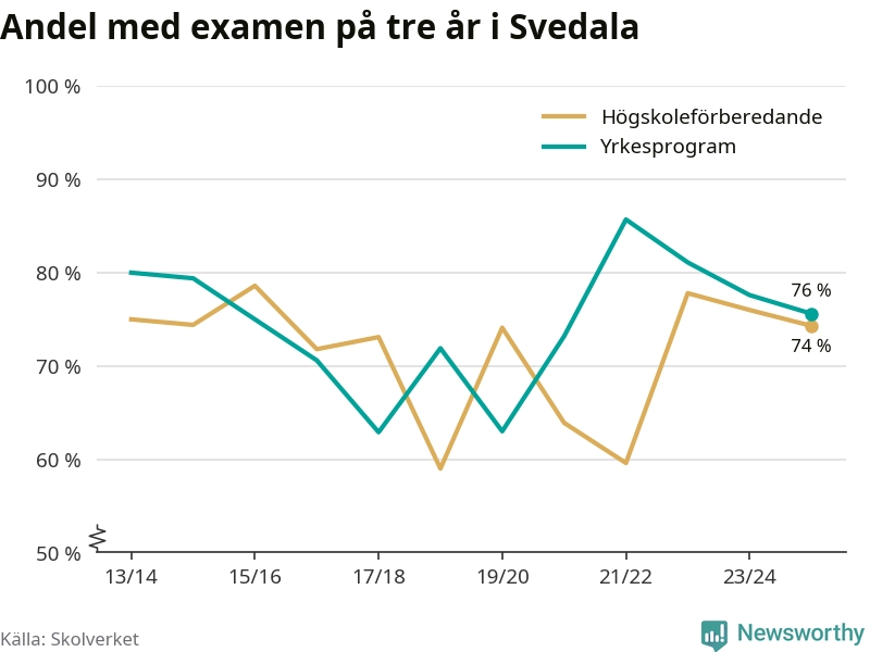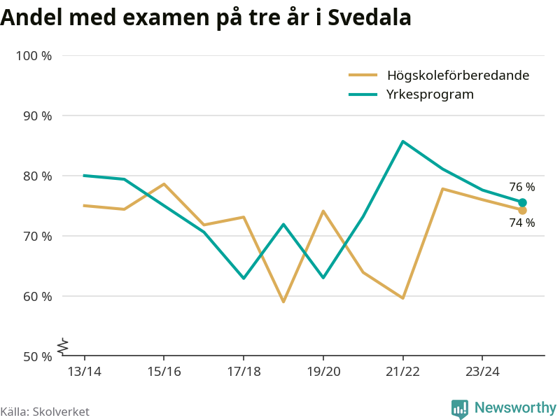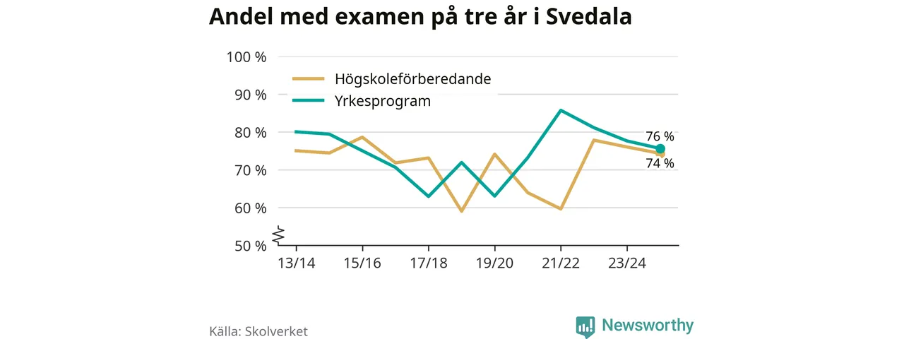 På Sveriges Ridgymnasium Svedala klarade 81 procent av de 36 eleverna som började gymnasiet 2022/23 examen i våras. Det är i närheten av rikssnittet. På Nils Fredriksson Utbildning, gymnasium var motsvarande siffra 71 procent.