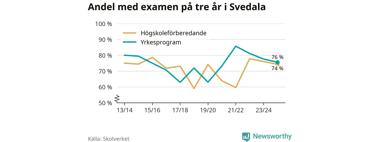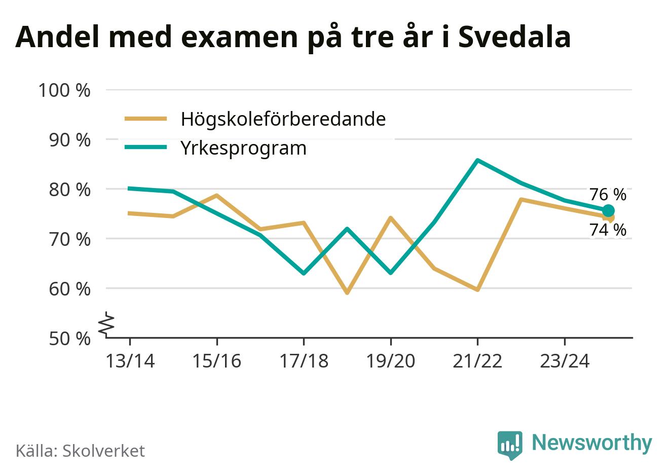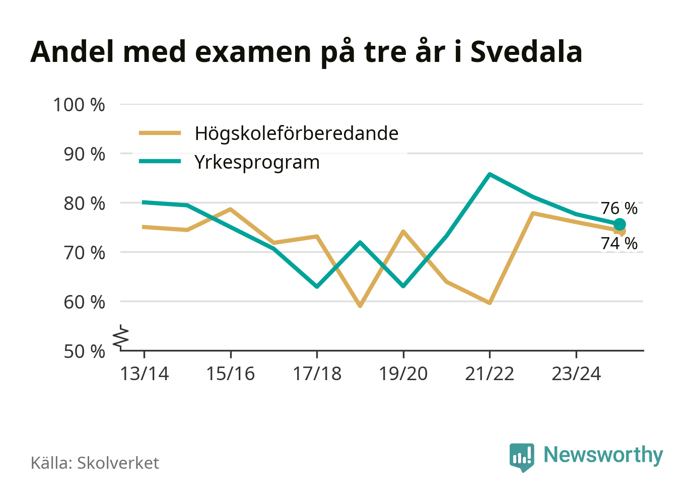 | Nils Fredriksson Utbildning, gymnasium | Svedala | 74 % (−2 %) | 76 % (−4 %) |