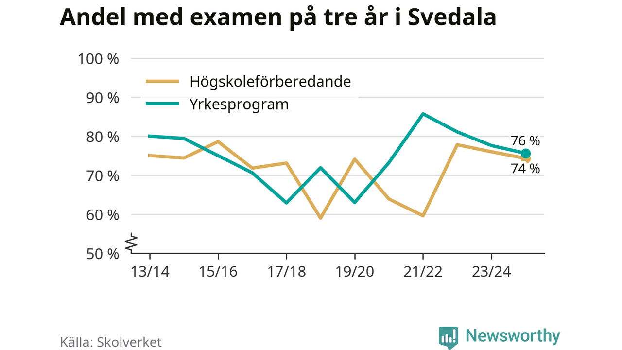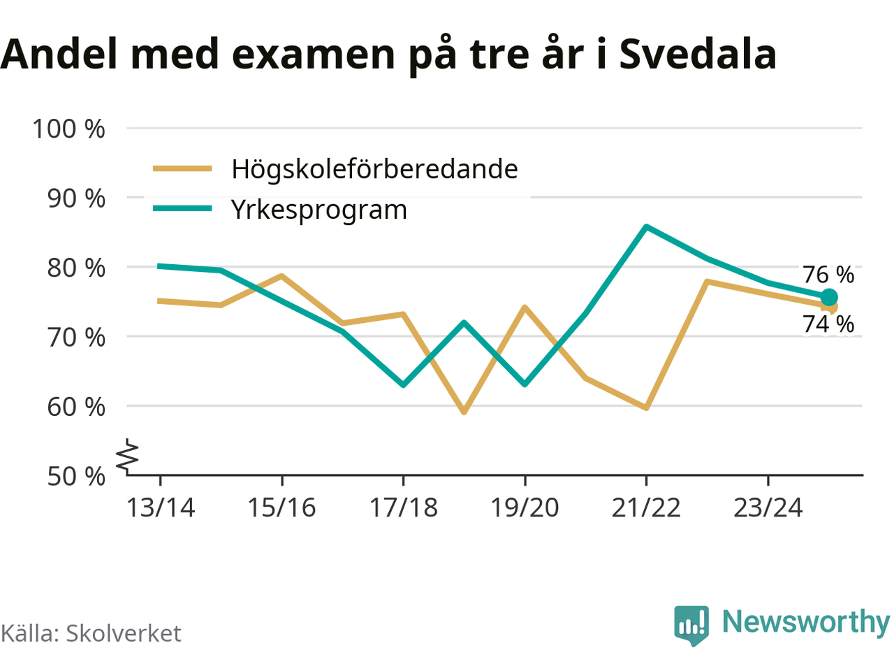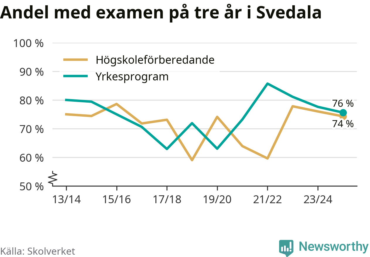 | Nils Fredriksson Utbildning, gymnasium | Svedala | 74 % (−2 %) | 76 % (−4 %) |