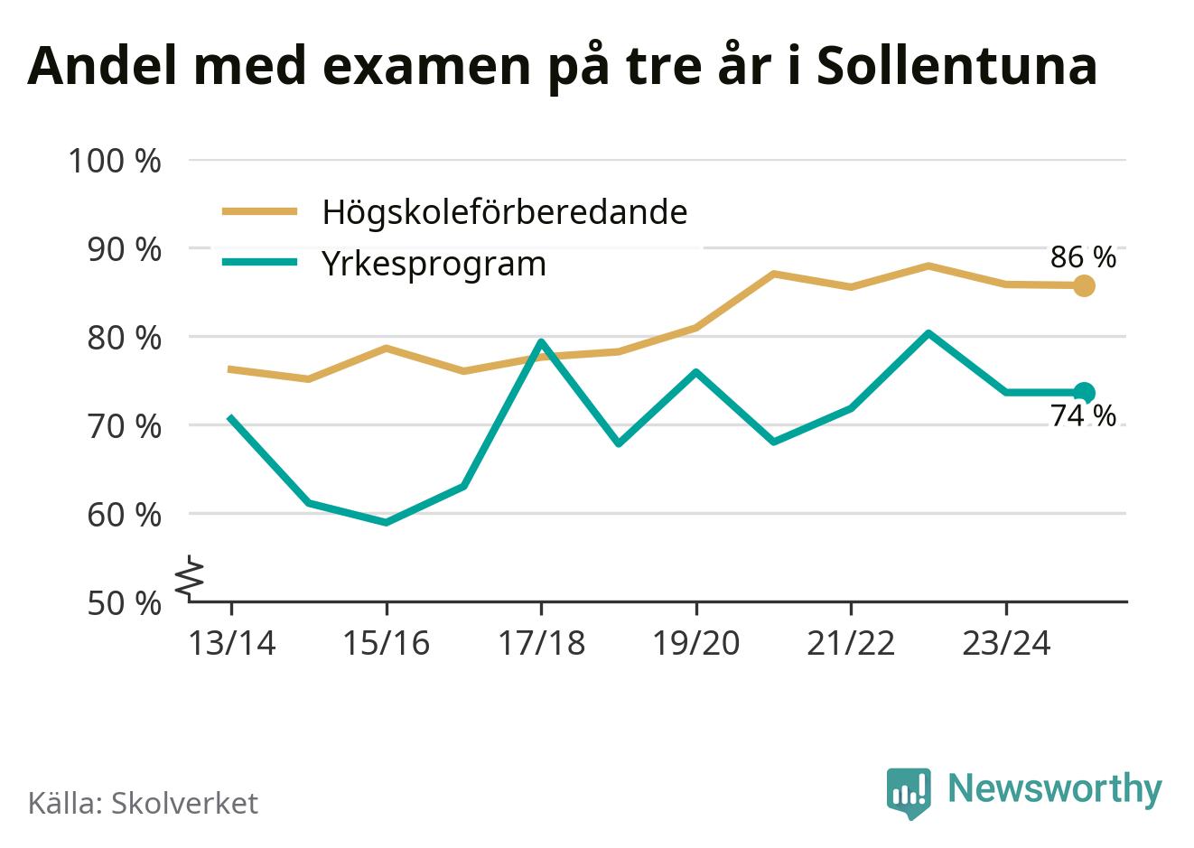 Enligt Skolverket är den främsta anledningen att andelen elever som har avbrutit eller förlängt sina gymnasiestudier minskat. Samtidigt har fler elever på högskoleförberedande program blivit godkända på gymnasiearbetet.