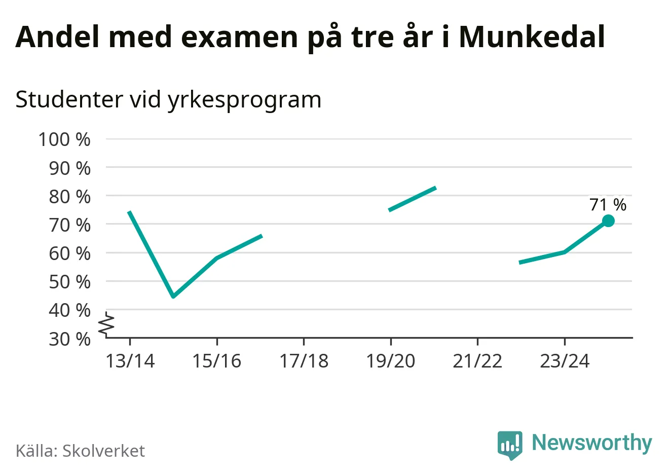 | Uddevalla gymnasieskola, Östrabo Y EE | Uddevalla | 71 % (−3 %) | 85 % (+7 %) |