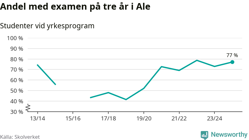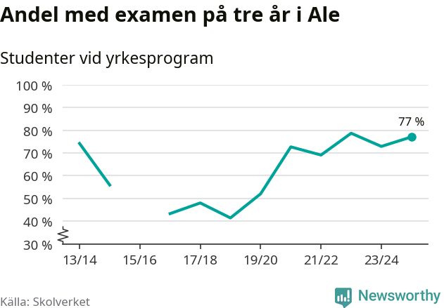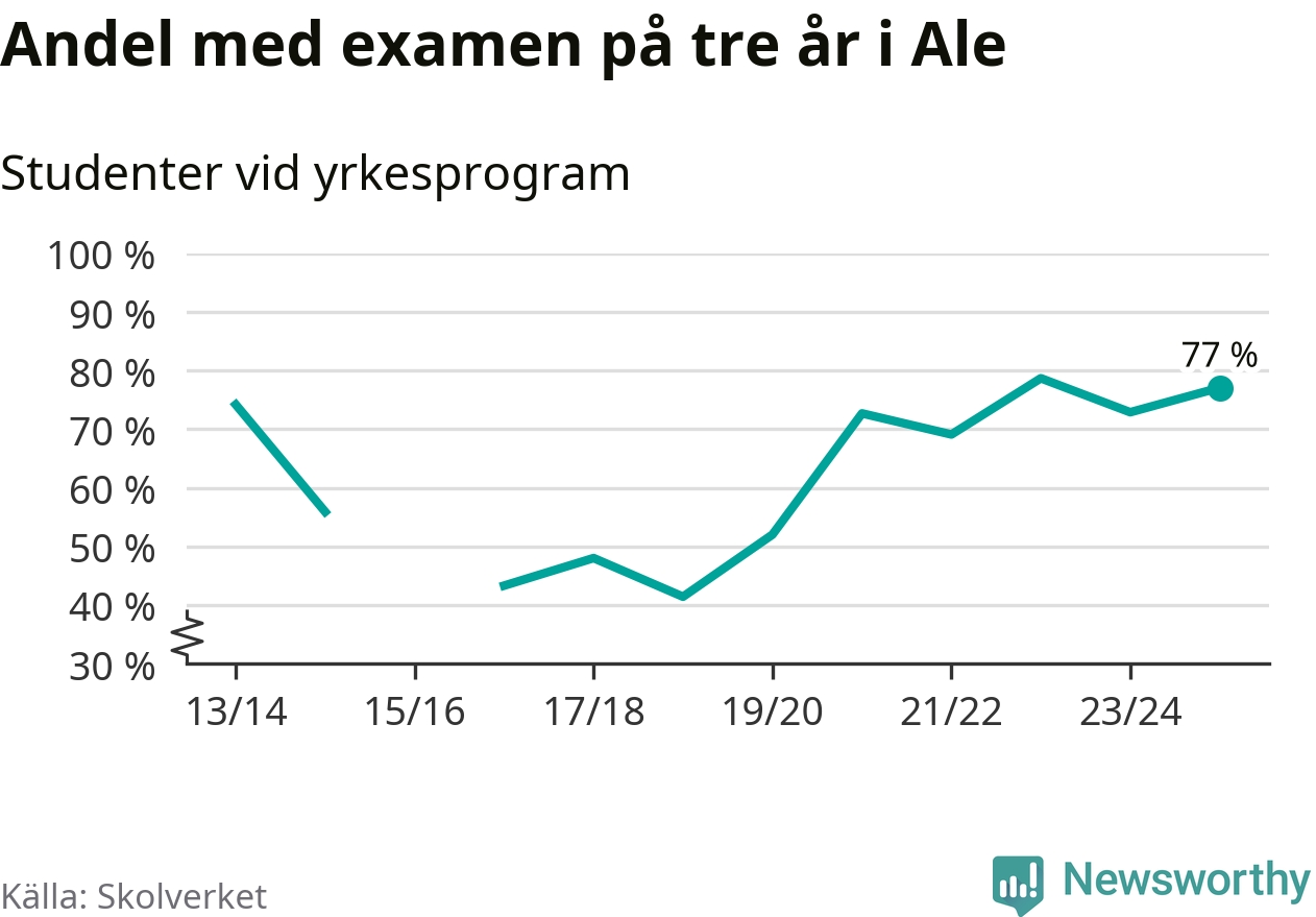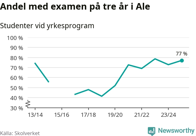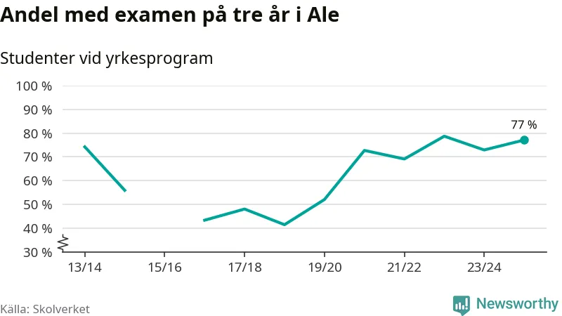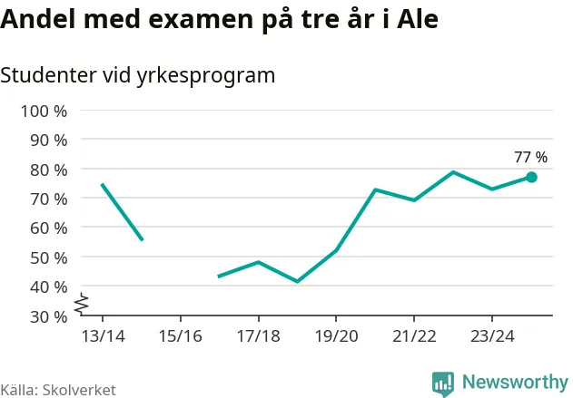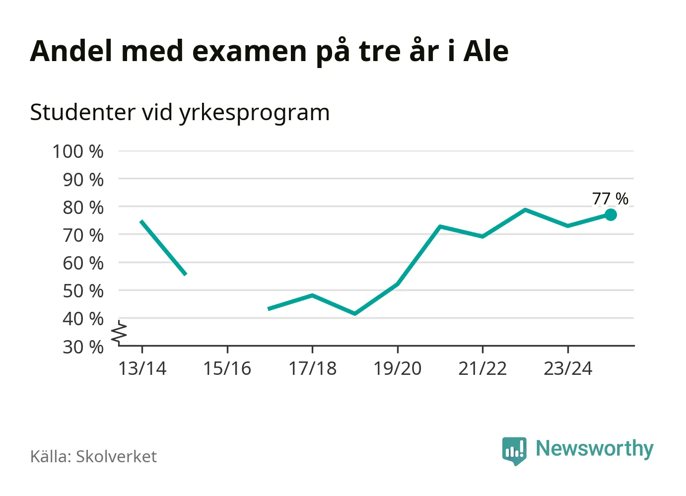Precis som i riket som helhet ökade andelen som klarade gymnasieexamen på tre år i Ale.