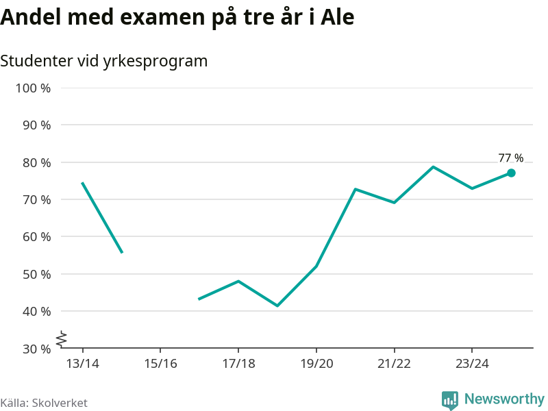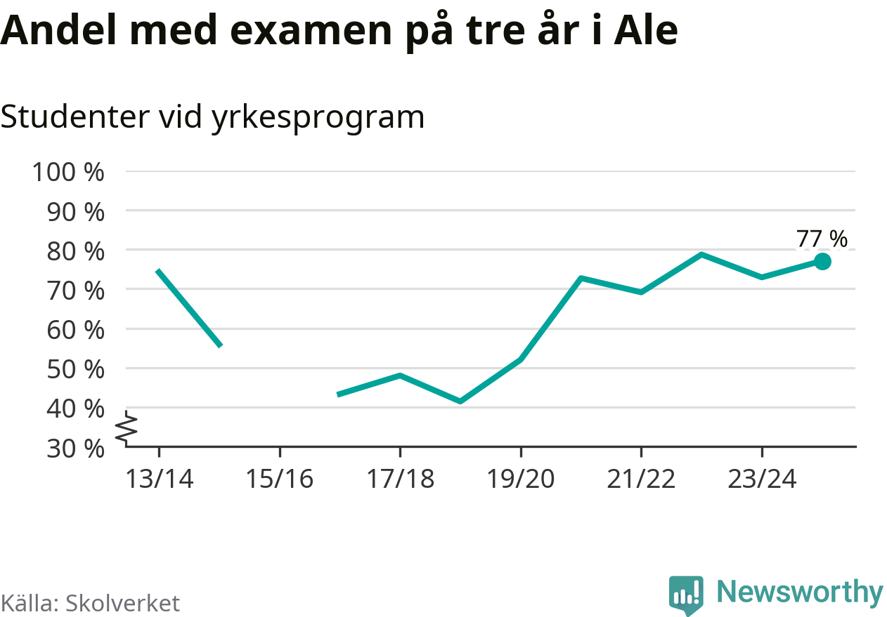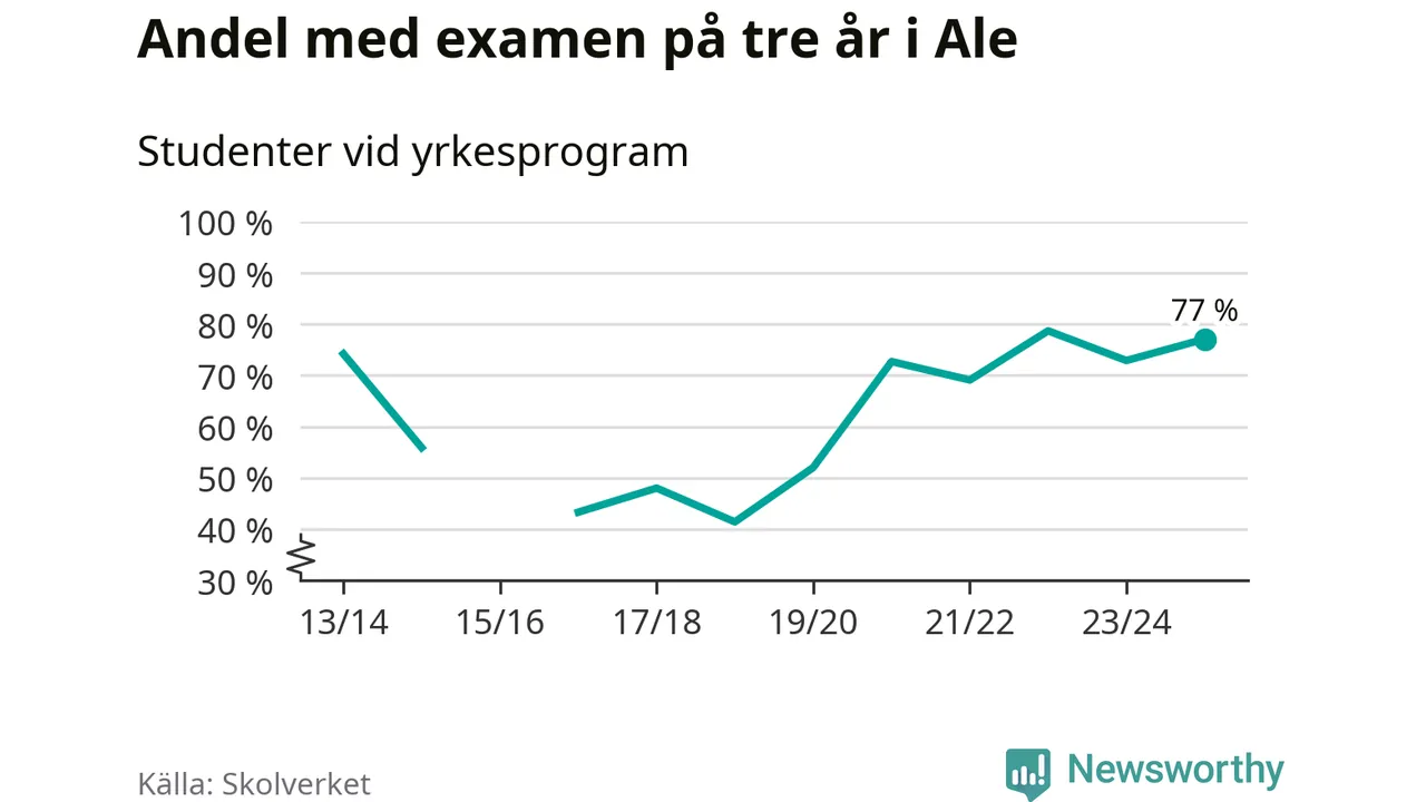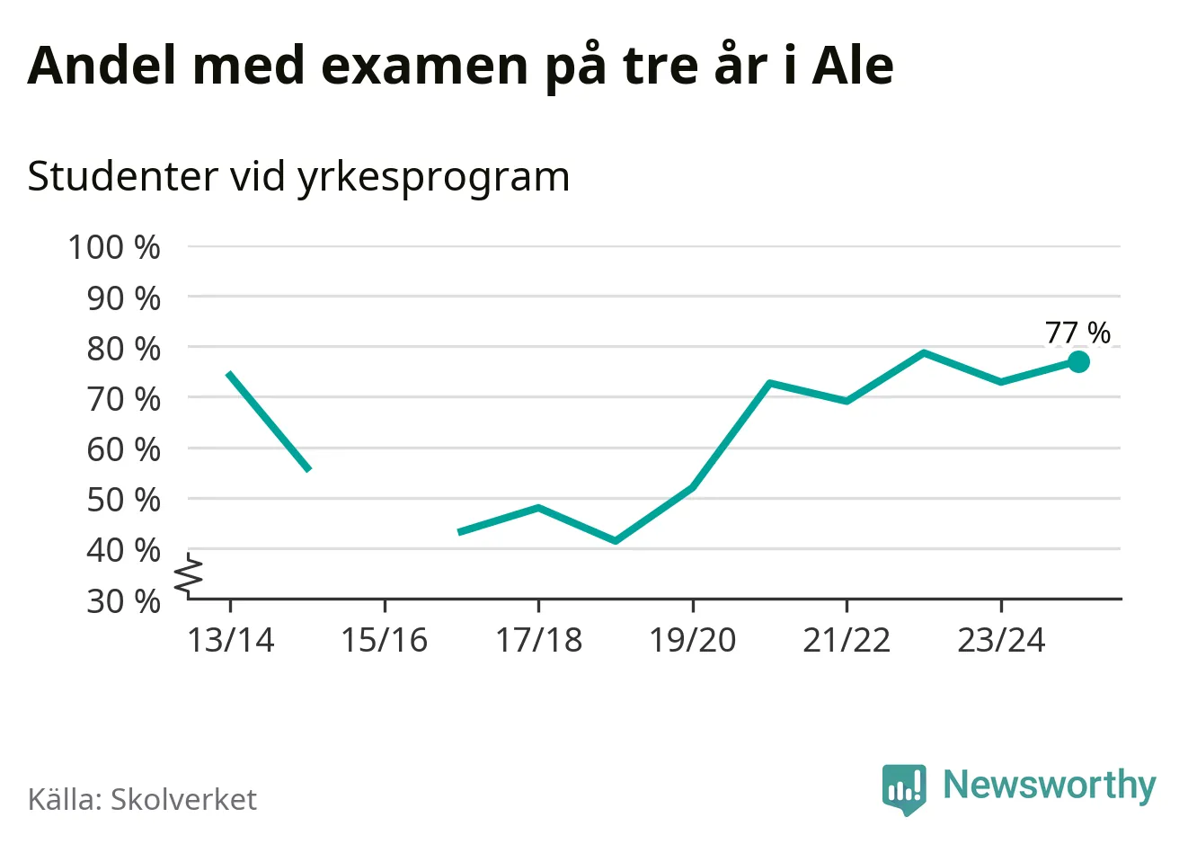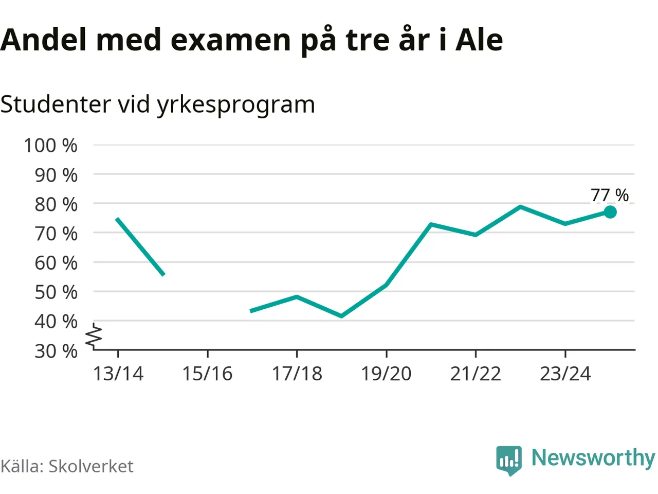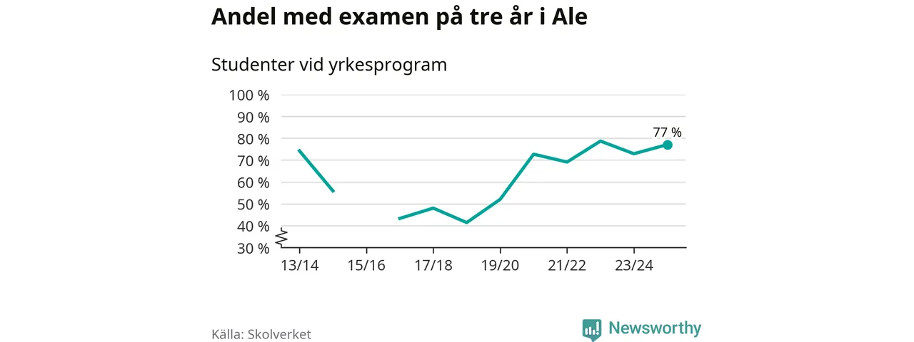 De 70 eleverna som började på Lärlingsgymnasiet i Ale 2022/23 klarade examen på tre år i ungefär samma utsträckning som elever på yrkesprogram i riket som helhet.