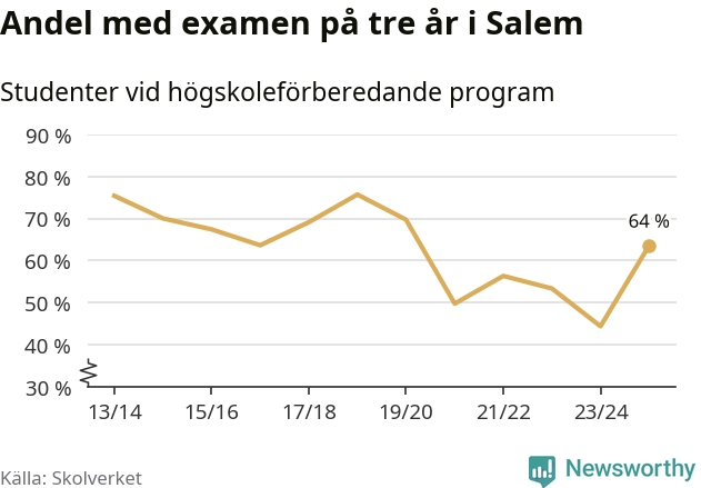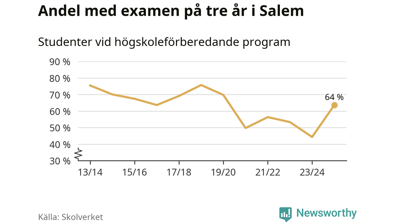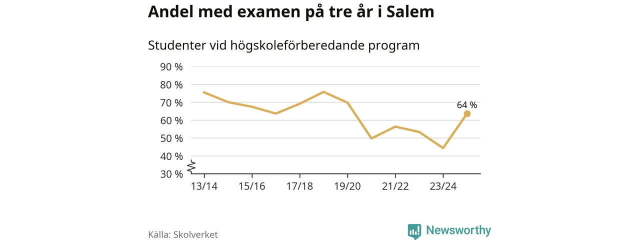 Precis som i riket som helhet ökade andelen i Salem som klarade gymnasieexamen på tre år. Här är resultaten – skola för skola.