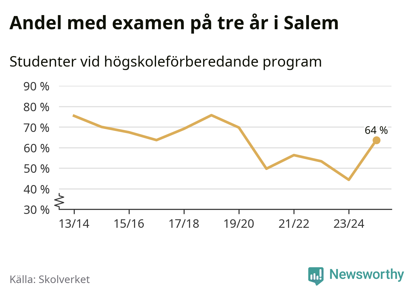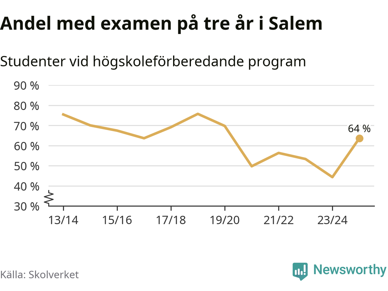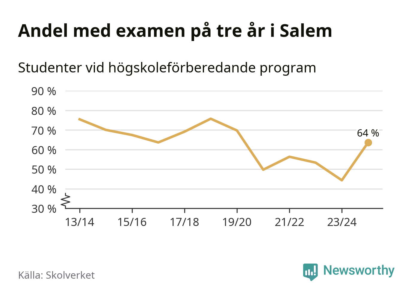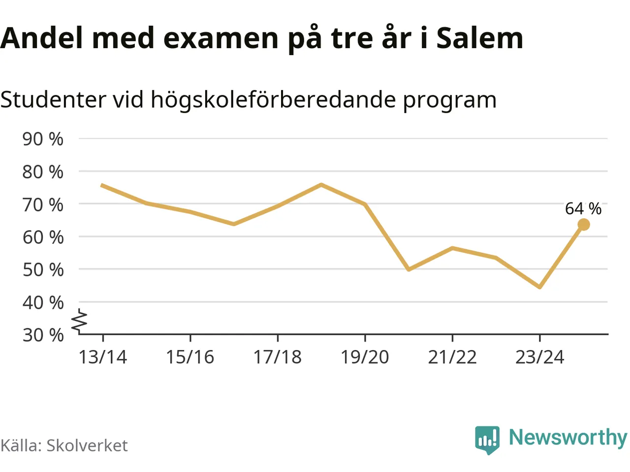 Enligt Skolverket är den främsta anledningen att andelen elever som har avbrutit eller förlängt sina gymnasiestudier minskat. Samtidigt har fler elever på högskoleförberedande program blivit godkända på gymnasiearbetet.