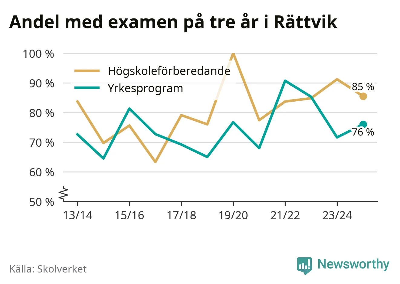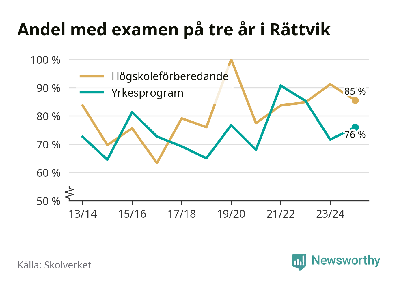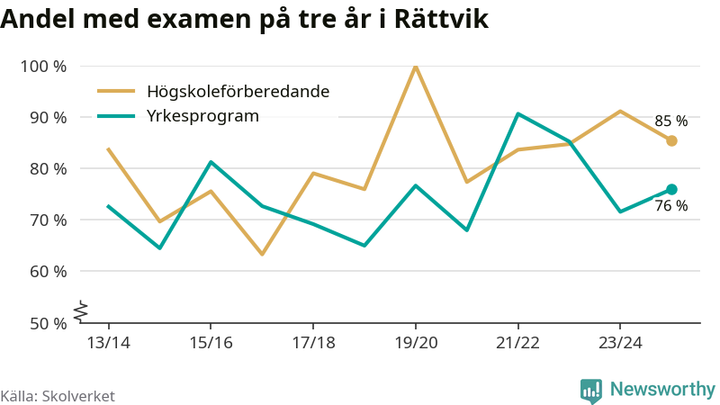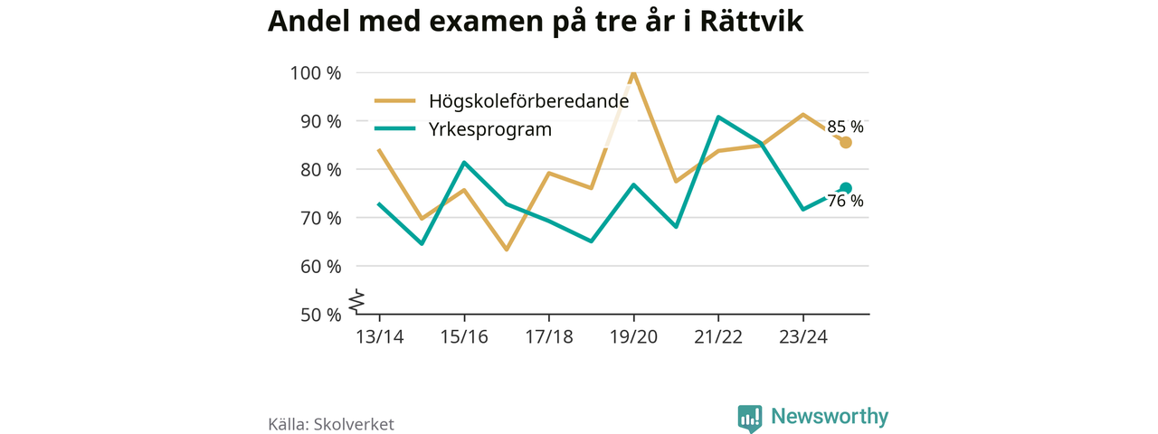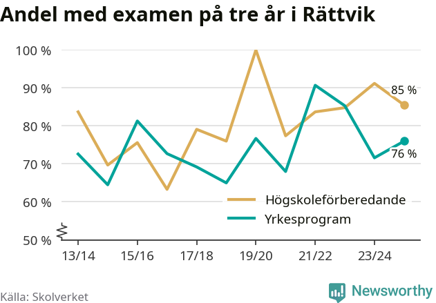 Enligt Skolverket är den främsta anledningen att andelen elever som har avbrutit eller förlängt sina gymnasiestudier minskat. Samtidigt har fler elever på högskoleförberedande program blivit godkända på gymnasiearbetet.