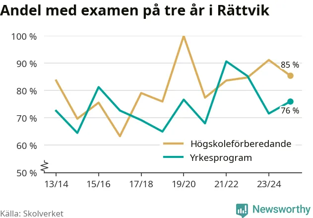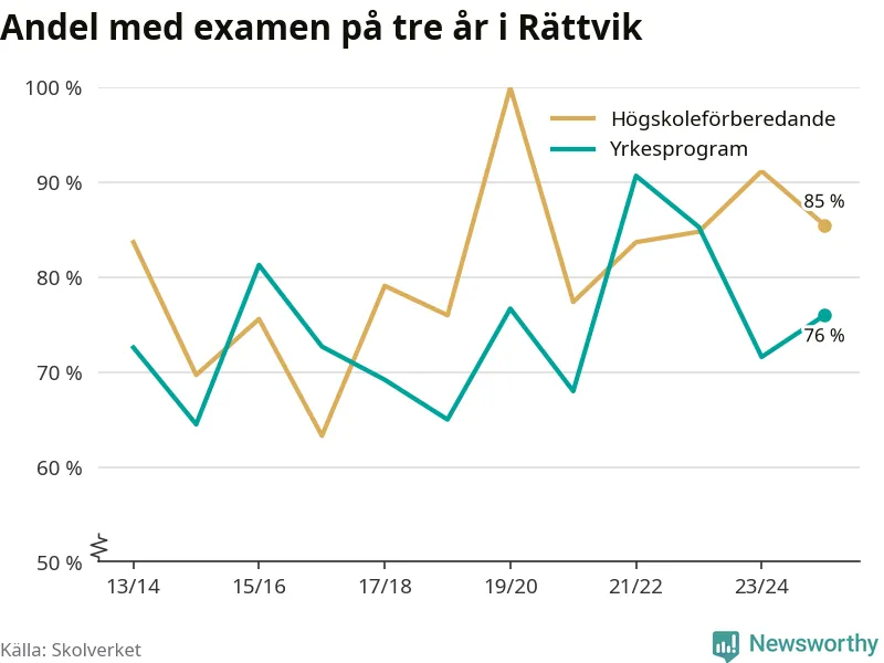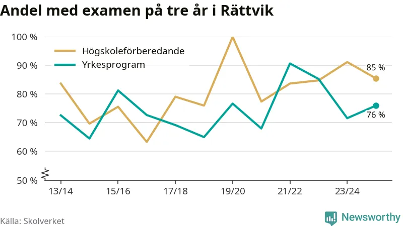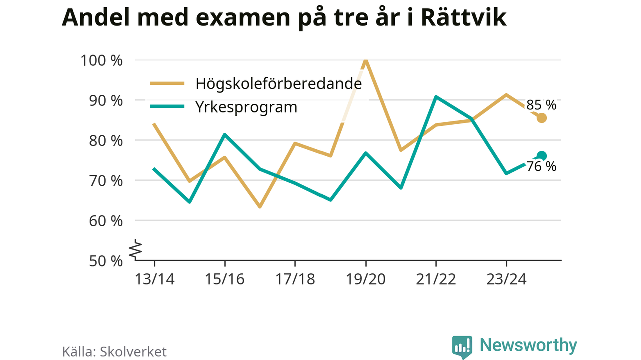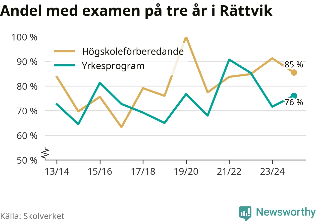 Precis som i riket som helhet ökade andelen som klarade gymnasieexamen från yrkesprogram på tre år i Rättvik.