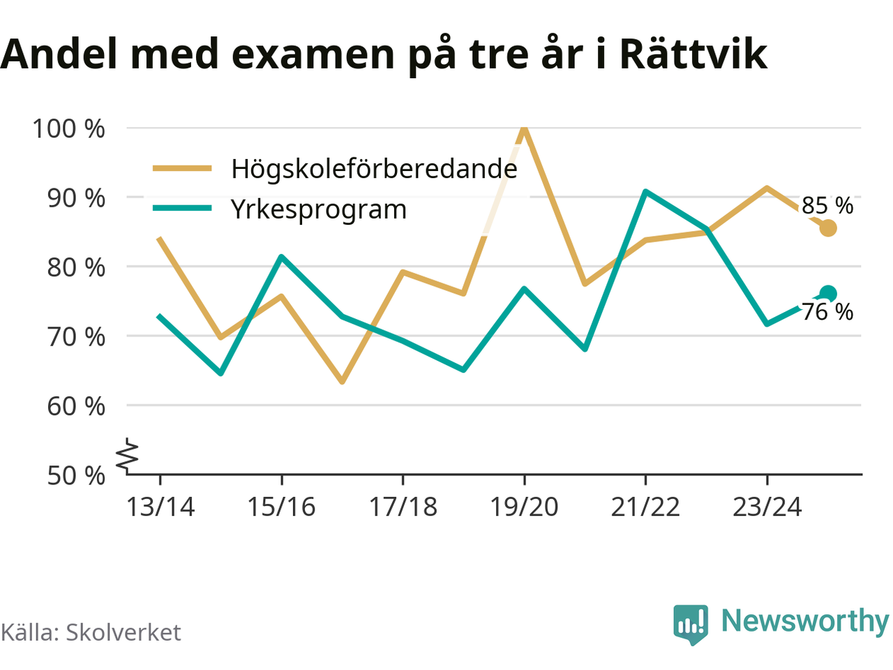 | Karlfeldtgymnasiet | Avesta | 83 % (+8 %) | 76 % (−11 %) |