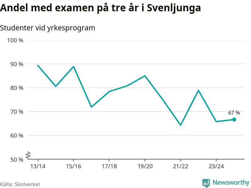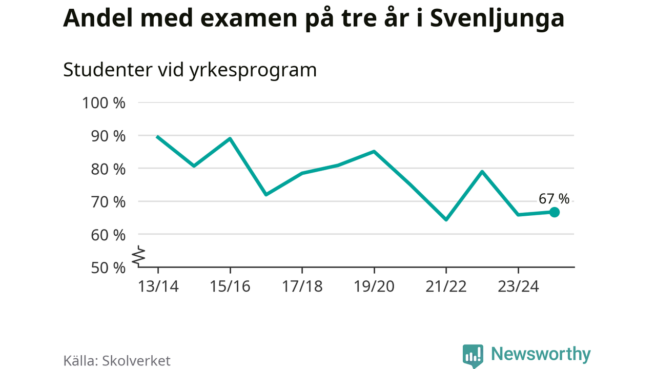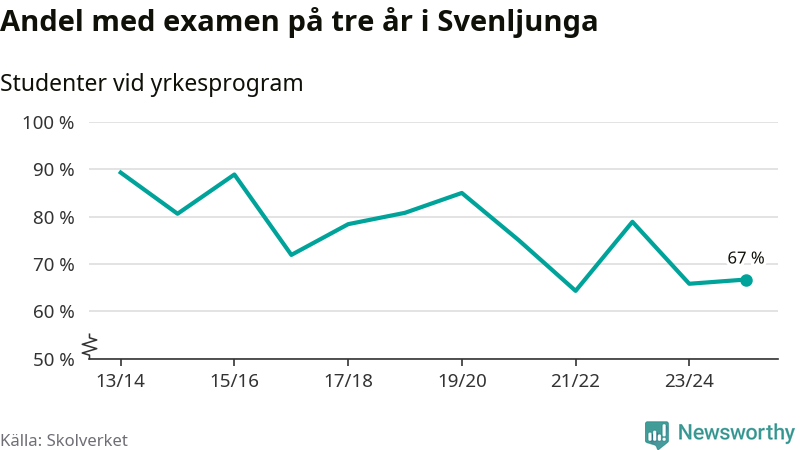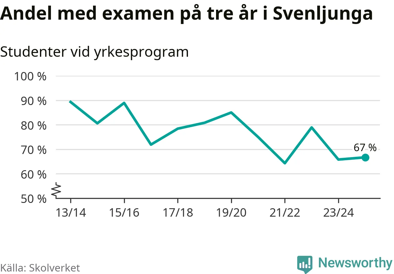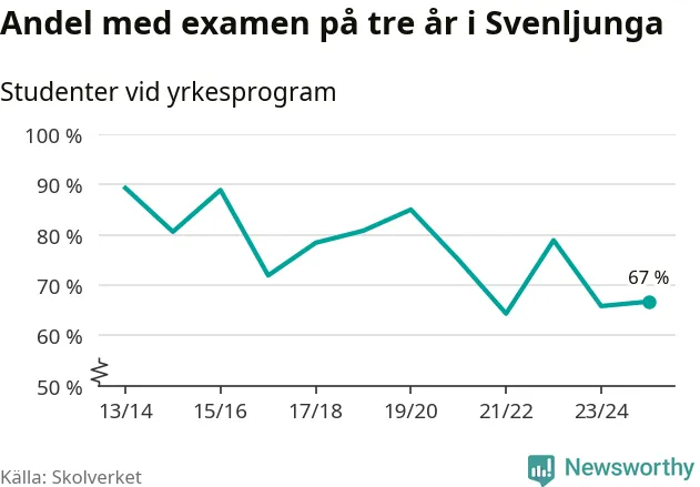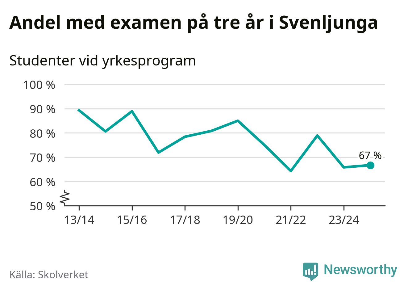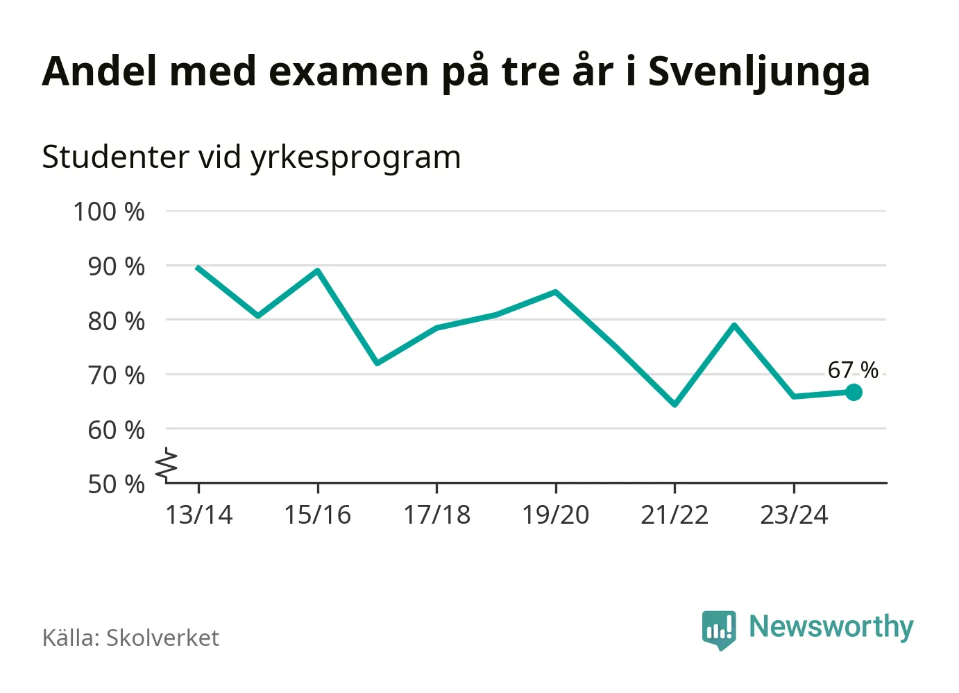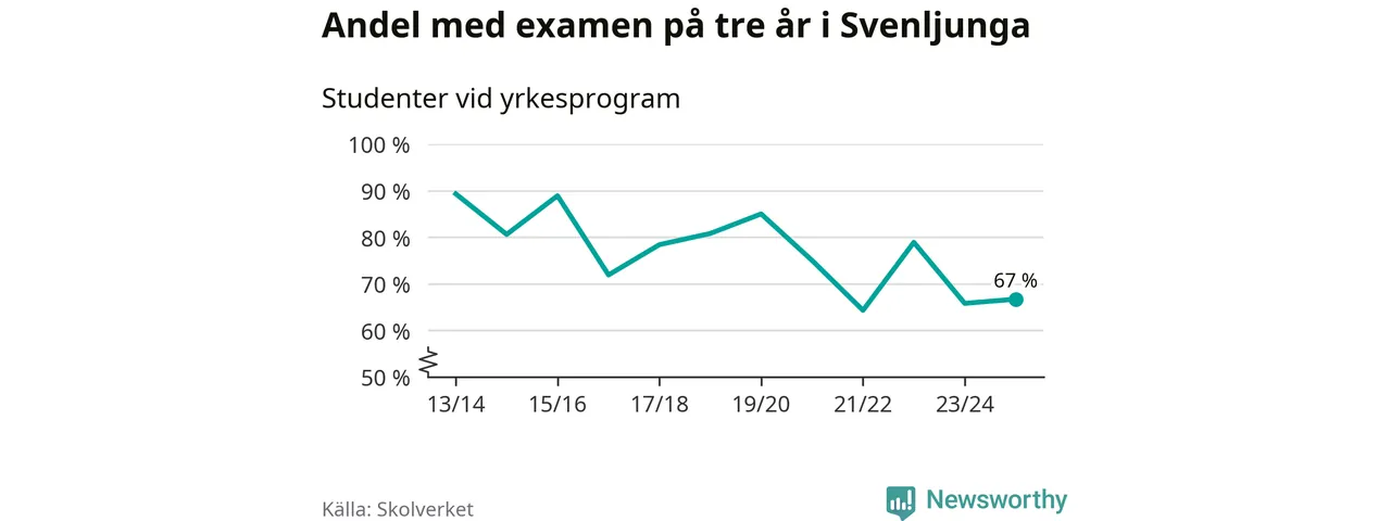 När eleverna på de yrkesförberedande programmen på Naturbruksskolan Svenljunga sprang ut i våras hade 67 procent klarat gymnasieexamen på tre år. Det är en procentenhet fler än året innan.