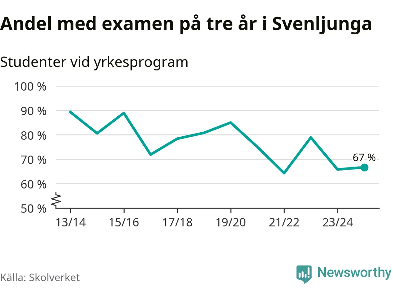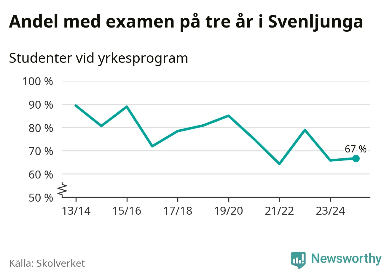 Precis som i riket som helhet ökade andelen som klarade gymnasieexamen på tre år i Svenljunga.