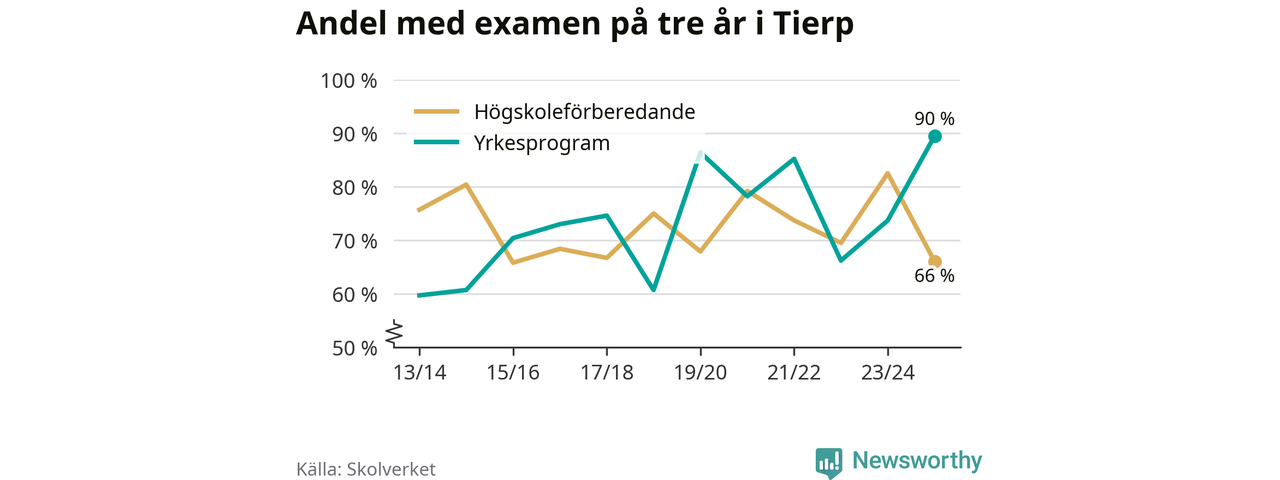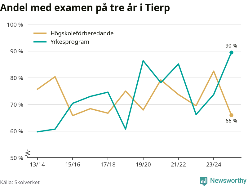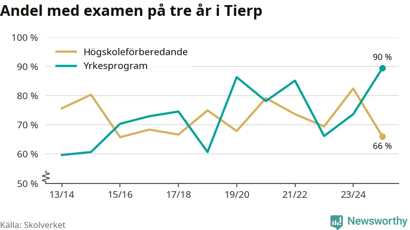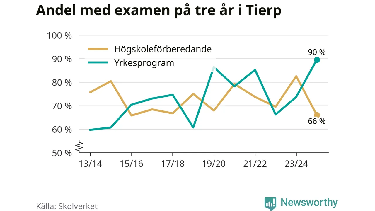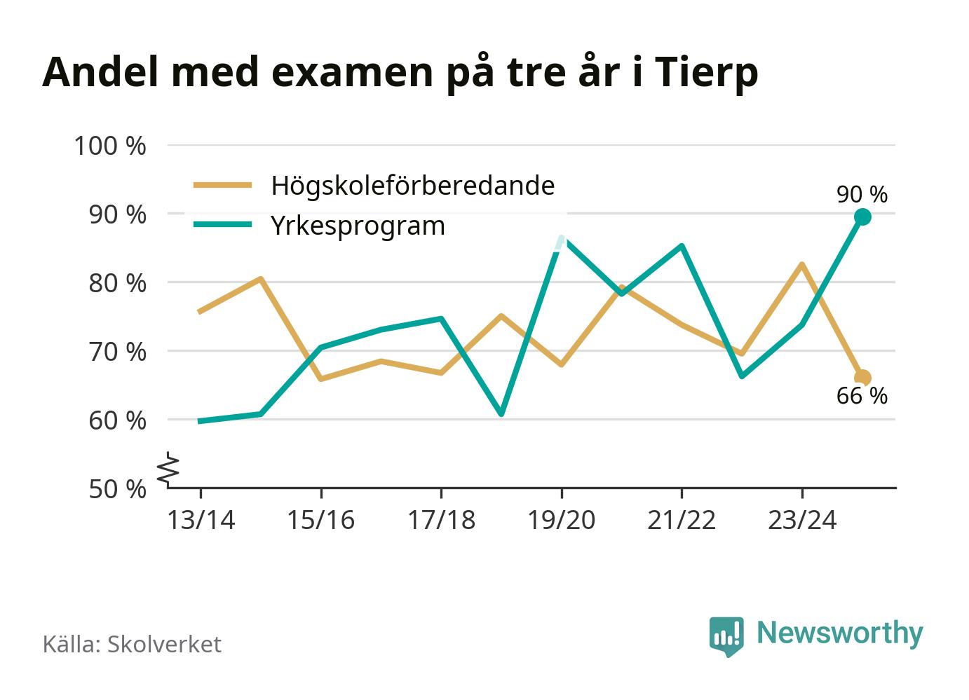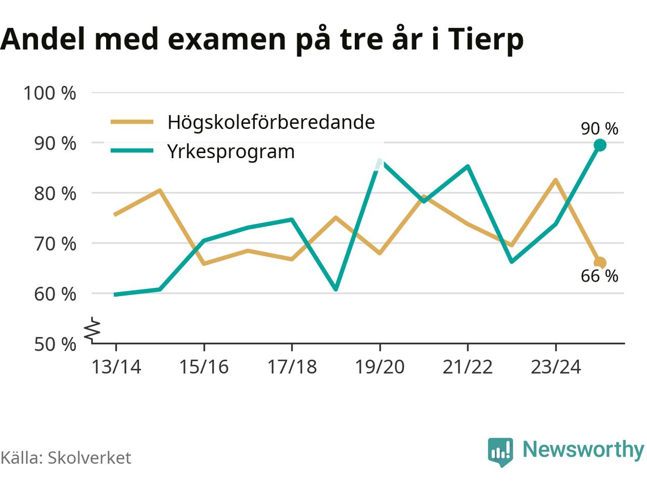 Inte sedan åtminstone läsåret 2013/14 har andelen elever som klarat gymnasieexamen på yrkesprogram varit högre i Tierp. Det visar Skolverkets senaste statistik.