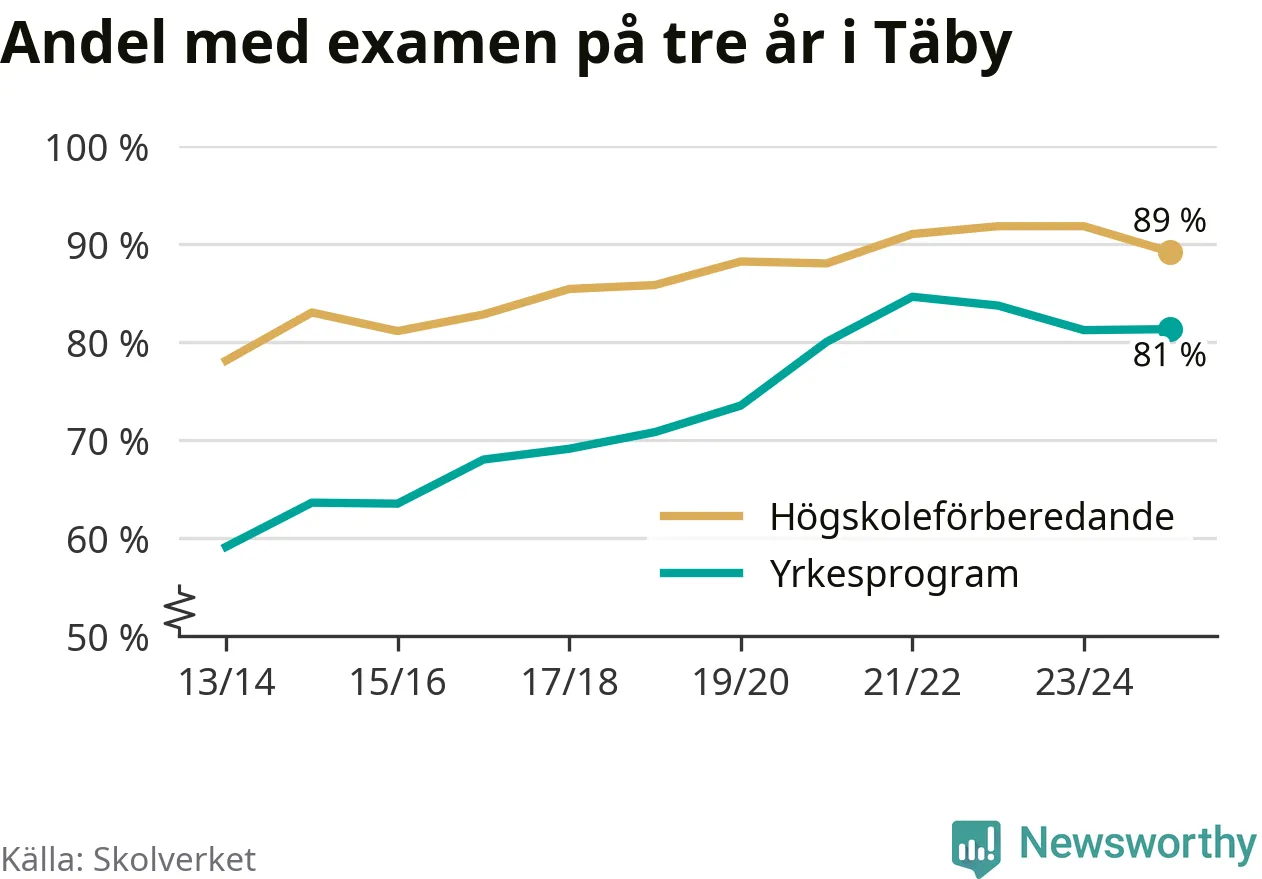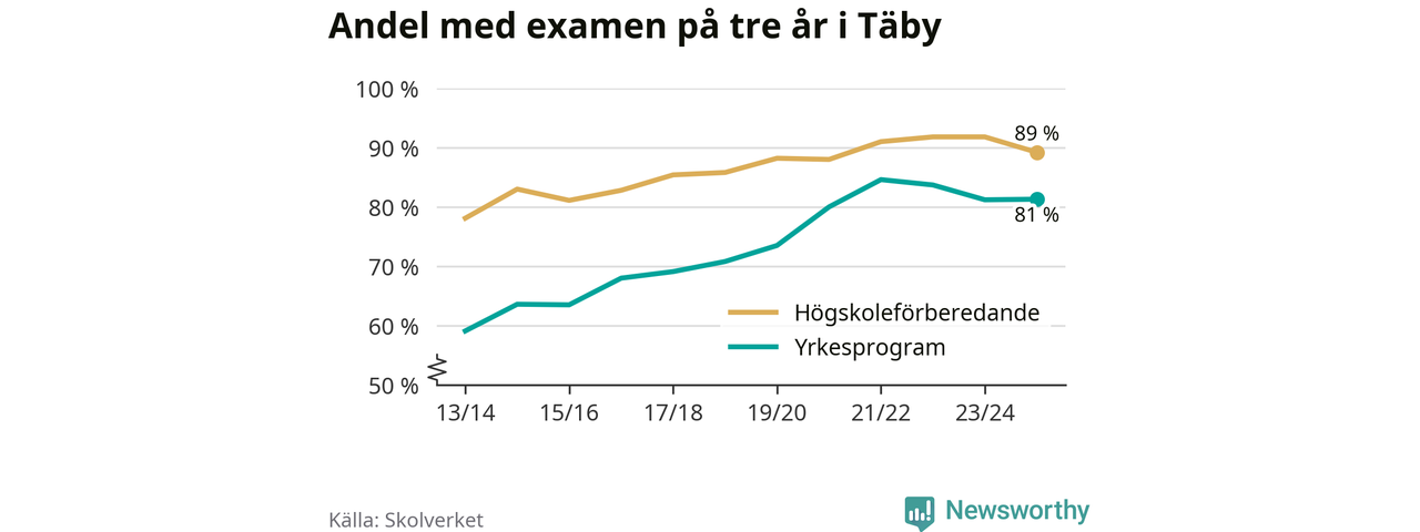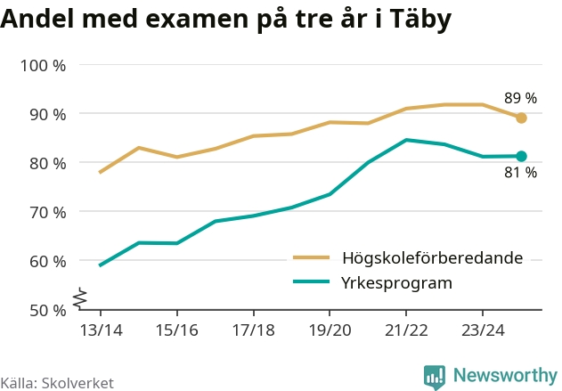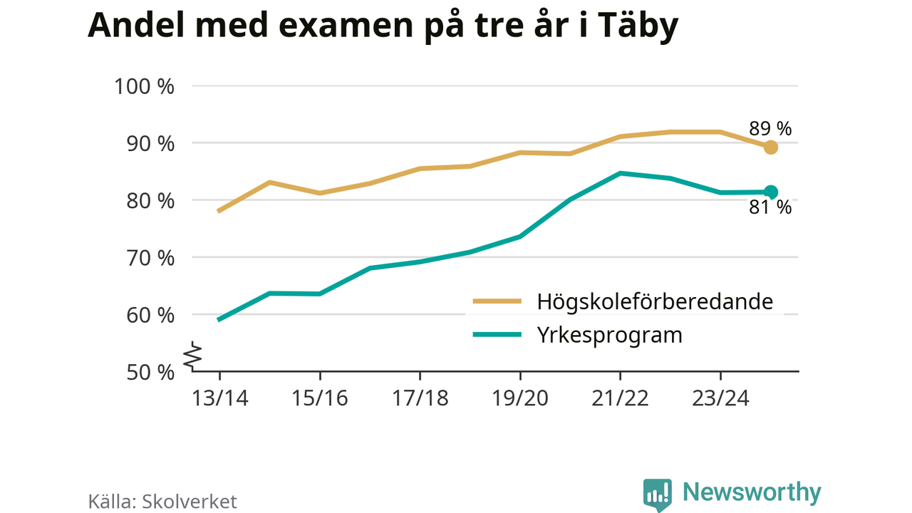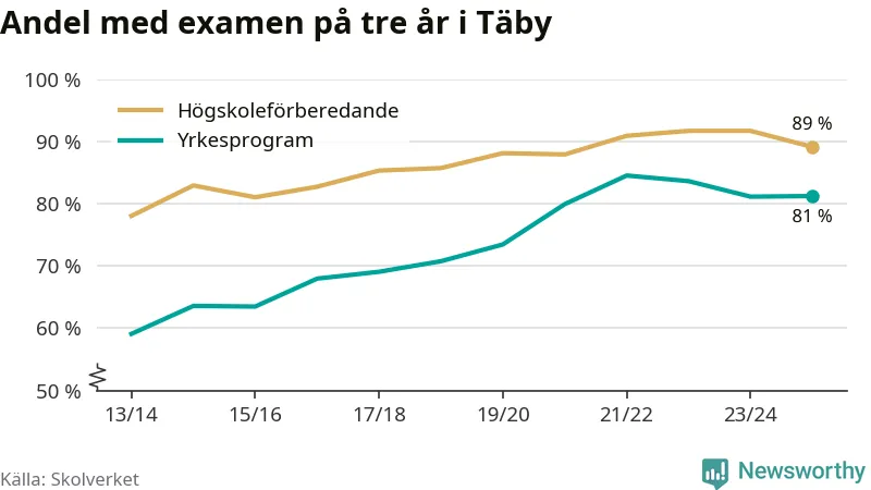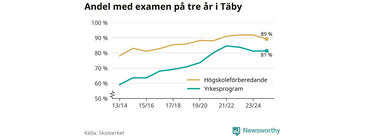 | Täby Yrkesgymnasium | Täby | 84 % (+10 %) | 82 % (−11 %) |