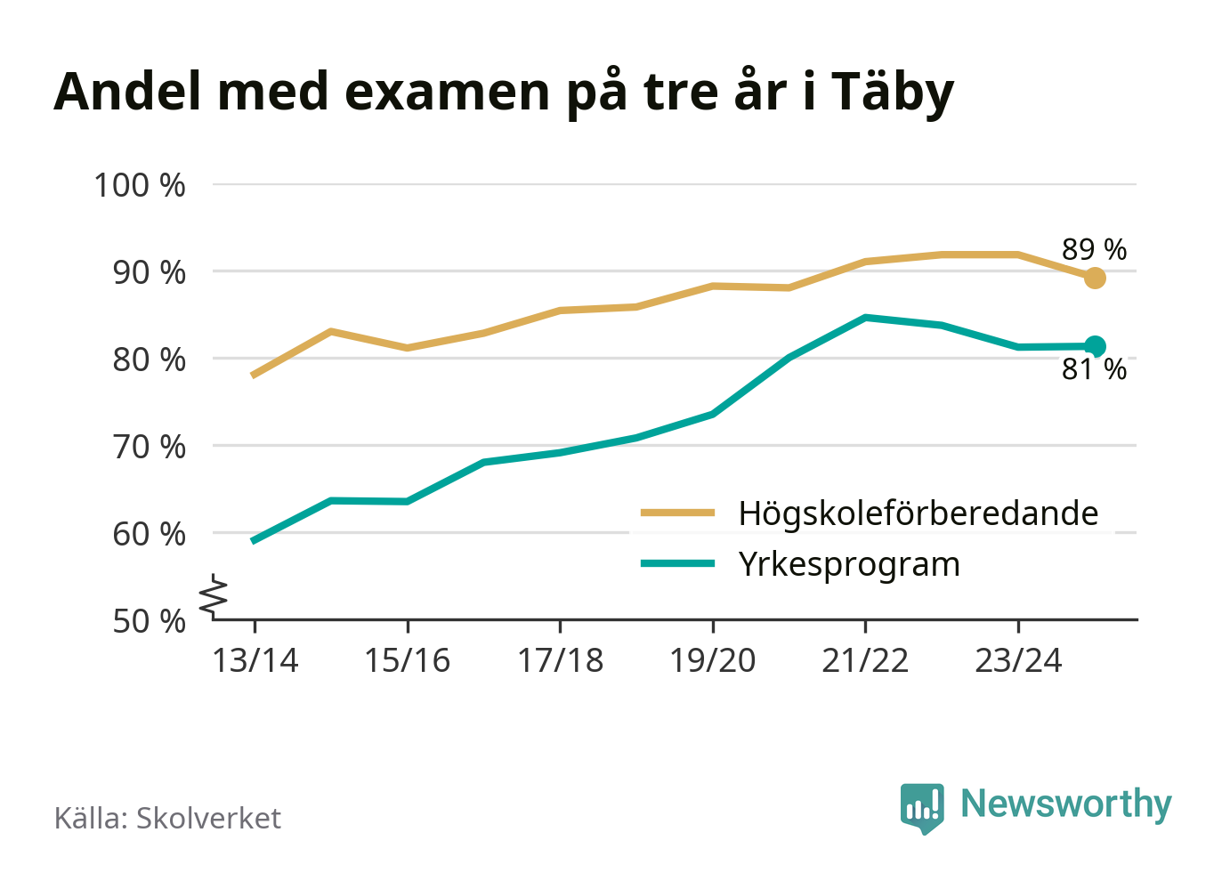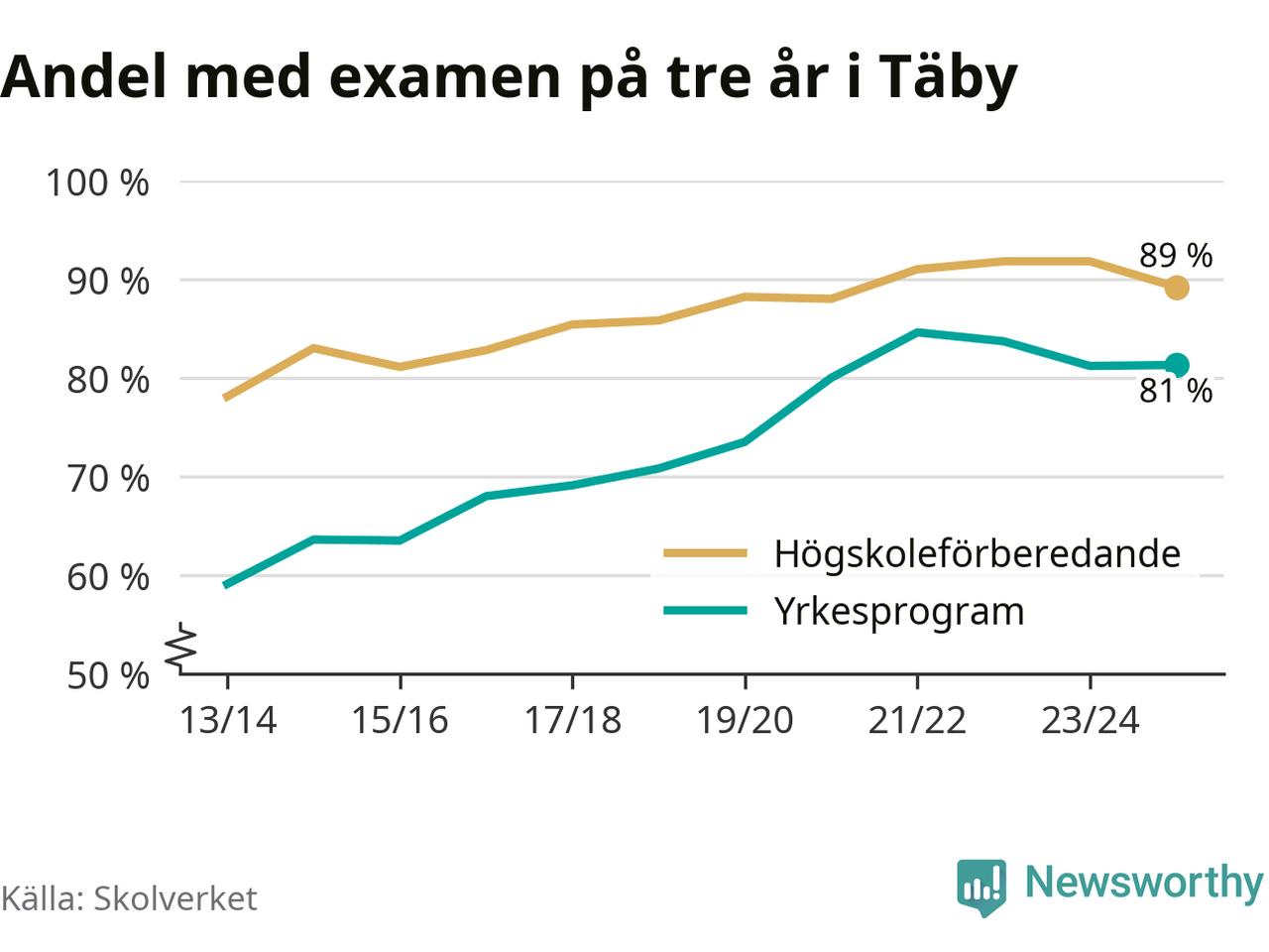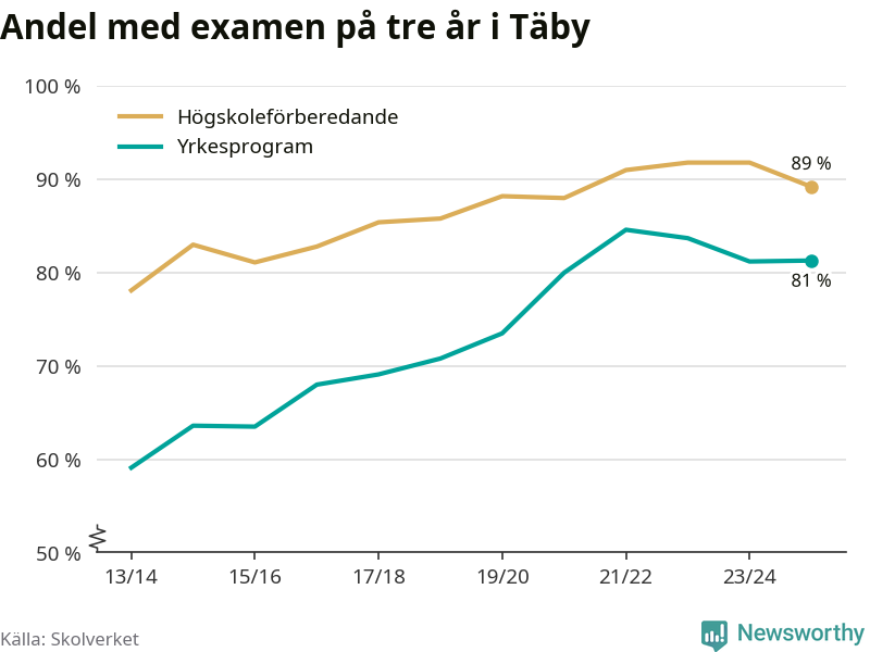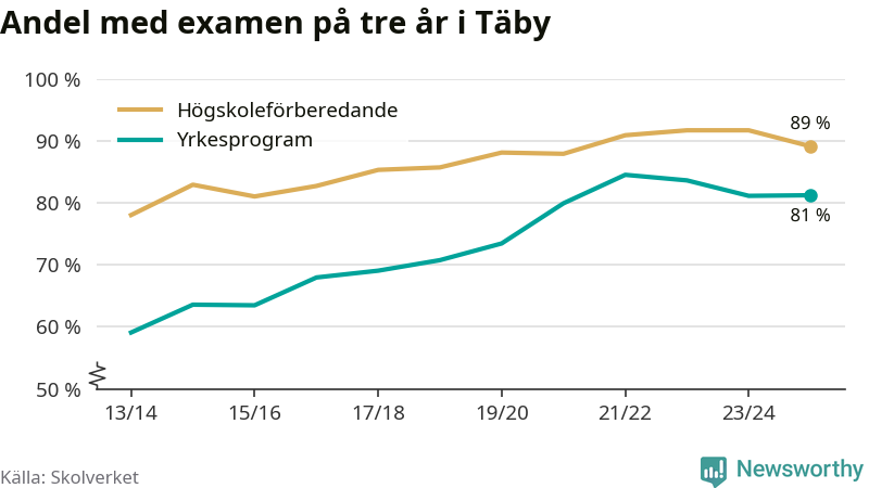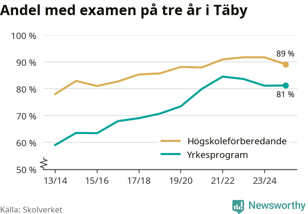 | Täby Yrkesgymnasium | Täby | 84 % (+10 %) | 82 % (−11 %) |