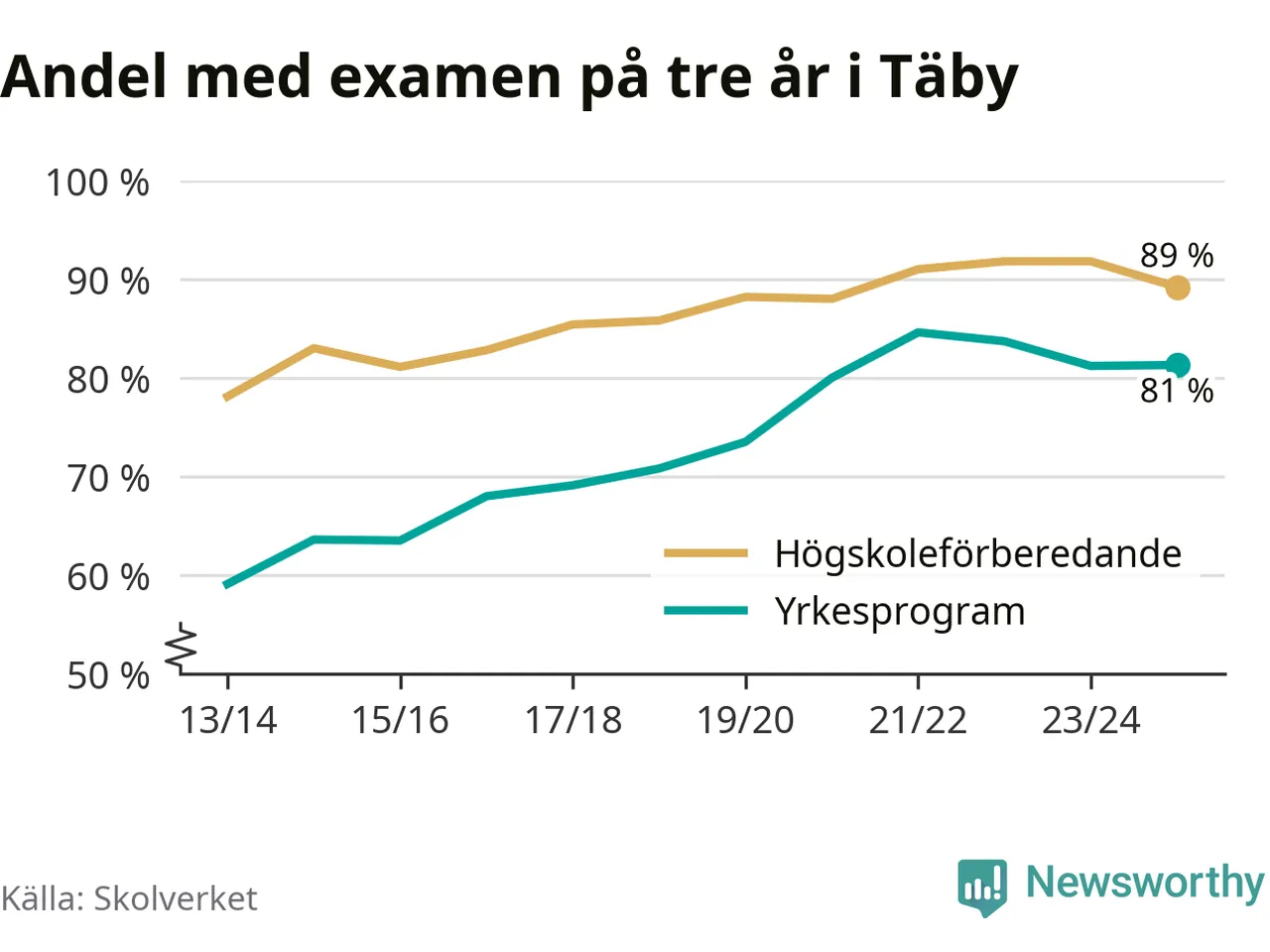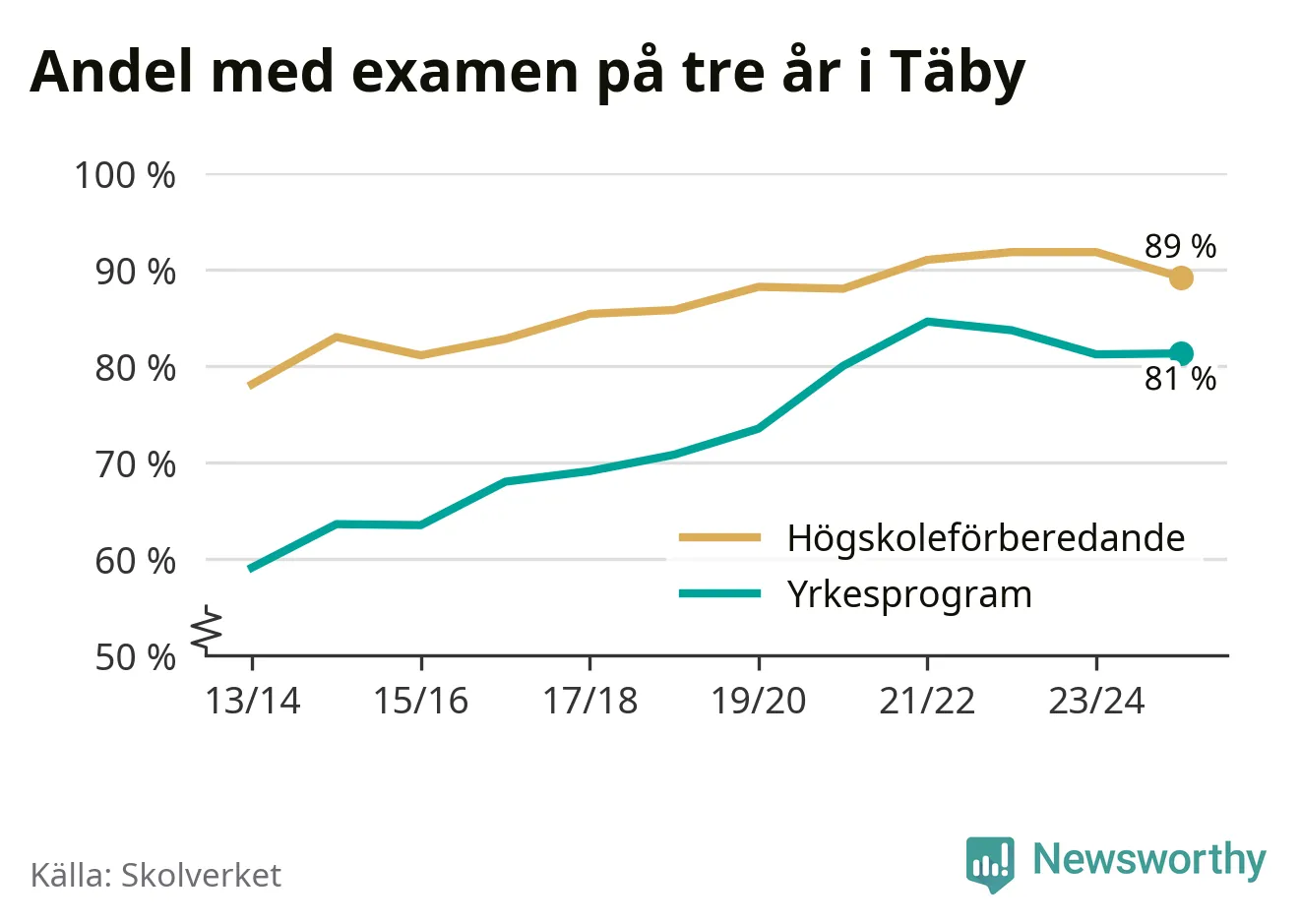 | Vackstanäsgymnasiet | Södertälje | 75 % (−13 %) | 89 % (+9 %) |