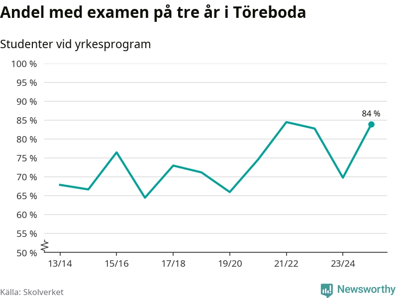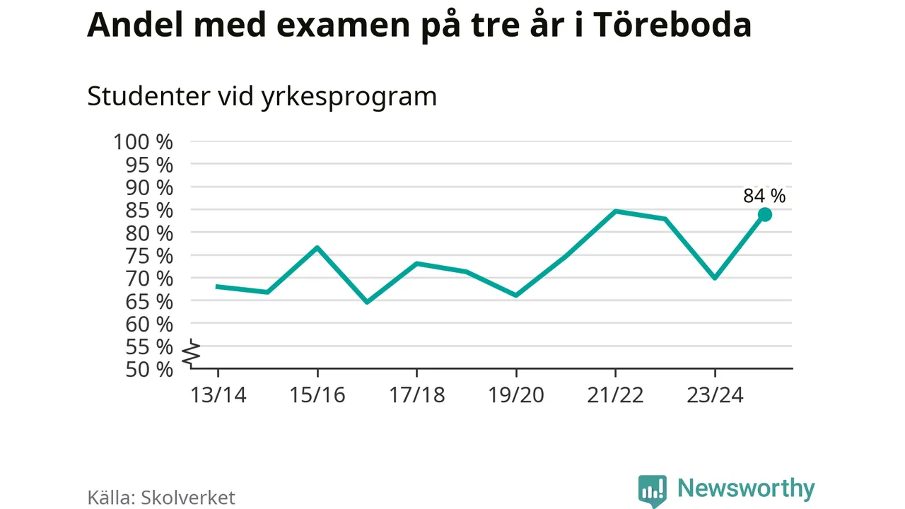 Precis som i riket som helhet ökade andelen som klarade gymnasieexamen på tre år i Töreboda.