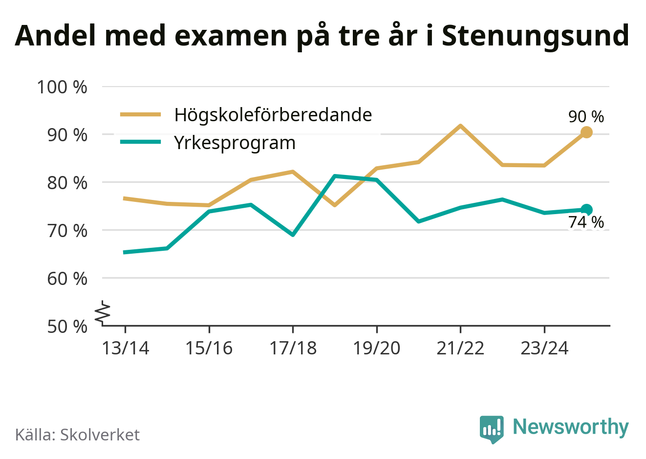 | Nösnäsgymnasiet 4 | Stenungsund | 96 % (+9 %) | 86 % (−6 %) |