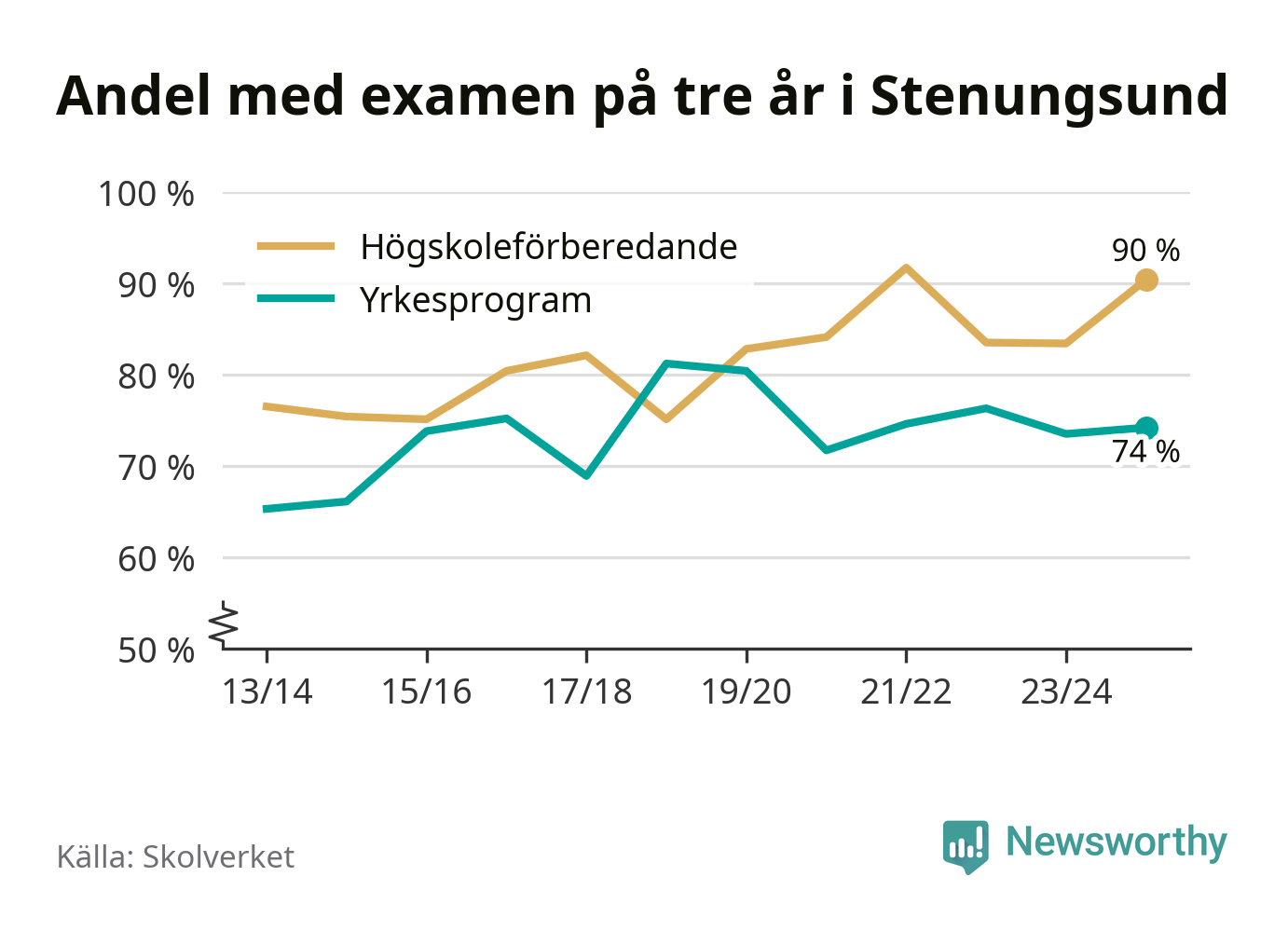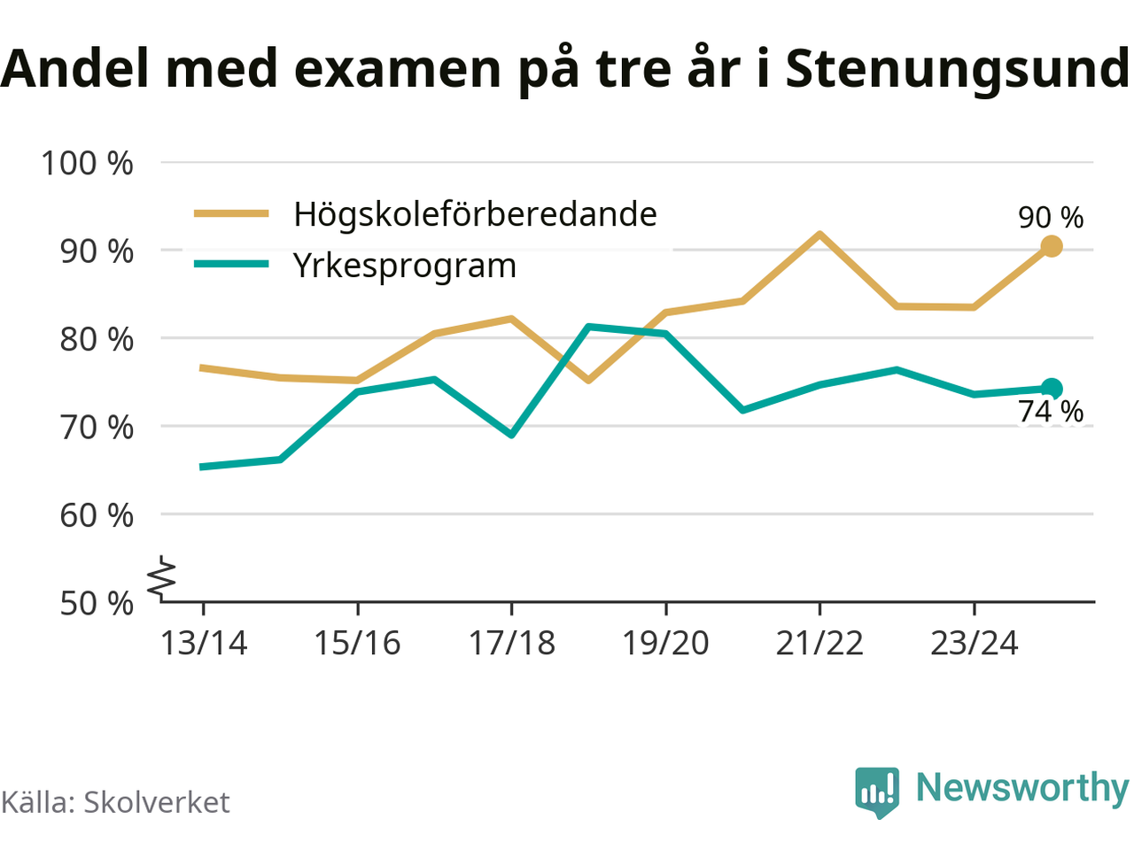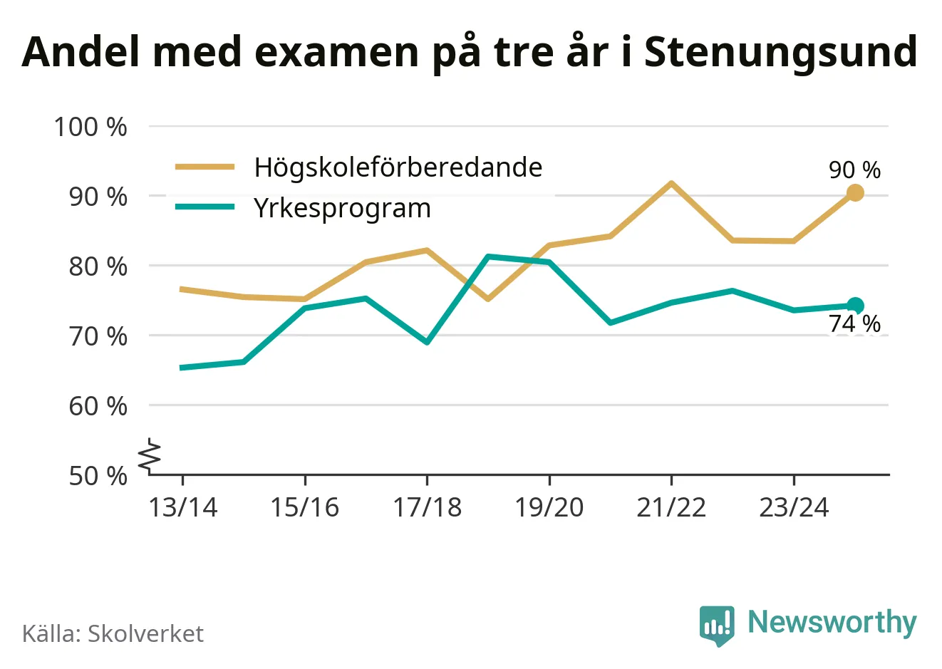 | Nösnäsgymnasiet 3 | Stenungsund | 90 % (+3 %) | 89 % (+4 %) |