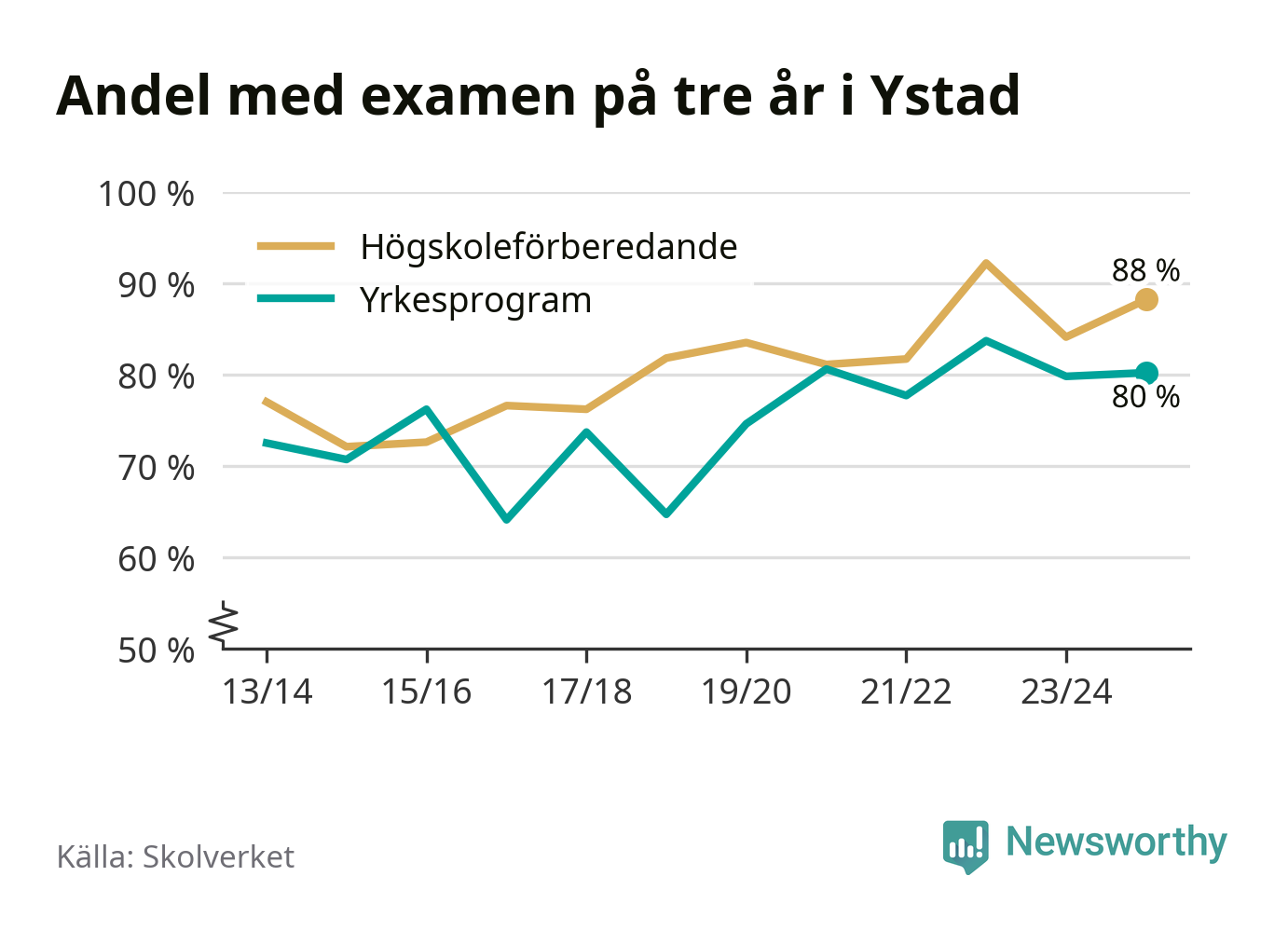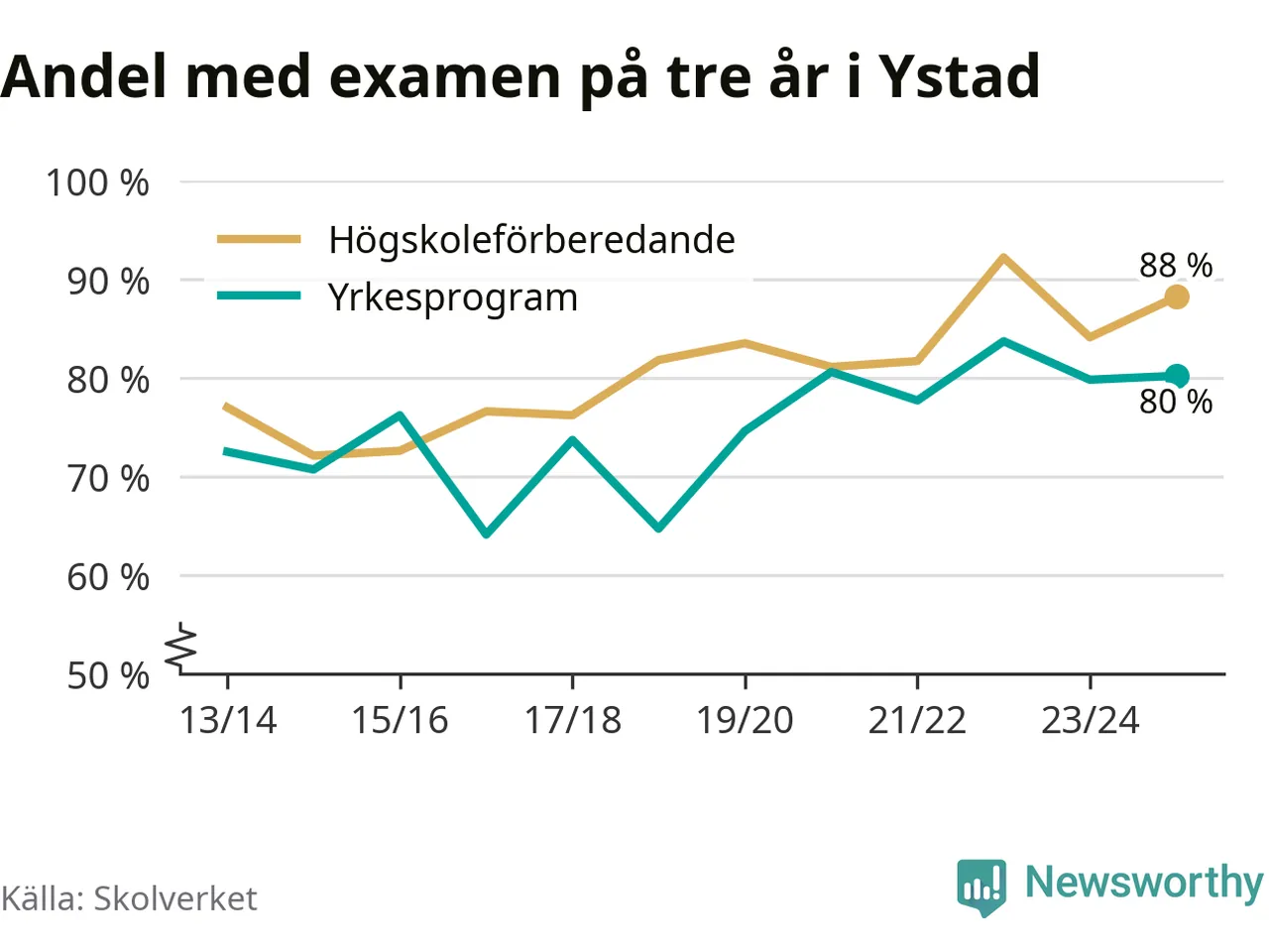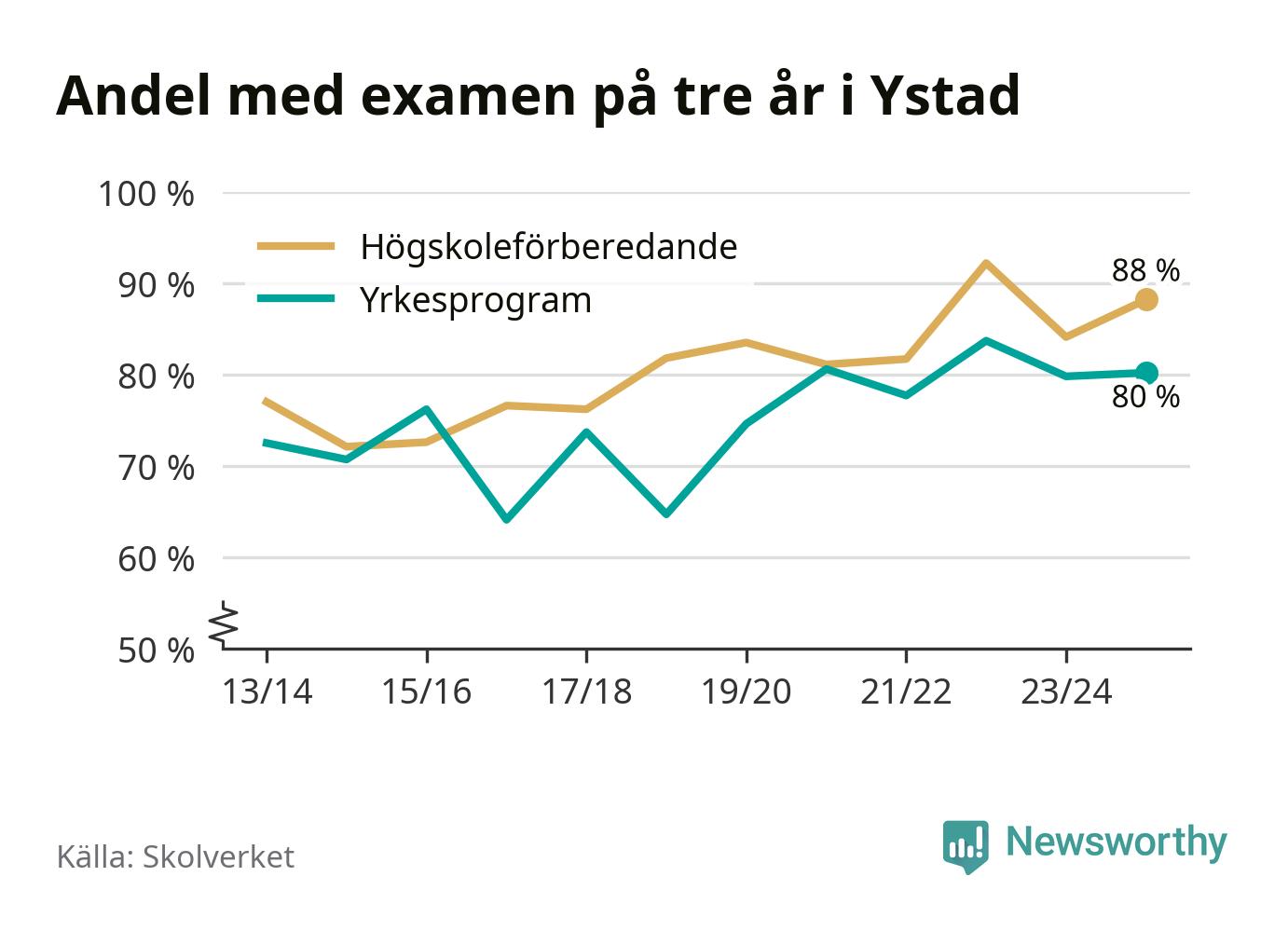 Ystad Gymnasium, område 3Ystad87 % (+9 %)84 % (−11 %)