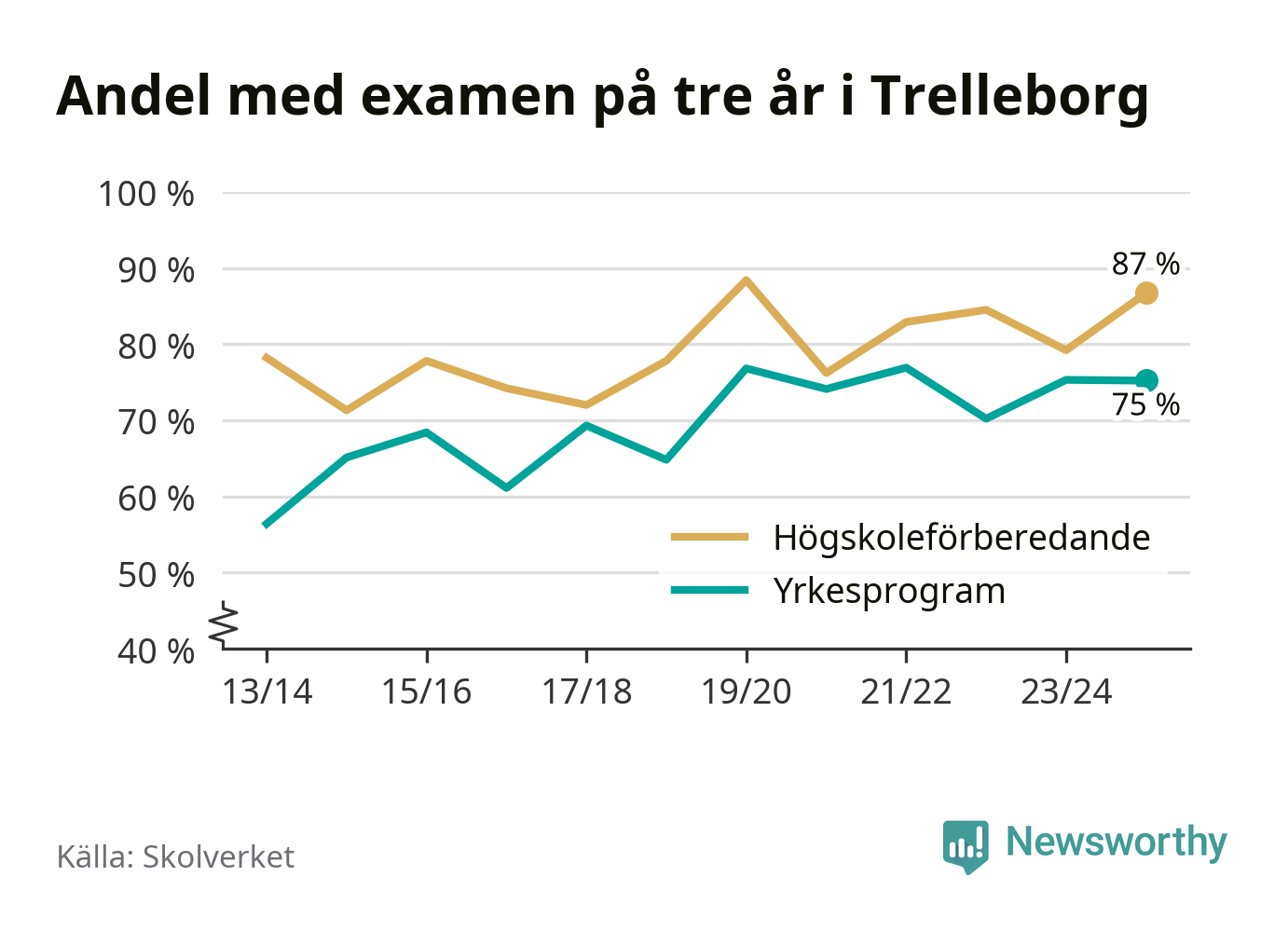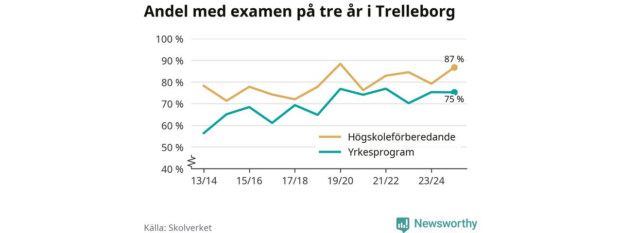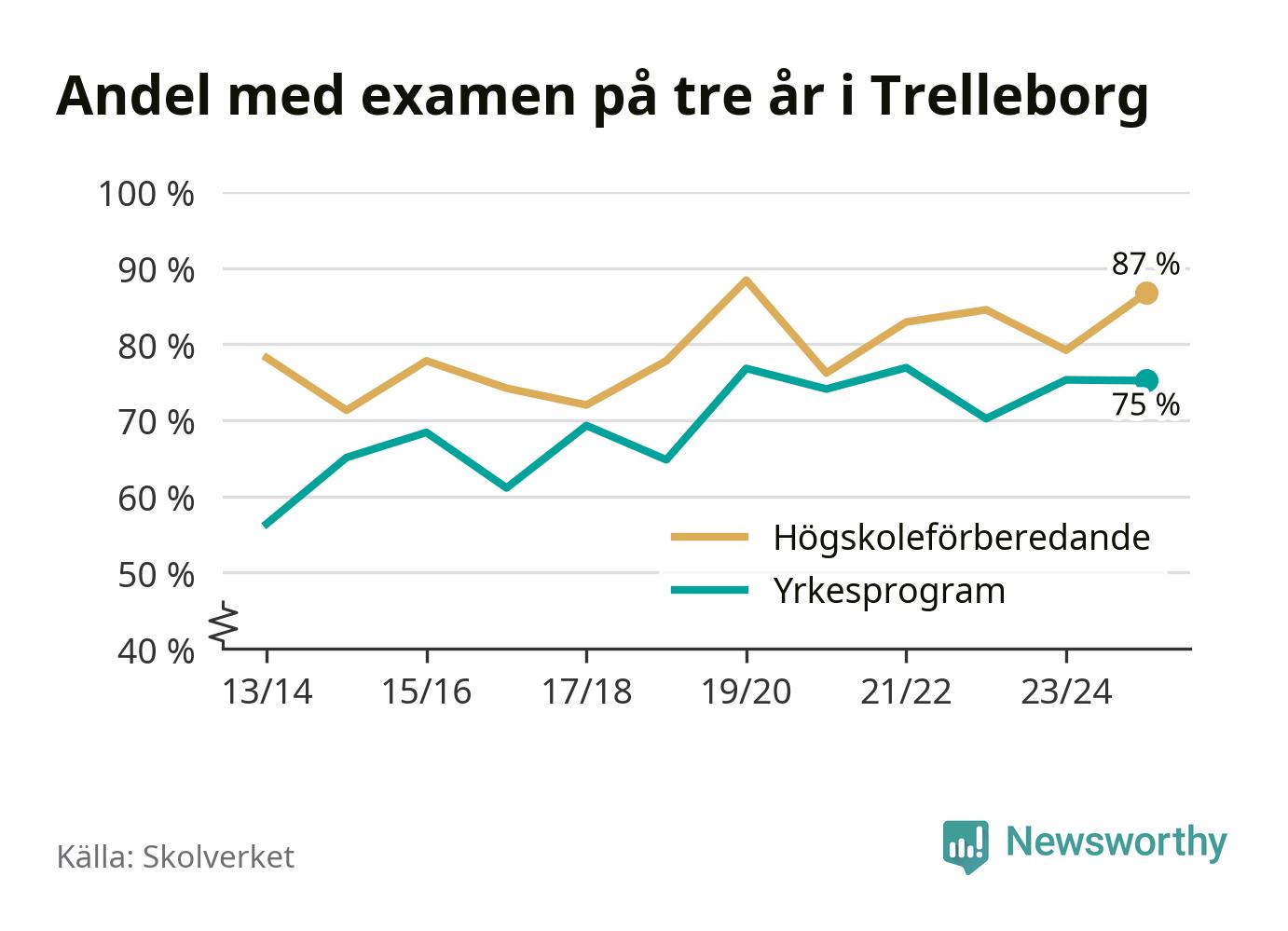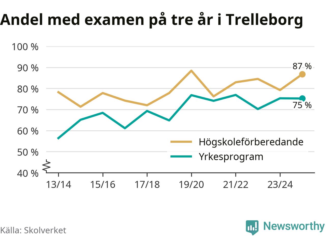 Precis som i riket som helhet ökade andelen i Trelleborg som klarade gymnasieexamen på tre år. Här är resultaten – skola för skola.