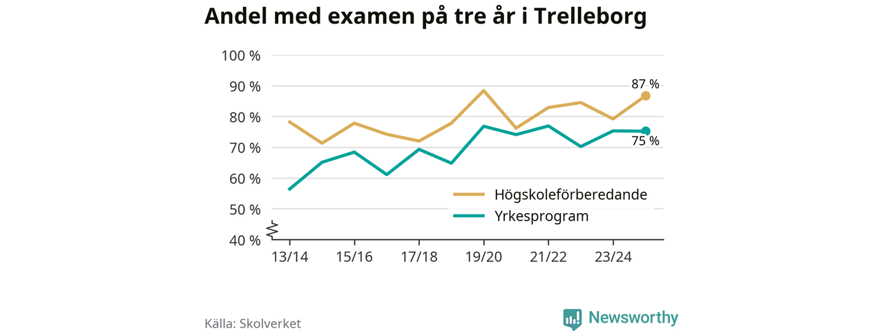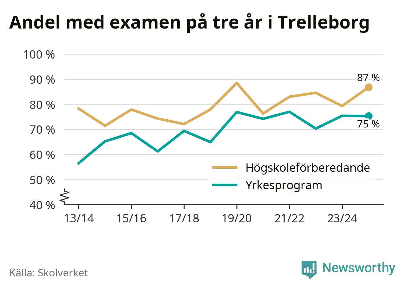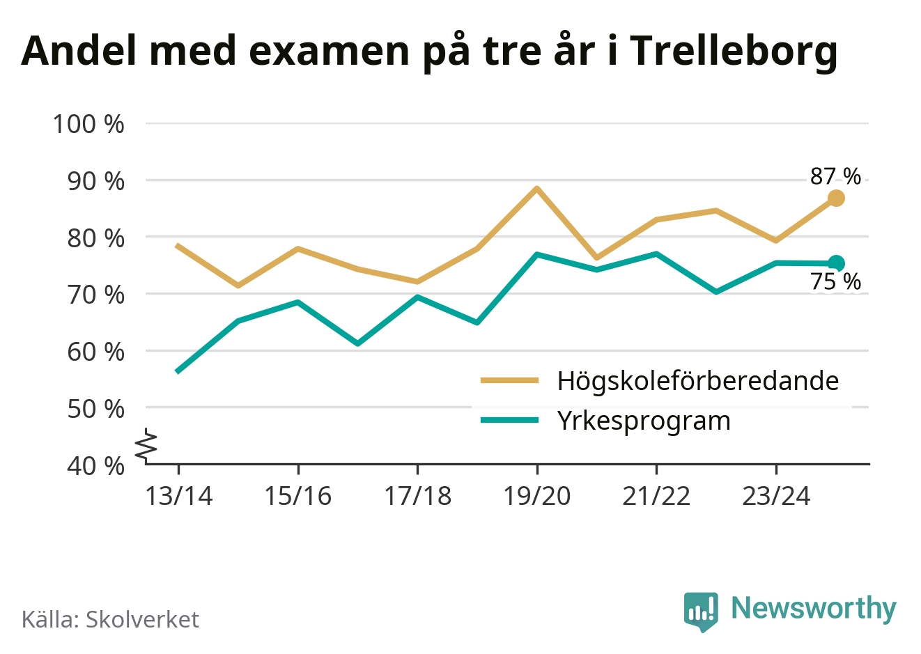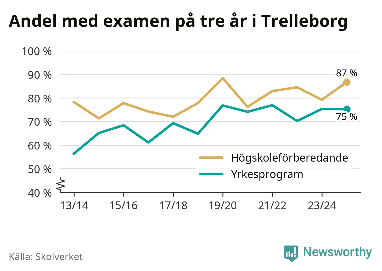 Precis som i riket som helhet ökade andelen i Trelleborg som klarade gymnasieexamen på tre år. Här är resultaten – skola för skola.