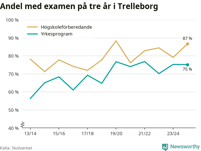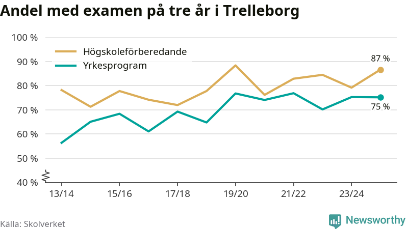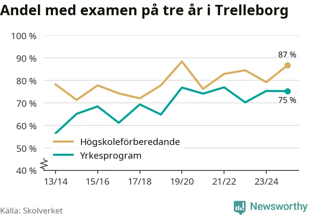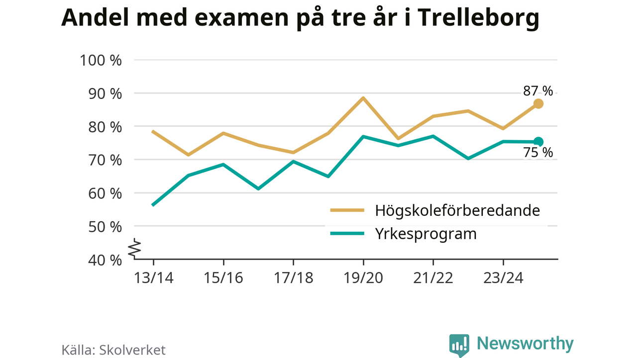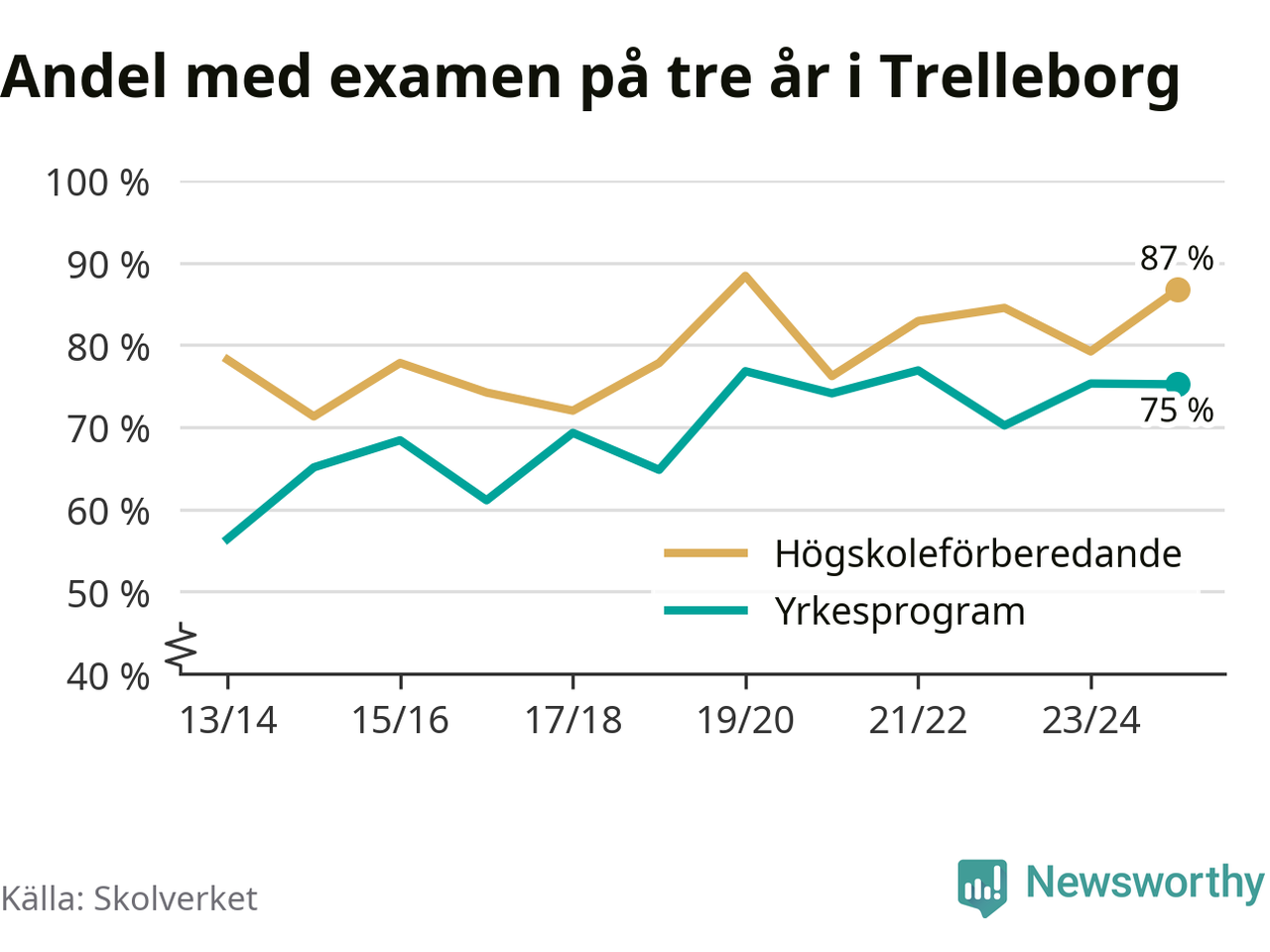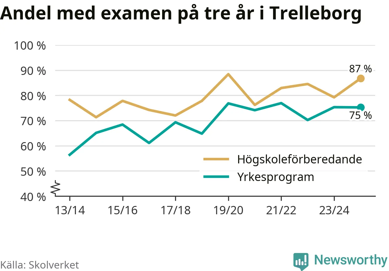 Precis som i riket som helhet ökade andelen i Trelleborg som klarade gymnasieexamen på tre år. Här är resultaten – skola för skola.