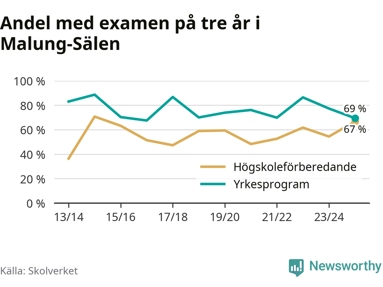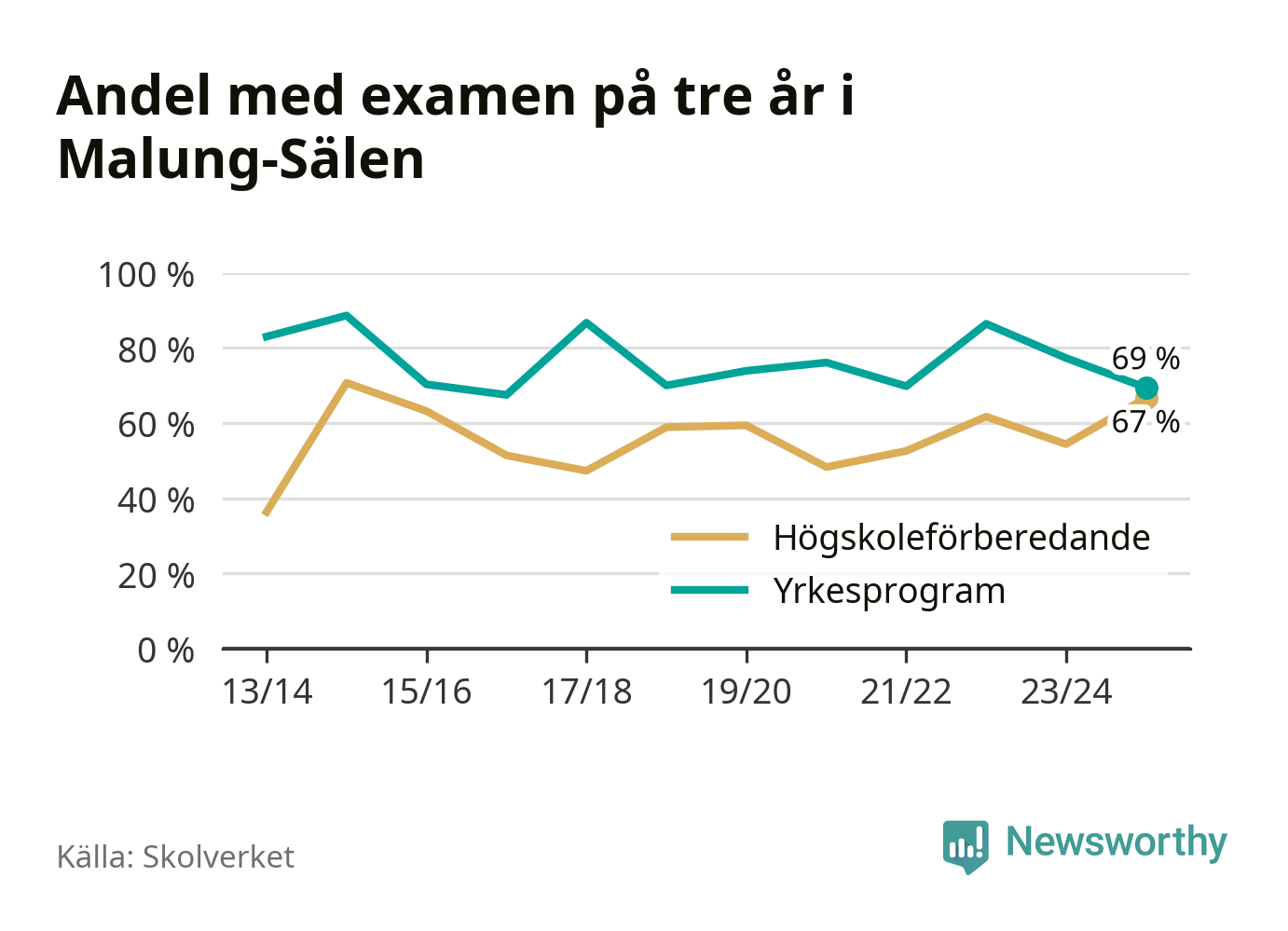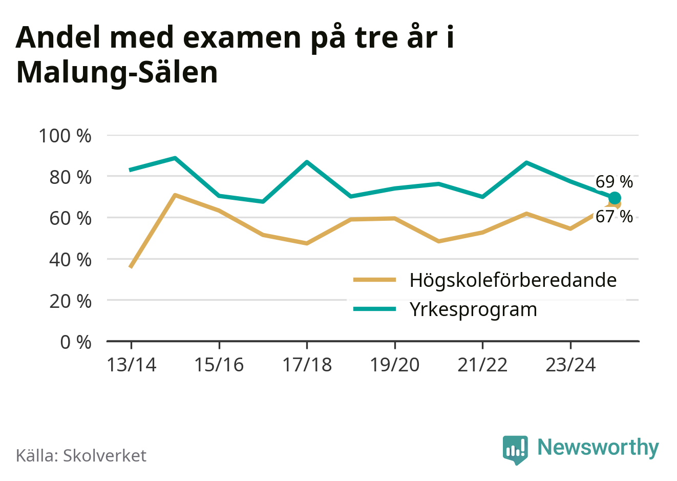 | Malung-Sälens gymnasieskola | Malung-Sälen | 67 % (+12 %) | 78 % (−5 %) |