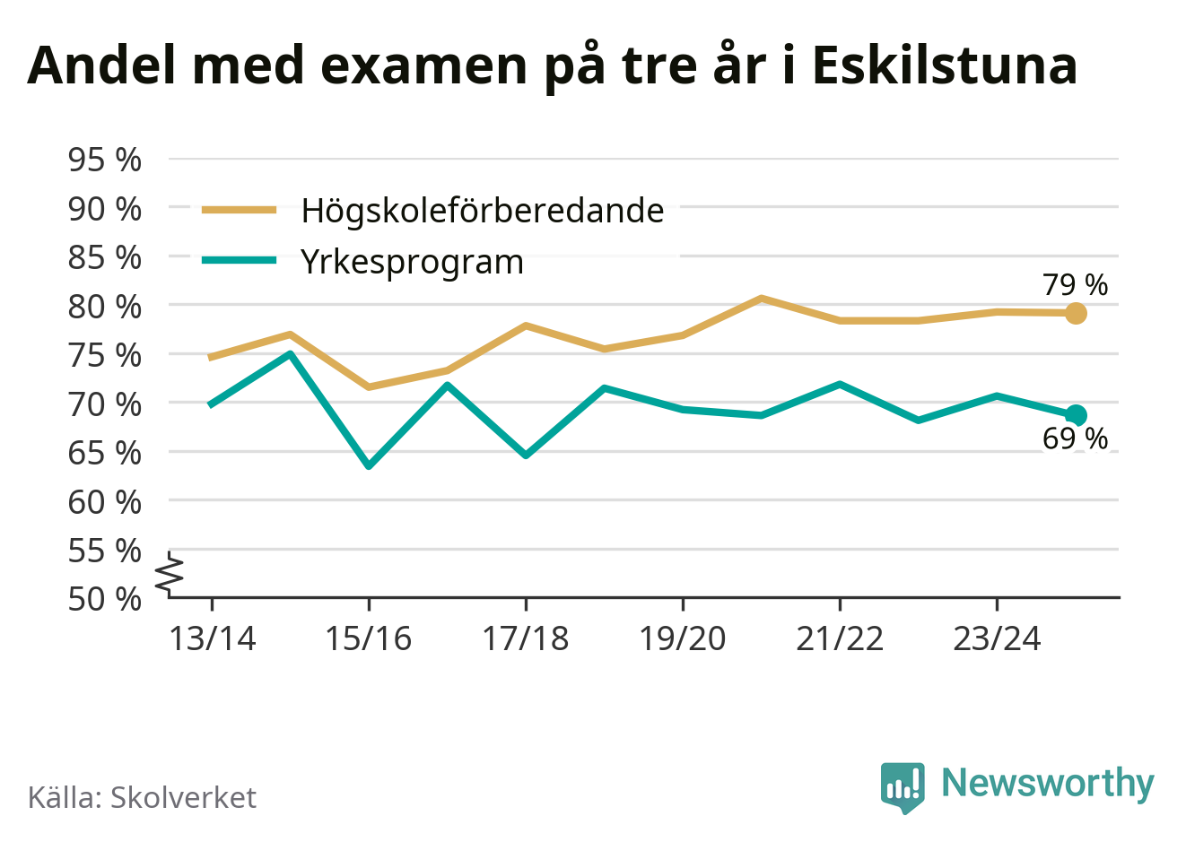 | Zetterbergsgymnasiet | Eskilstuna | 76 % (+2 %) | 75 % (–) |