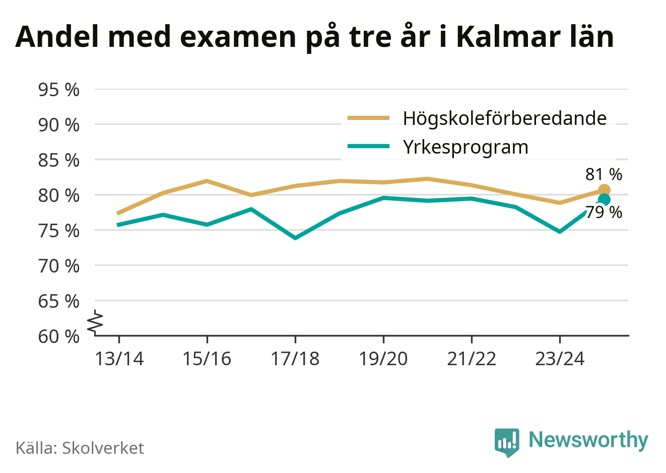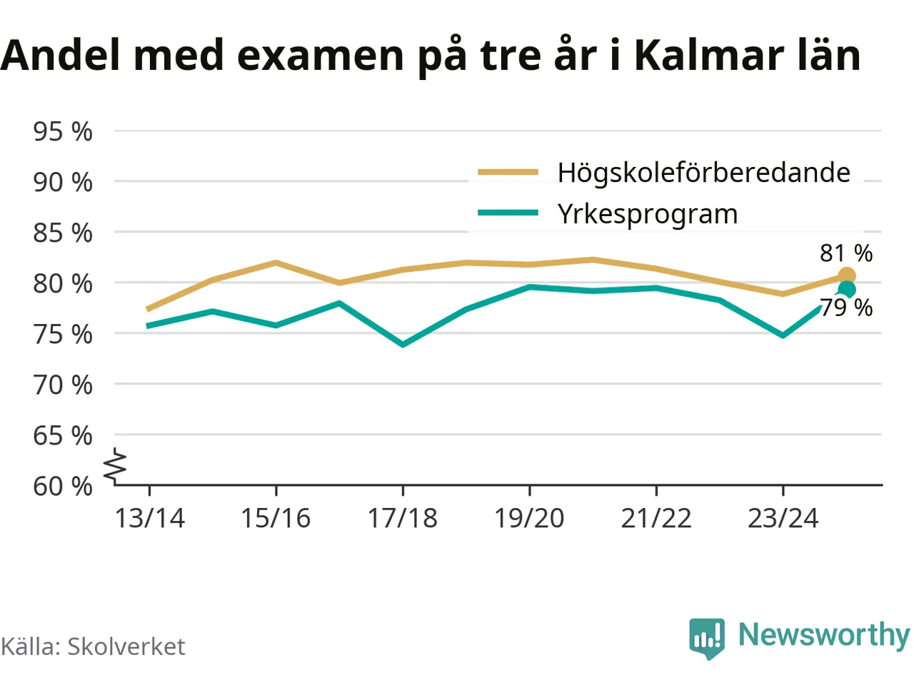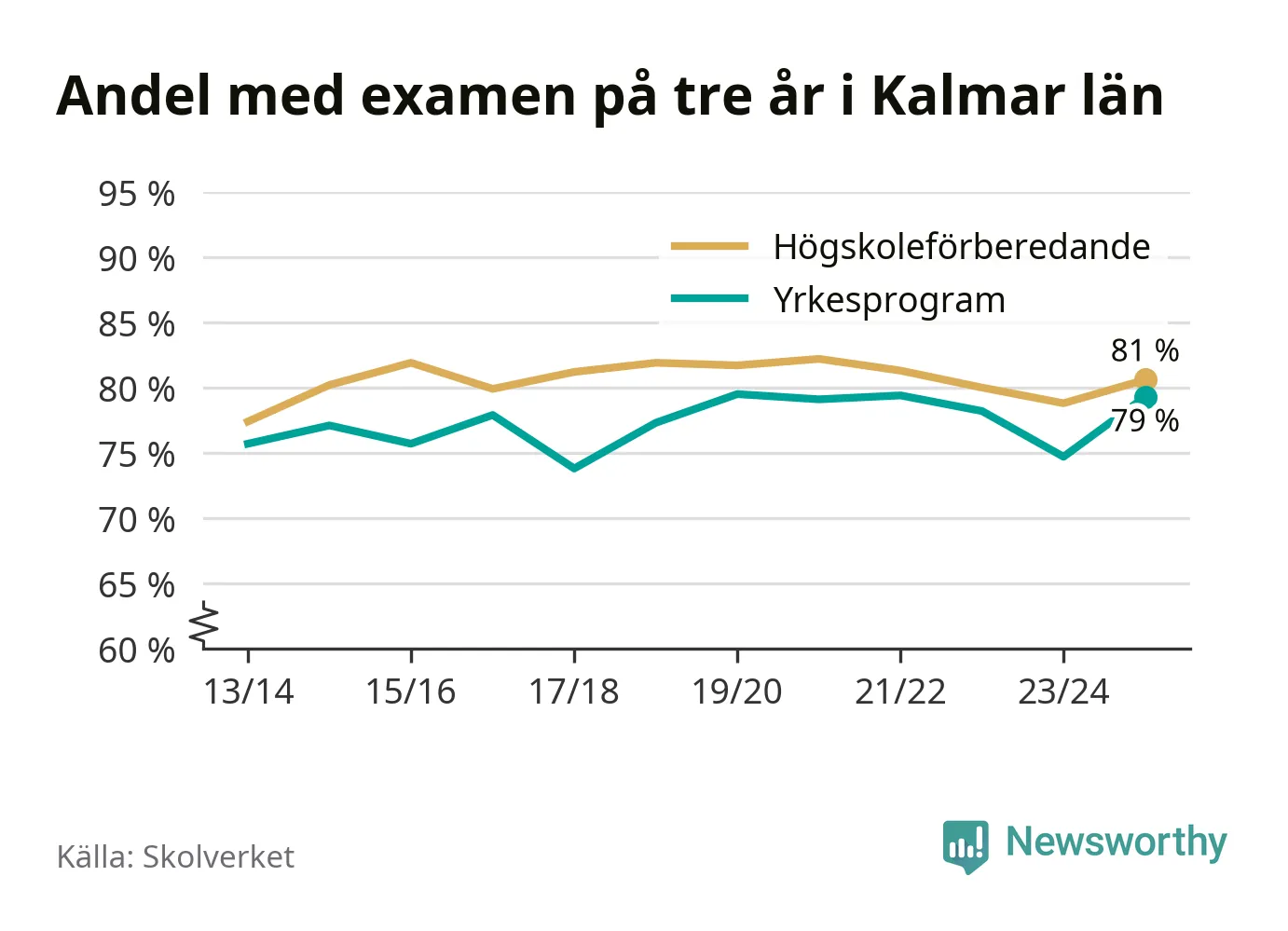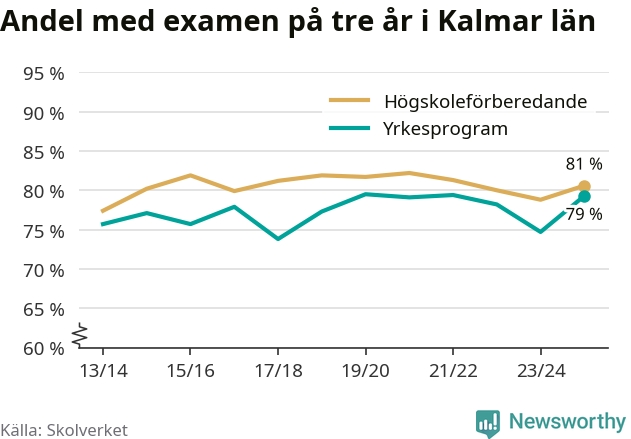 Andel elever med gymnasieexamen på högskoleförberedande program i Kalmar län 2024/25