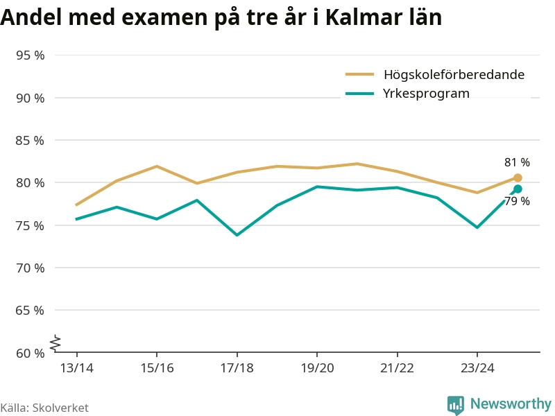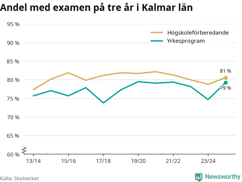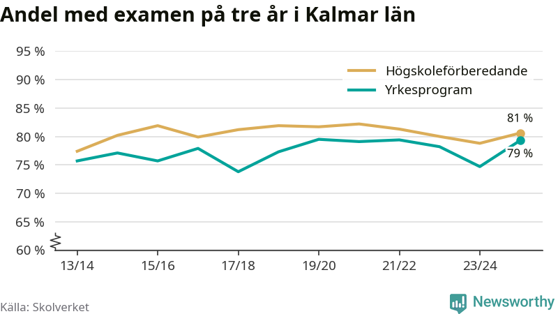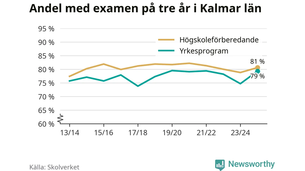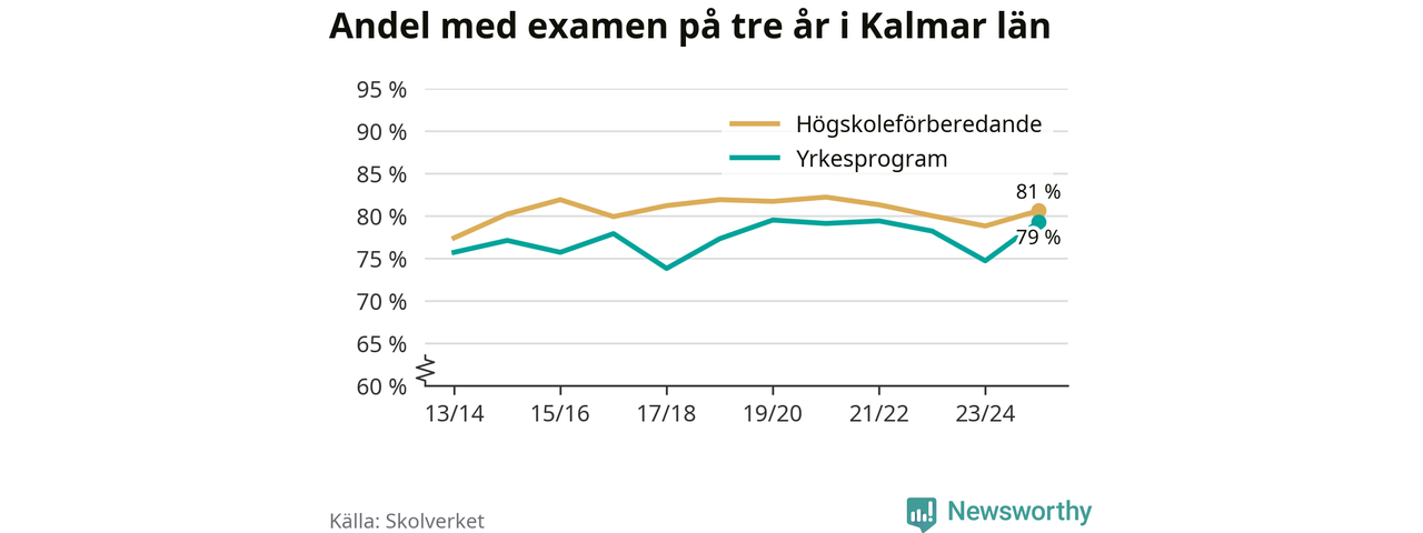 Andel elever med gymnasieexamen på högskoleförberedande program i Kalmar län 2024/25