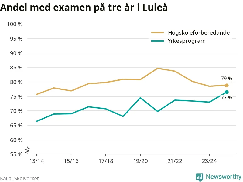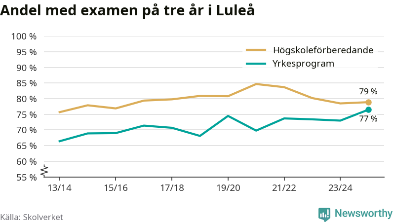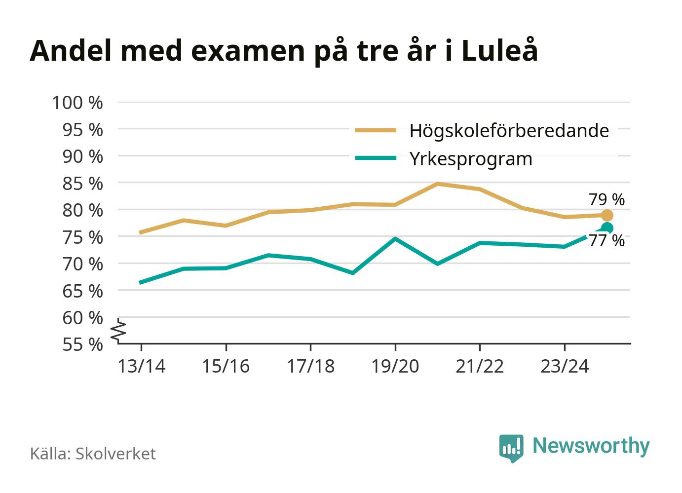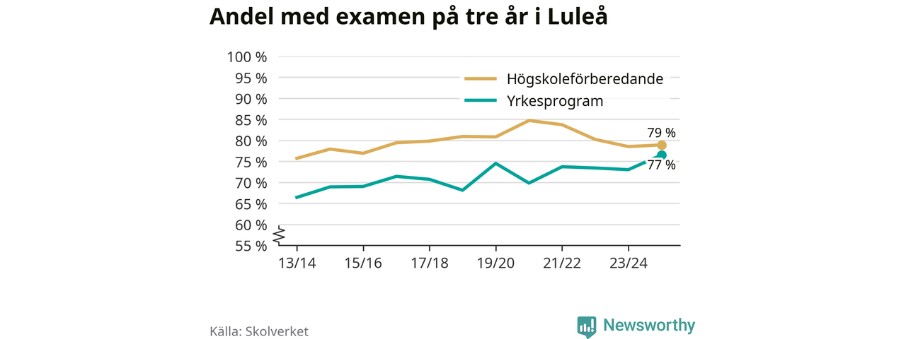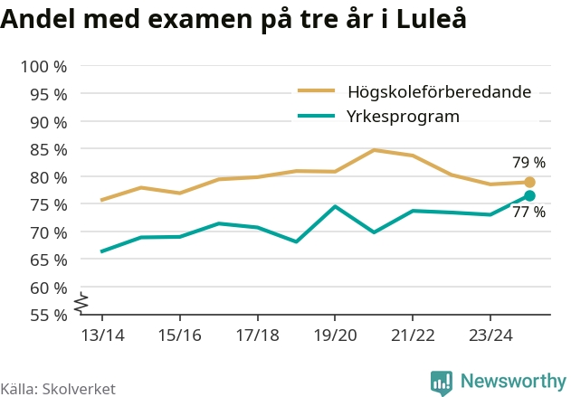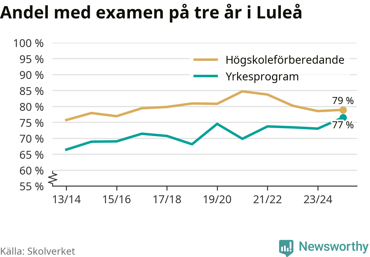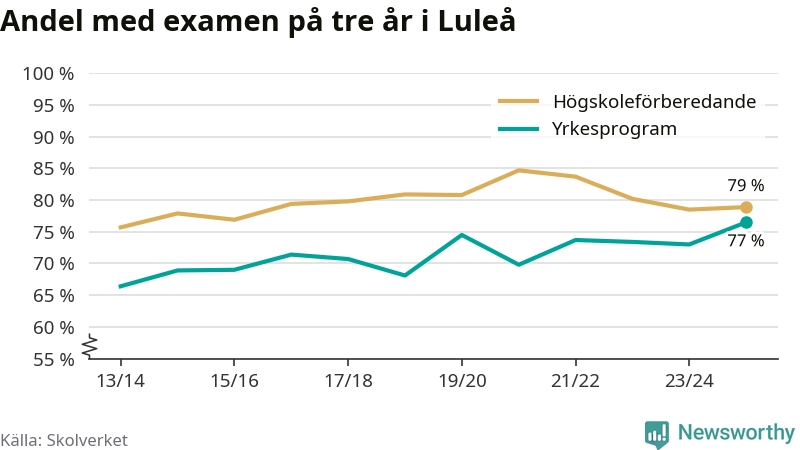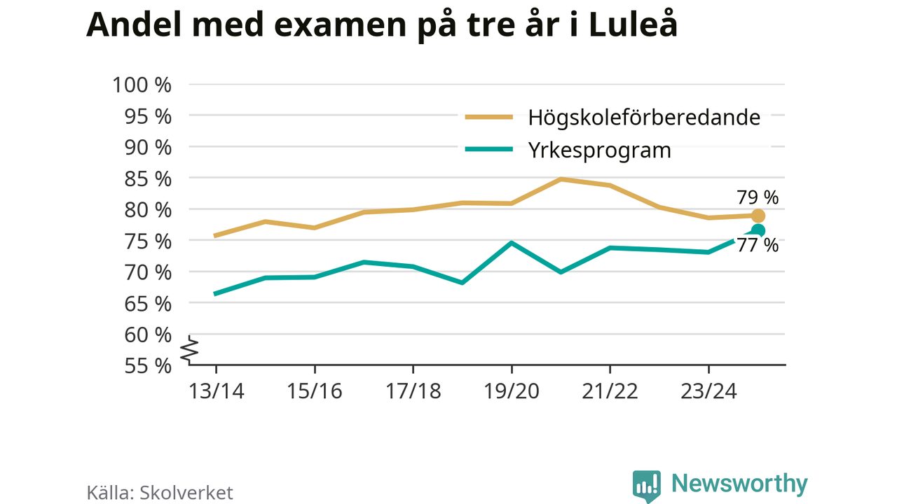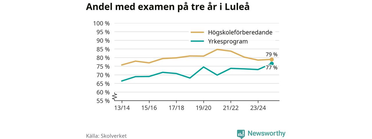 När eleverna på de yrkesförberedande programmen i Luleå kommun sprang ut i våras hade 77 procent klarat gymnasieexamen på tre år. Det är tre procentenheter fler än året innan och den högsta andelen sedan åtminstone läsåret 2013/14.