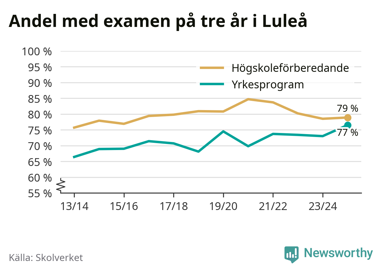 Luleå gymnasieskola, skolenhet ALuleå76 % (−3 %)82 % (+3 %)